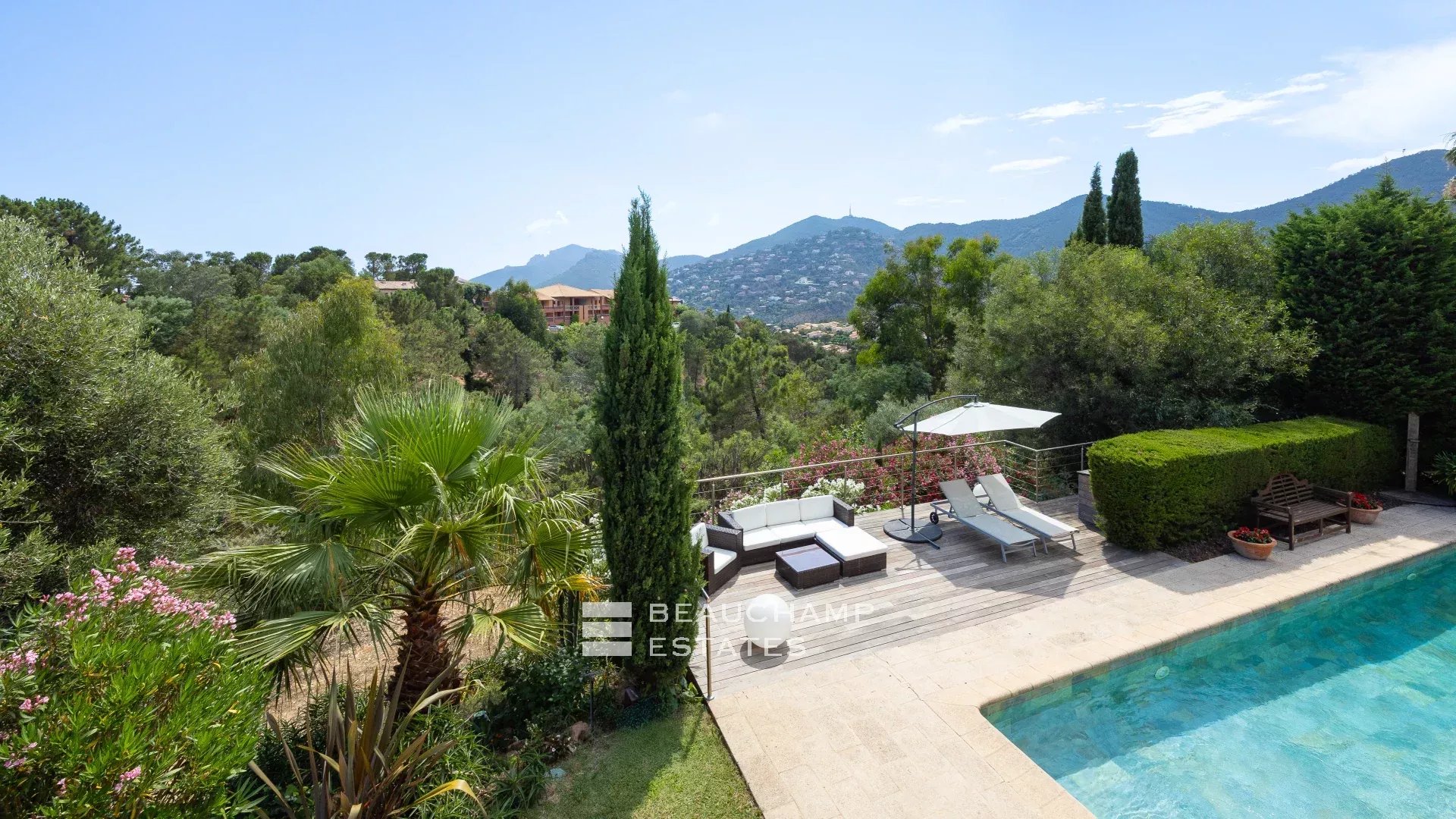 We invite you to discover this warm and inviting property, nestled in a peaceful and picturesque setting in the heart of the Estérel mountains, within one of the most sought-after neighborhoods of Théoule-sur-Mer.