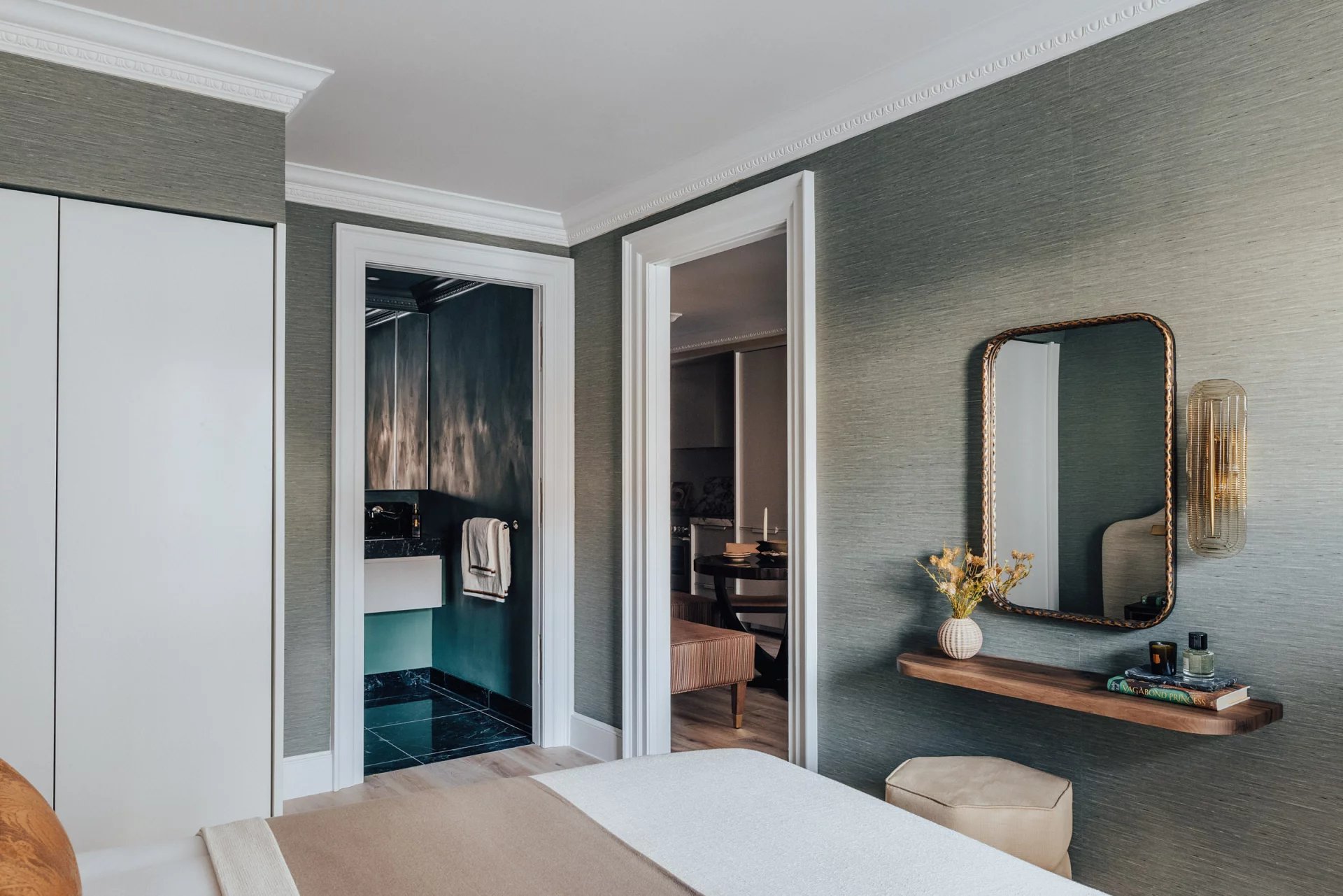 This flat occupies one of the boutique lateral apartments in a development that re-imagines historic Georgian townhouses for modern living. The generous ceiling height and large windows create a sense of space and light often missing in central London properties. Premium fixtures, natural-material finishes and custom interior design contribute to a refined yet understated ambience. The building’s small scale and exclusive services—concierge, security and hotel-linked lifestyle amenities—offer a degree of privacy and convenience that align with Mayfair’s discreet luxury ethos.