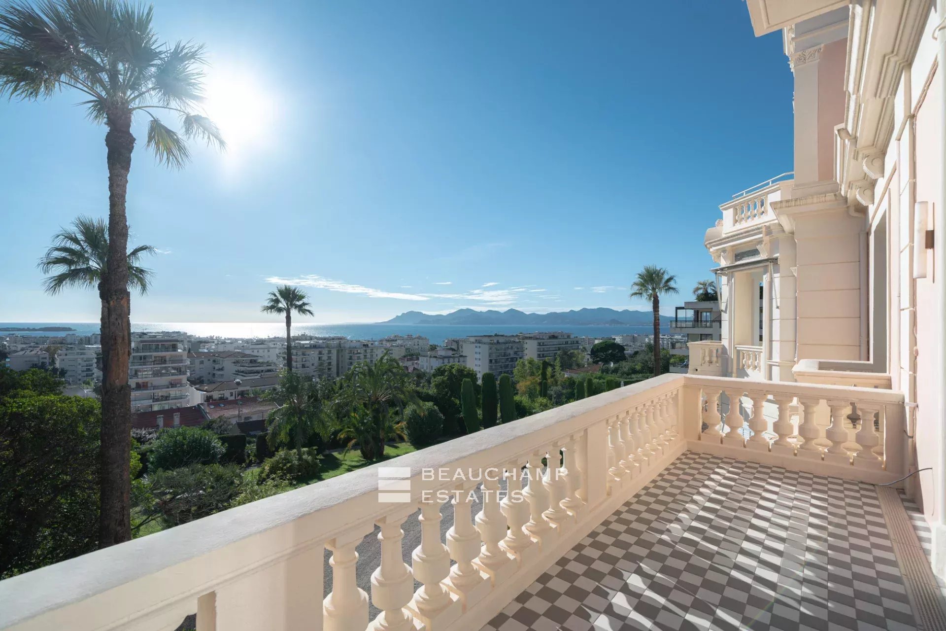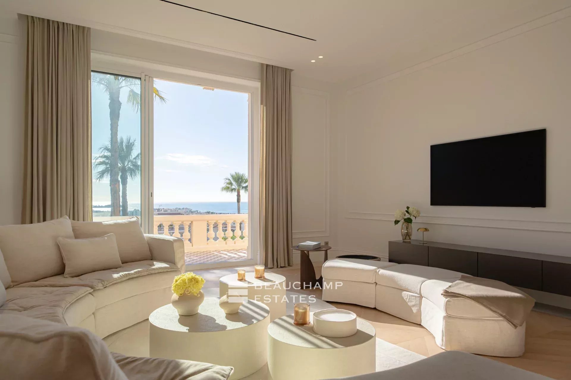 The whole offers a sublime view of the sea and the bay of Cannes. with an opening on a beautiful terrace very rare in this type of residence.