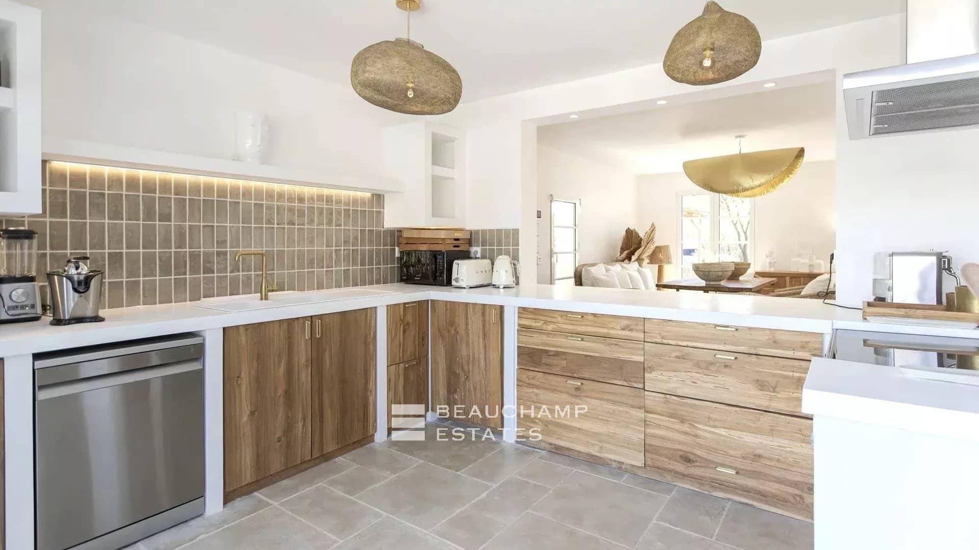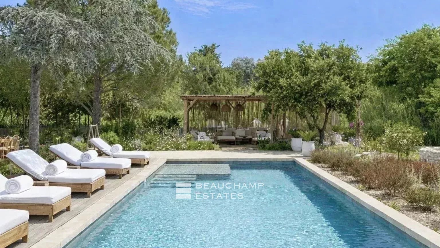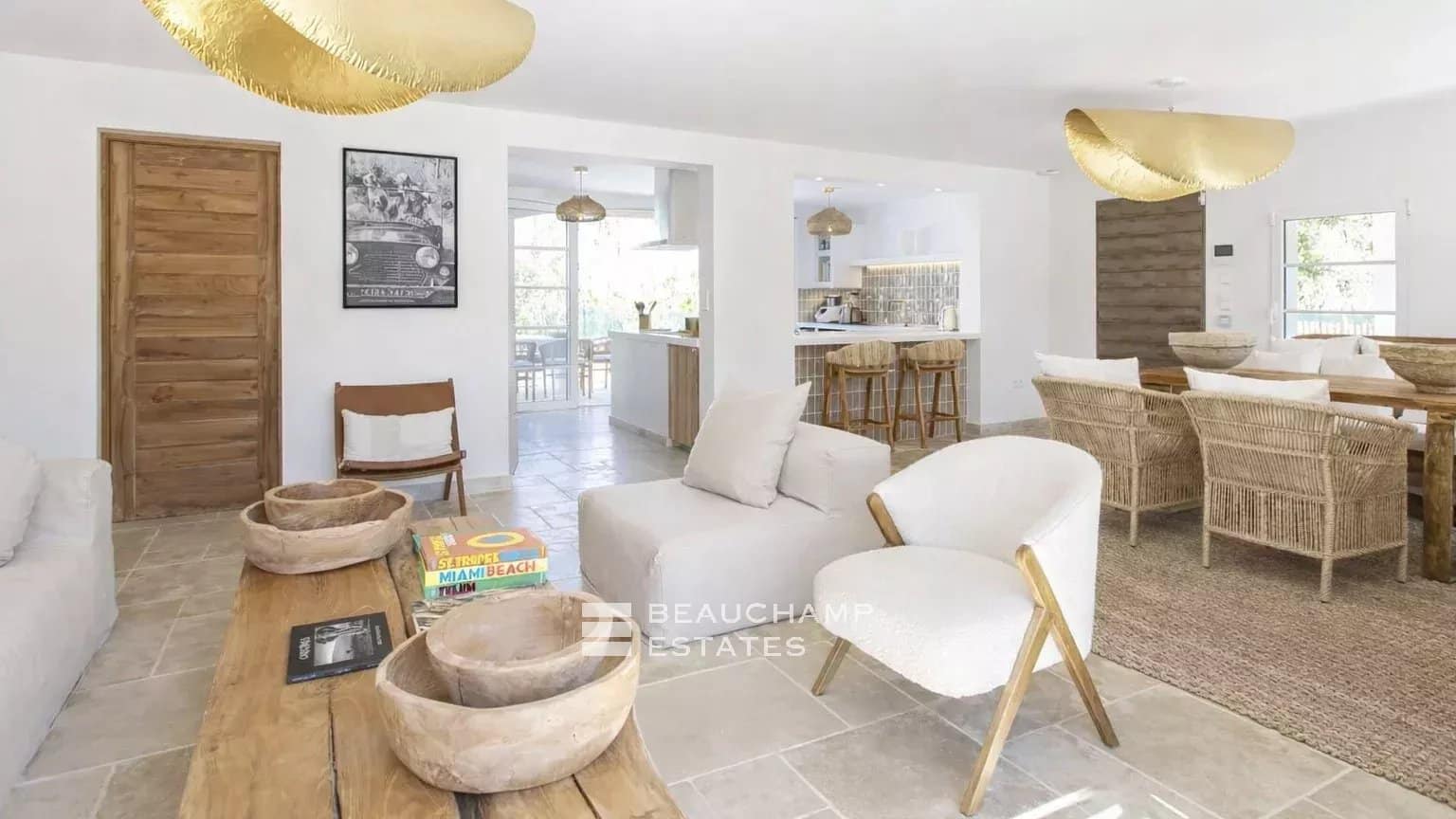 Nestled just a few steps from Canoubiers Beach and only a few hundred meters from the center of Saint-Tropez, this sumptuous villa combines the elegance of bohemian-chic style with absolute comfort.