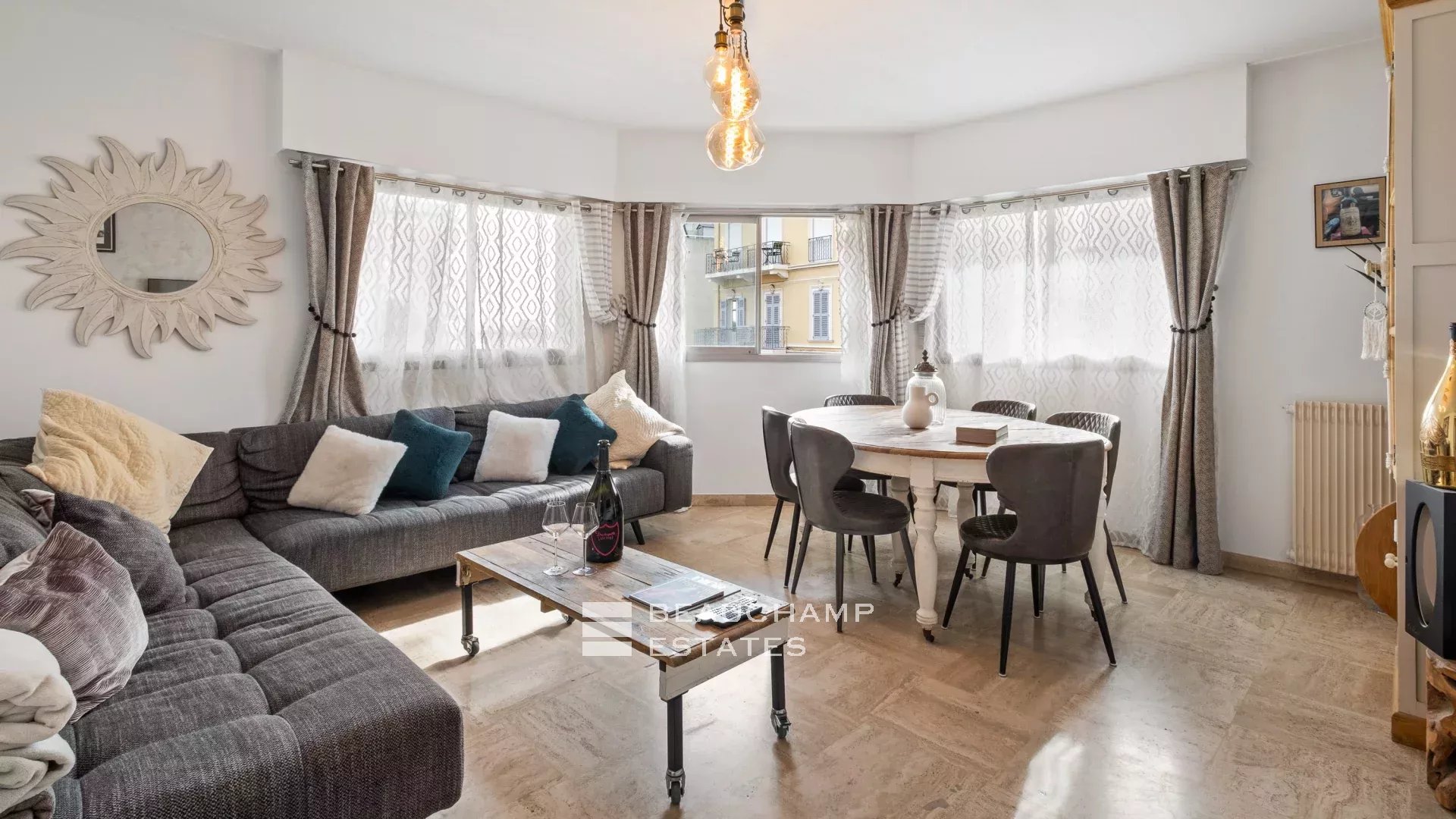 Beautiful, bright apartment less than 10 minutes' walk from the Palais des Festivals, featuring a spacious living room with sitting and dining areas, a fully equipped kitchen, three bedrooms and two bathrooms. Guest toilet.