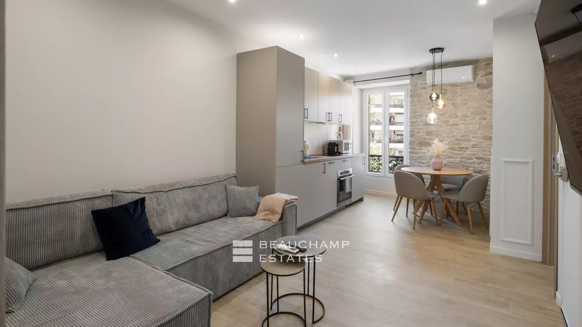 Charming apartment of approx. 50m2, featuring a bright living room with sitting and dining area, two bedrooms and two bathrooms with toilet,