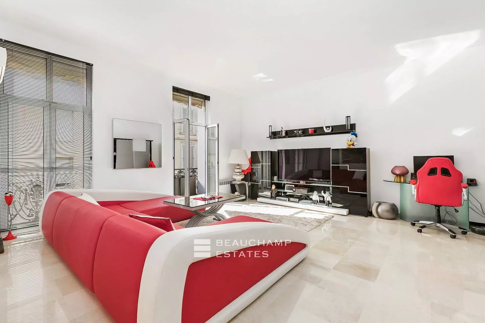 This large apartment enjoys an ideal location in the centre of Cannes just off rue d'Antibes within a short 6-minute walk to the Palais des Festivals. It is comprised of :