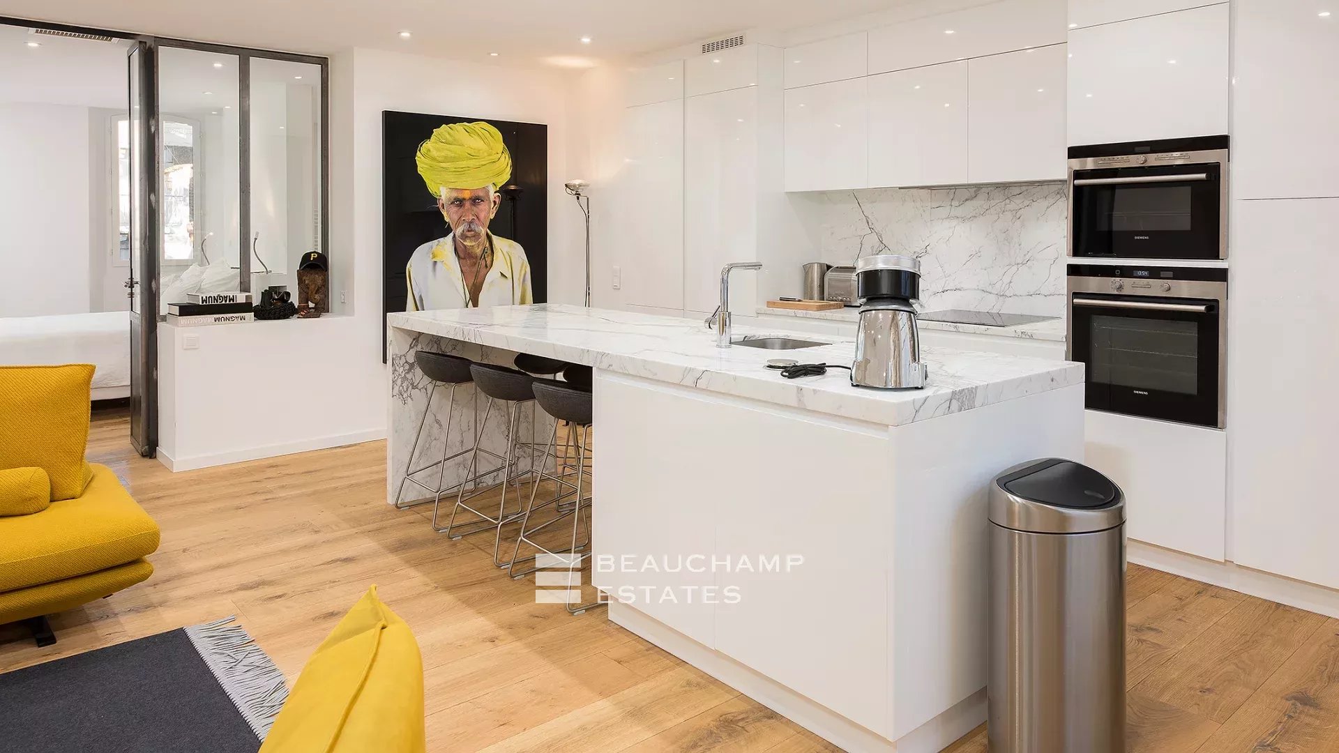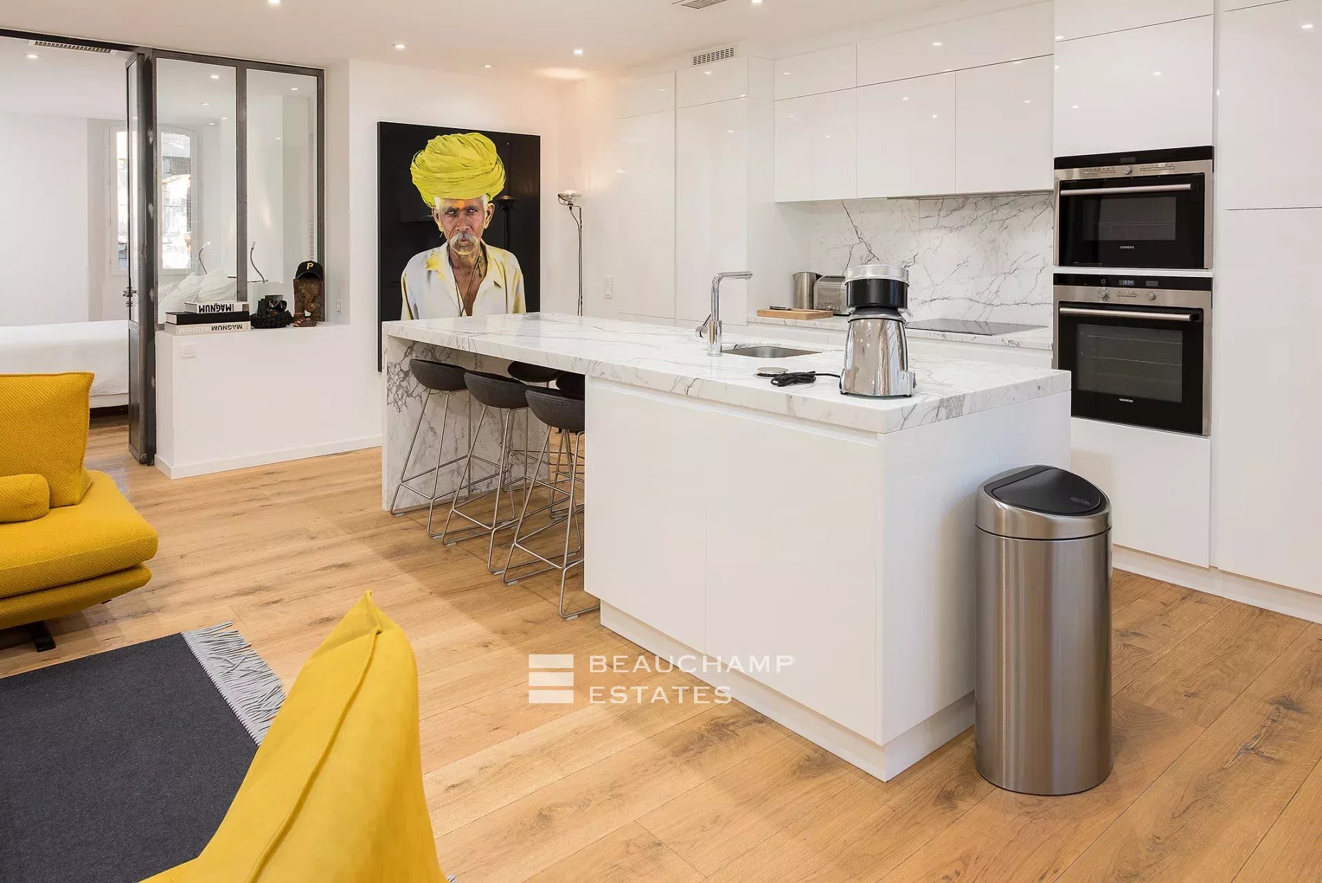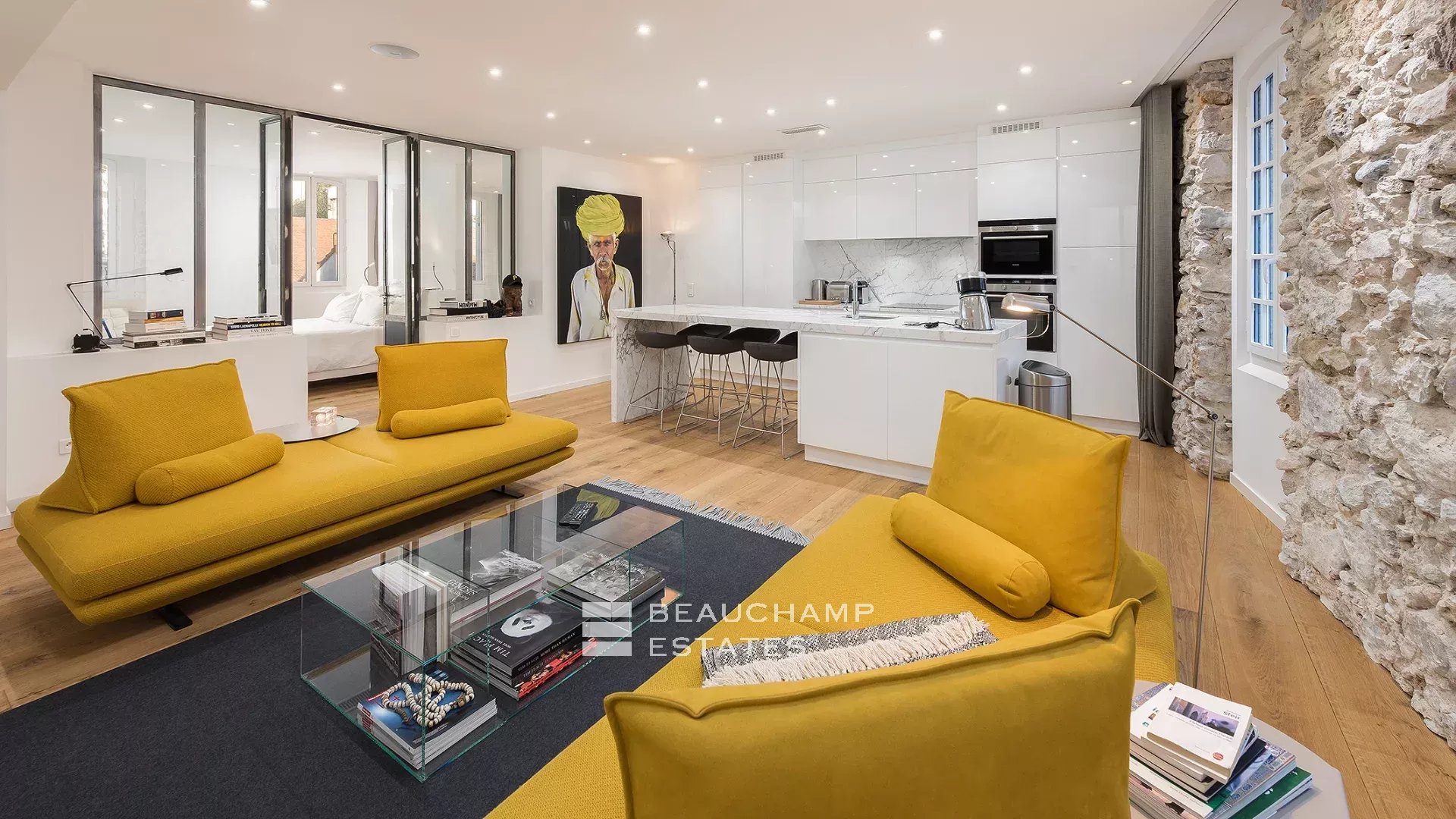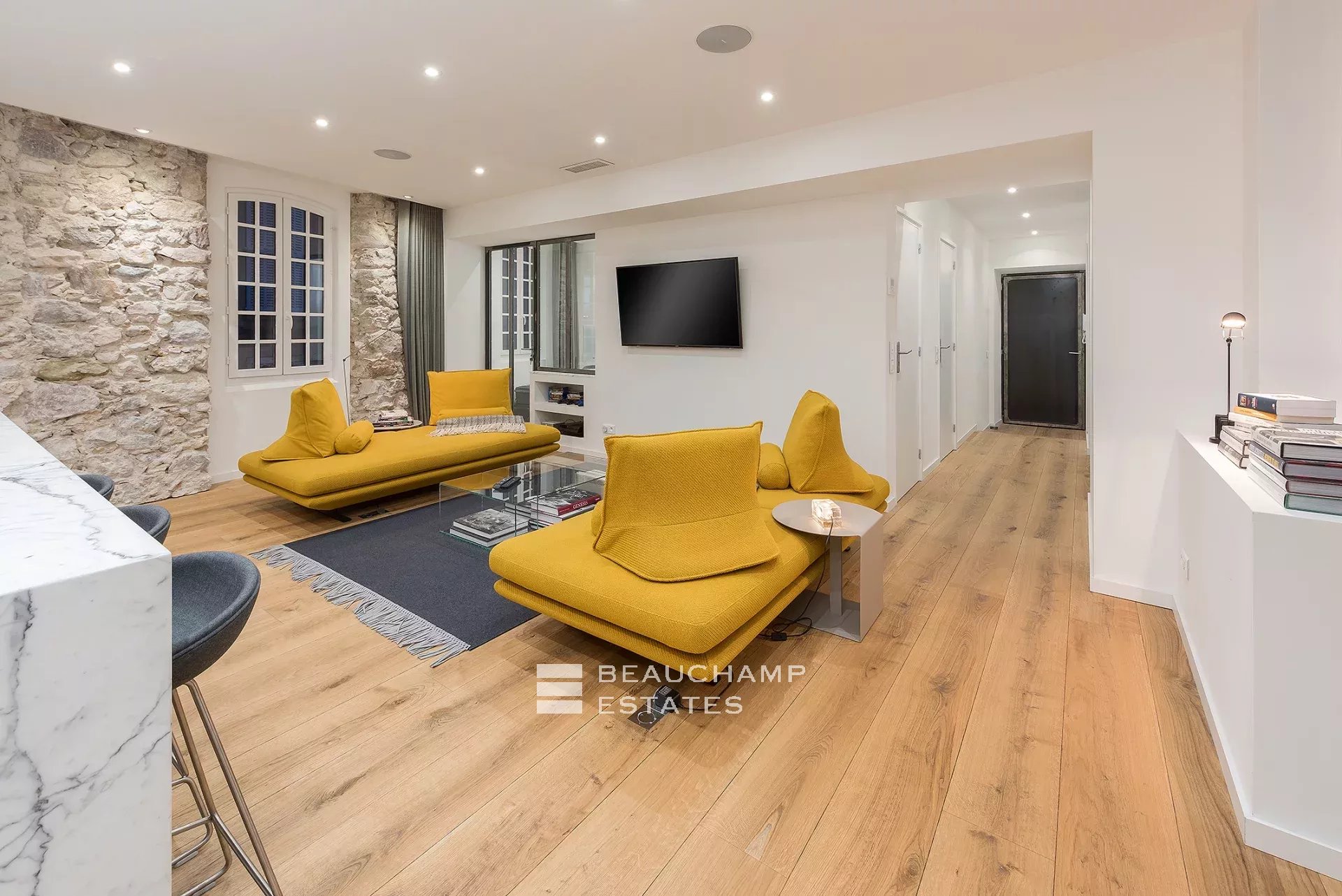 Close to the Old Port and Palais des Festivals, Forville market, in an old building with beautiful facades, charming, fully-renovated 103 m2 apartment.