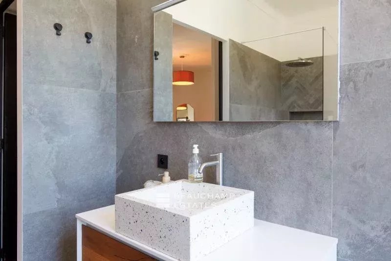 Entirely renovated with top-of-the-range materials, the property comprises a 45 m² living/dining room and kitchen on the garden level, a bedroom with shower room and a separate toilet.