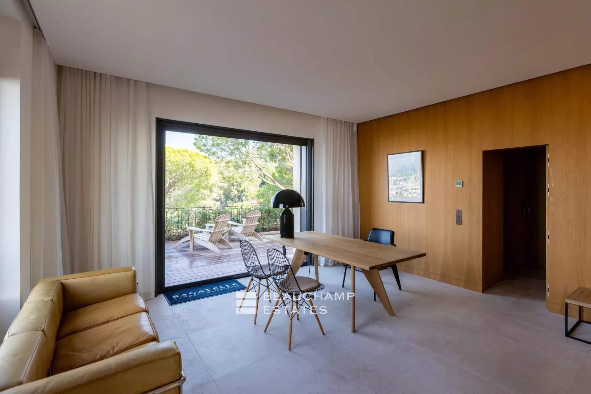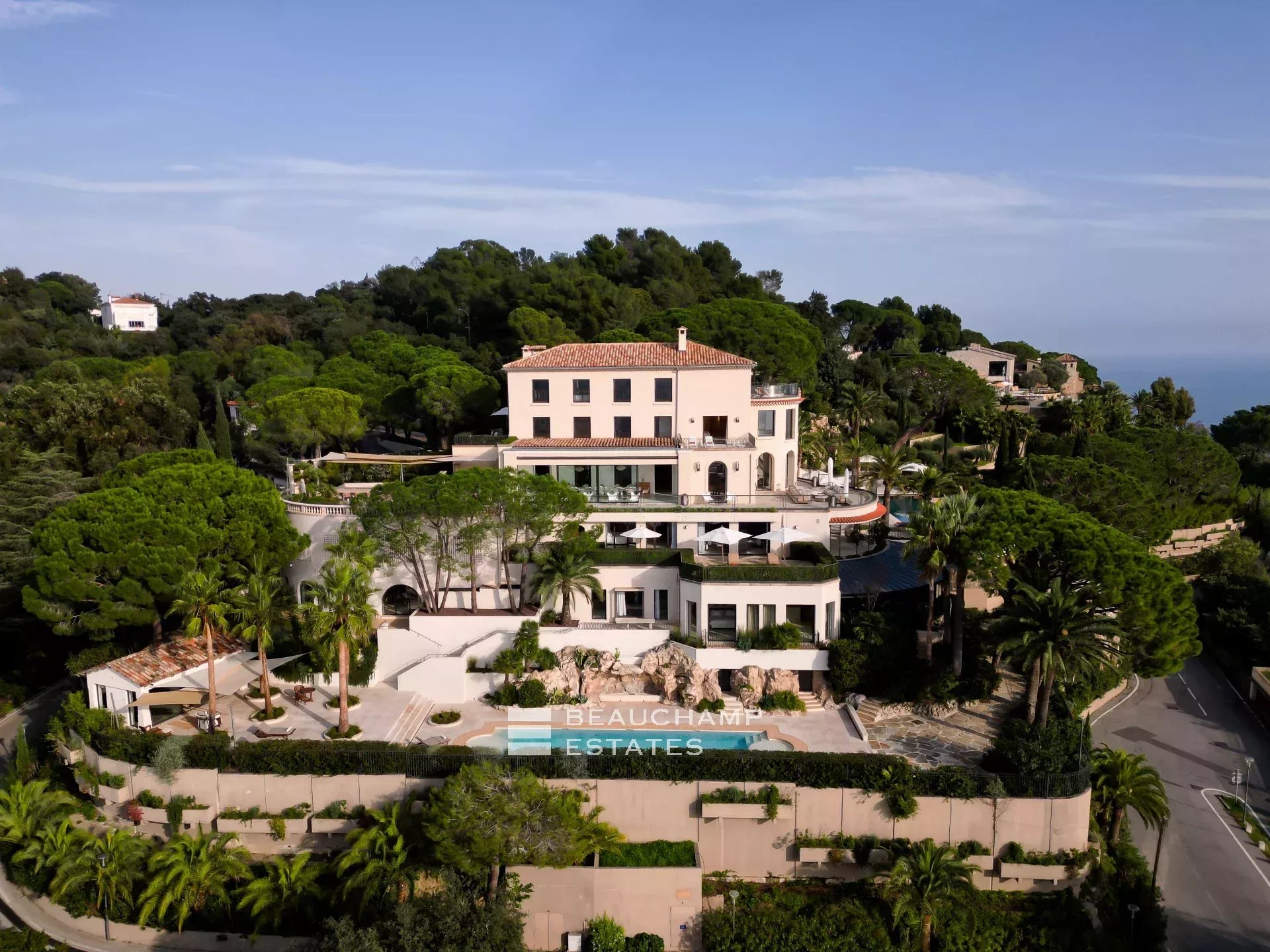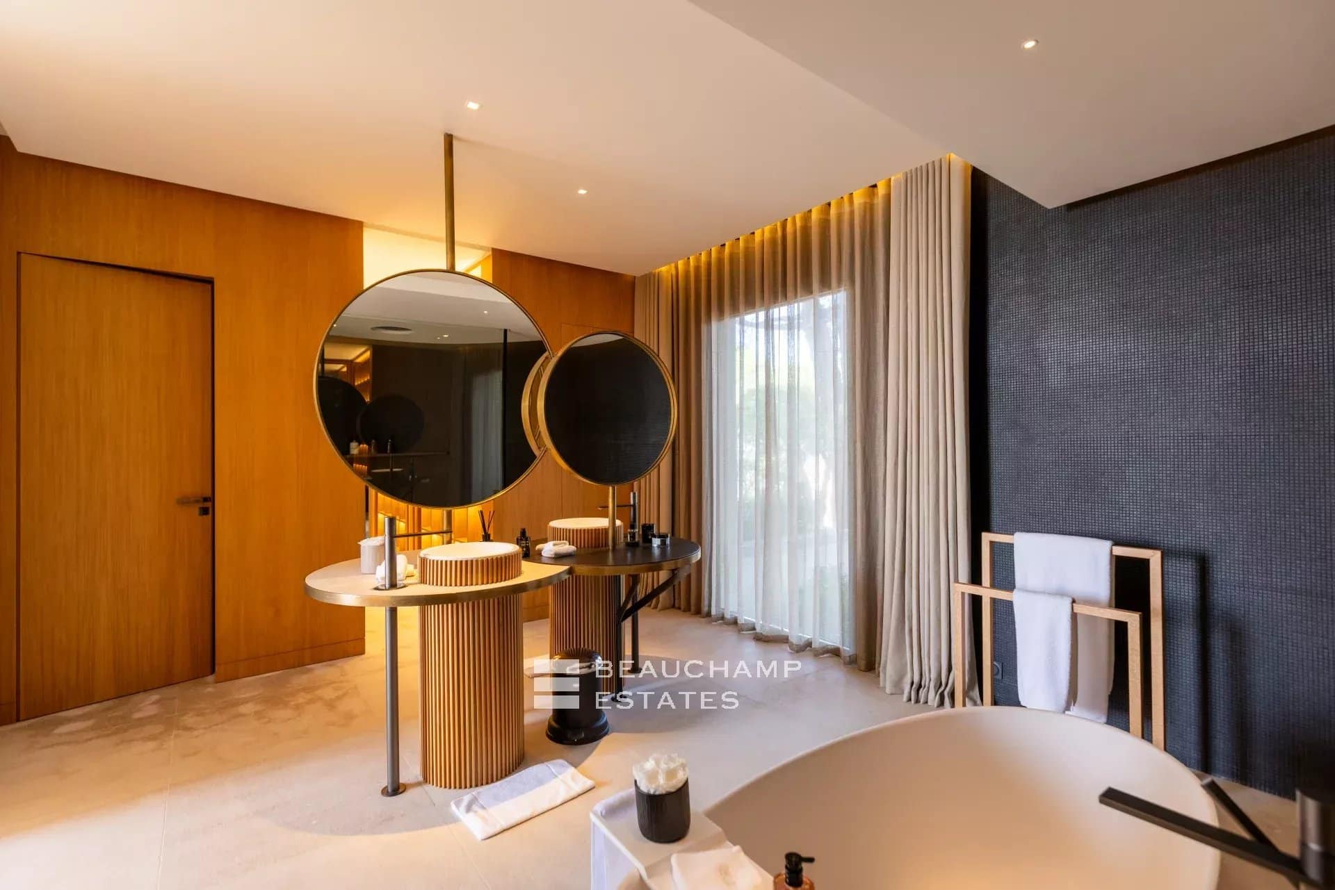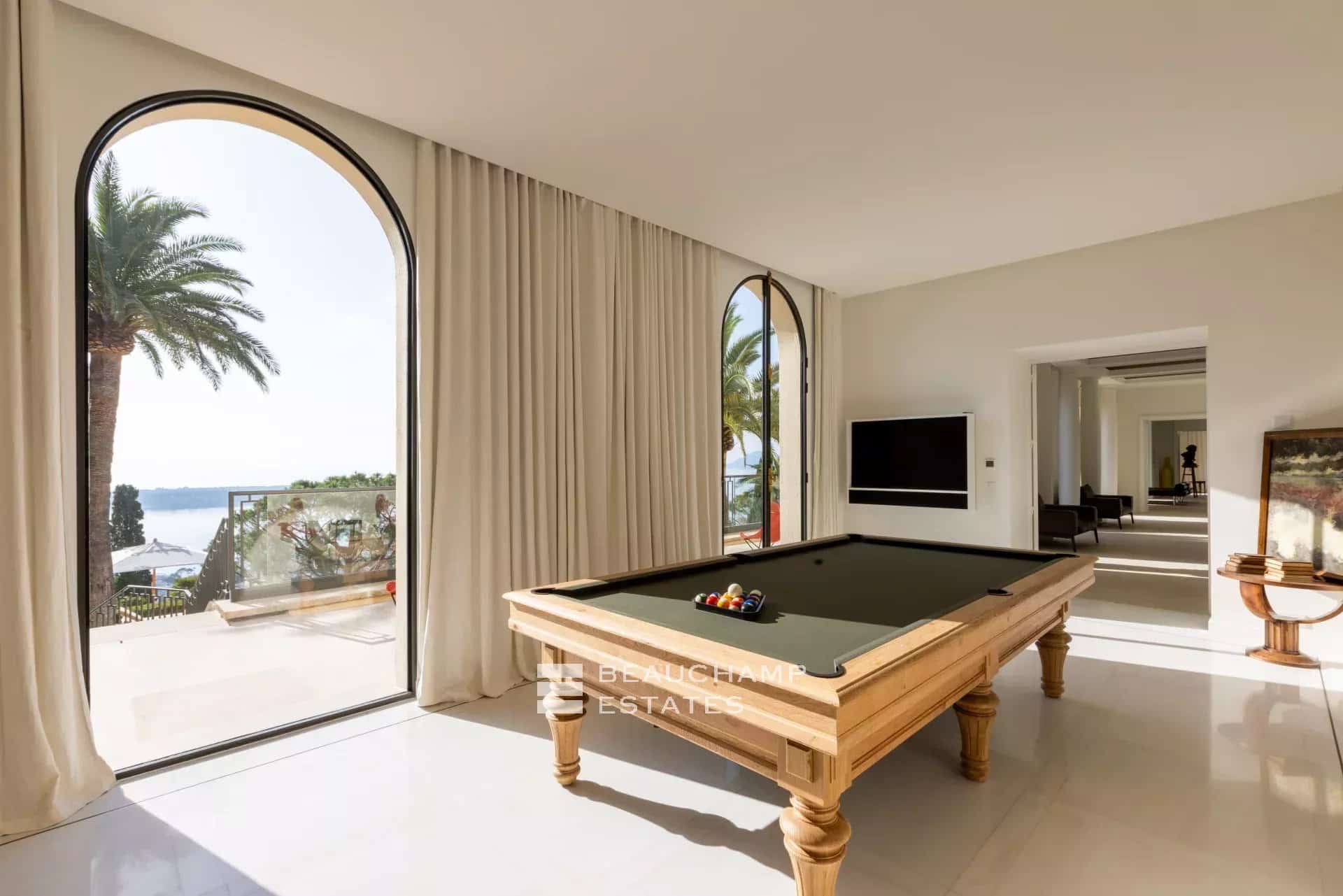 Nestled in the heart of a landscaped park of over one hectare, Villa Bagatelle embodies the timeless elegance of the French Riviera. This 3,000 m² Belle Époque property seamlessly blends luxury, modern comfort, and refinement, offering breathtaking views of the Bay of Cannes and the Lérins Islands. It features 12 sumptuous suites, including a master suite with a panoramic terrace, as well as spacious living areas such as a billiard room, a library, multiple lounges, and an elegant dining room. Prestigious amenities include a spa with an indoor pool, sauna, massage room, a cinema, and a fully equipped fitness room. Outdoors, three pools, including an infinity pool, are complemented by a pool house with a bar, shower, and restrooms. An independent annex offers four en-suite bedrooms, while staff accommodations include multiple apartments, a dining area, and changing rooms. A secure garage can house up to eight vehicles, including two electric charging stations. Every space is enhanced by exquisite décor and noble materials, creating an idyllic setting for prestigious stays or private events.