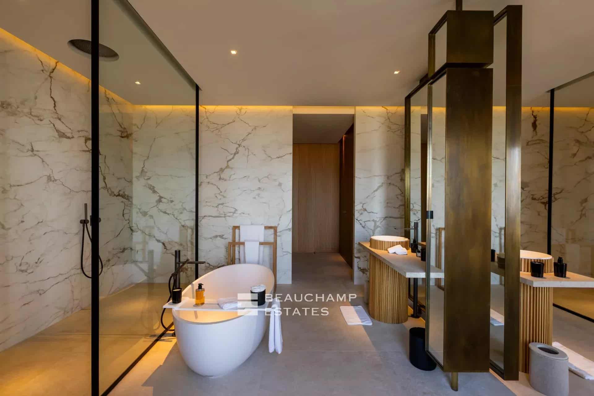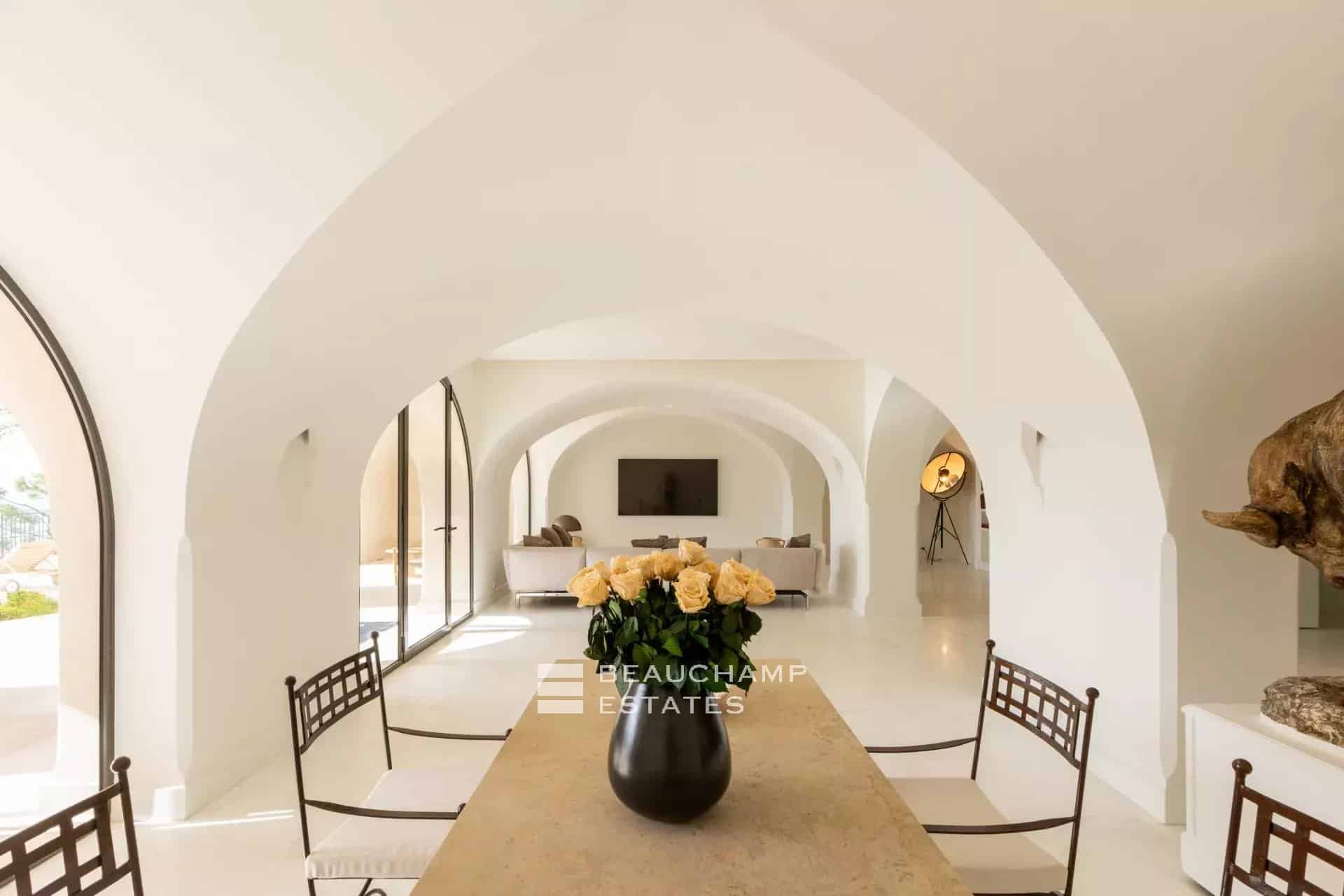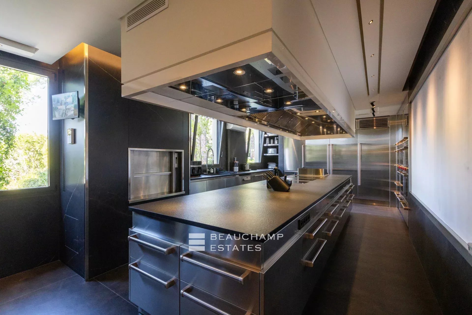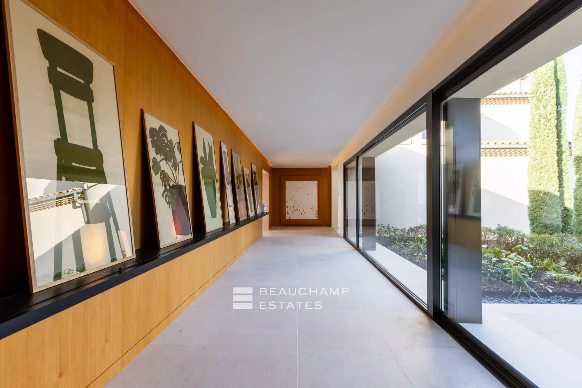 Nestled in the heart of a landscaped park of over one hectare, Villa Bagatelle embodies the timeless elegance of the French Riviera. This 3,000 m² Belle Époque property seamlessly blends luxury, modern comfort, and refinement, offering breathtaking views of the Bay of Cannes and the Lérins Islands. It features 12 sumptuous suites, including a master suite with a panoramic terrace, as well as spacious living areas such as a billiard room, a library, multiple lounges, and an elegant dining room. Prestigious amenities include a spa with an indoor pool, sauna, massage room, a cinema, and a fully equipped fitness room. Outdoors, three pools, including an infinity pool, are complemented by a pool house with a bar, shower, and restrooms. An independent annex offers four en-suite bedrooms, while staff accommodations include multiple apartments, a dining area, and changing rooms. A secure garage can house up to eight vehicles, including two electric charging stations. Every space is enhanced by exquisite décor and noble materials, creating an idyllic setting for prestigious stays or private events.