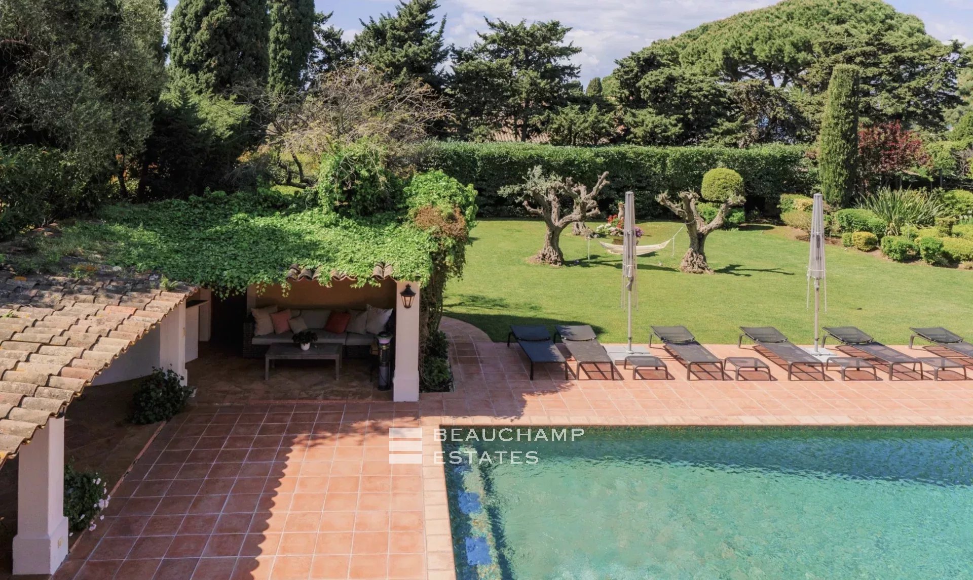 Located in the heart of Cap d’Antibes, superb property consisting of a main house of about 450 sqm and a guest house of about 250 sqm located on a sublime Mediterranean park of 4873 smq with heated pool and pool house.