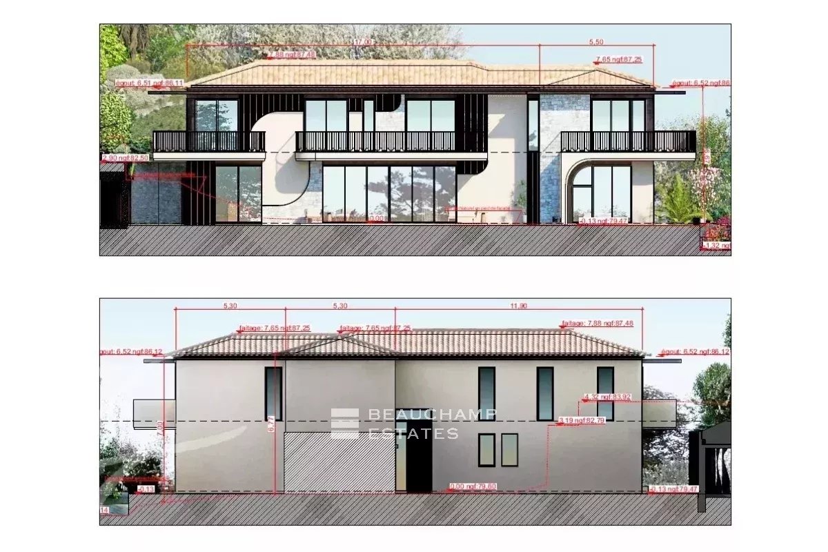Situated on the heights of La Croix des Gardes, this magnificent villa project offers stunning views of the sea and surrounding countryside.