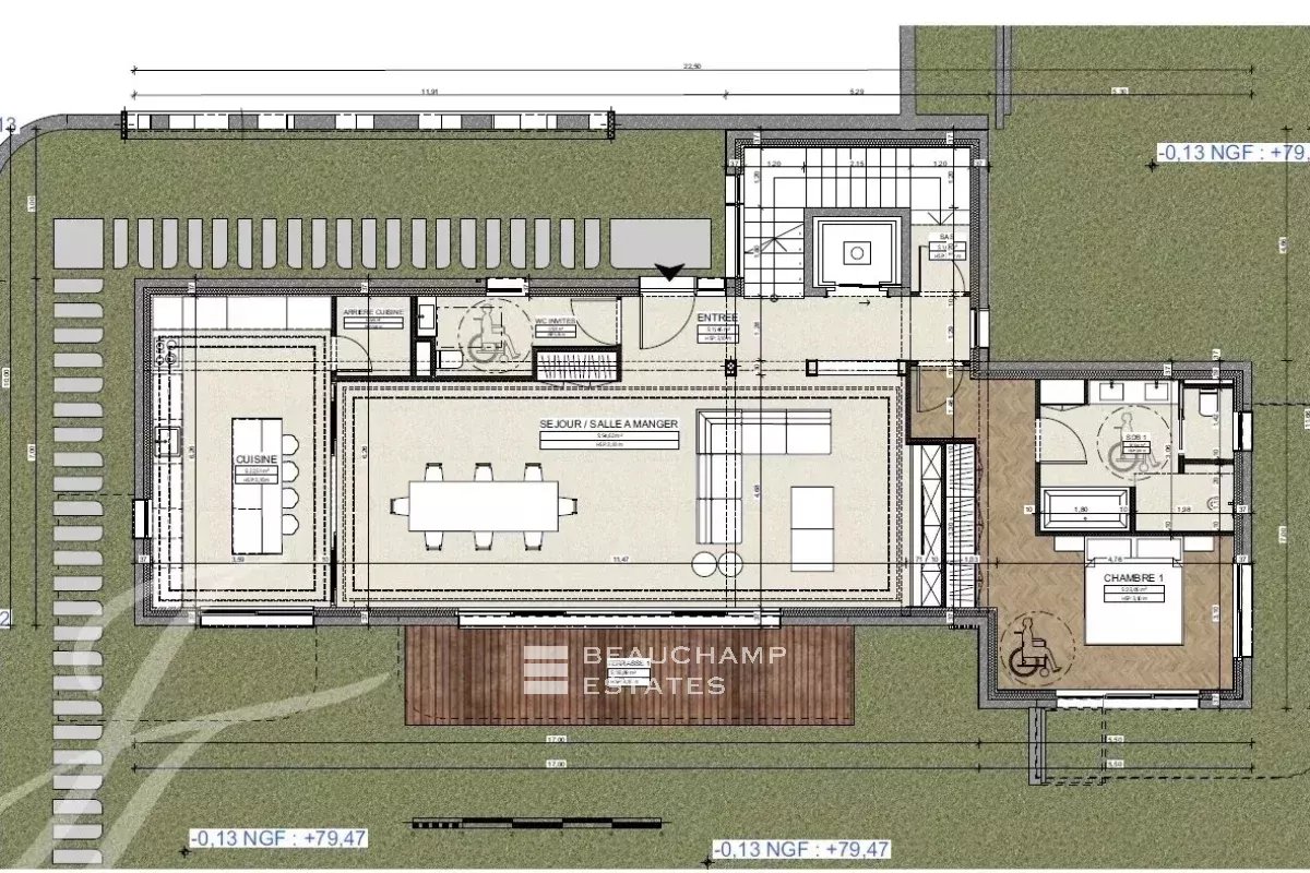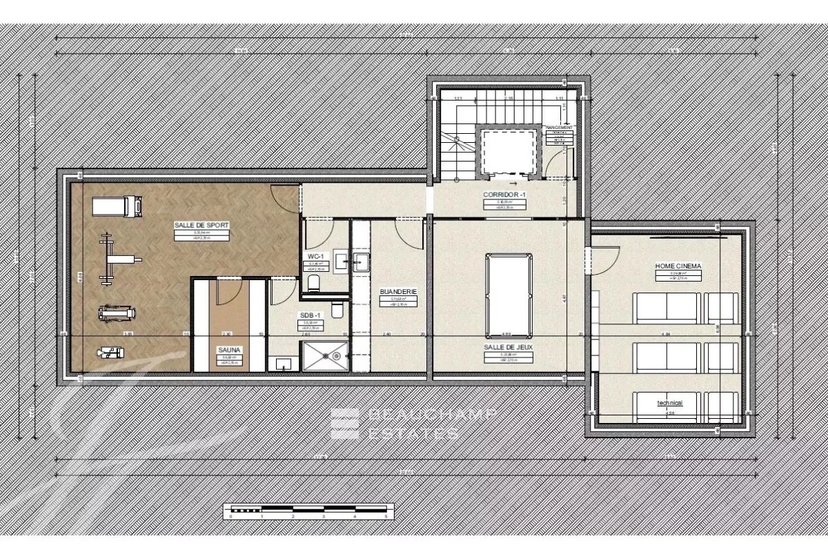 With a living area of around 390m2 and to be built on a plot of almost 7,000m2, it is composed as follows: