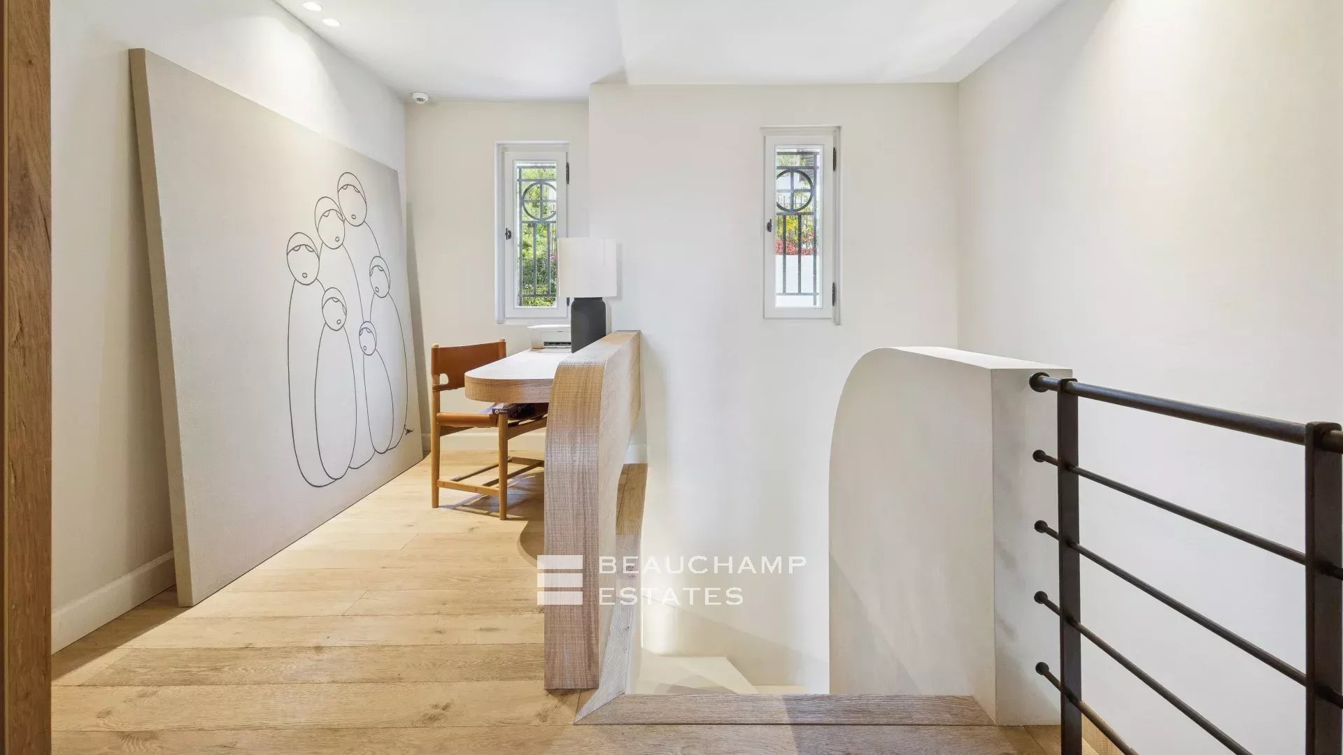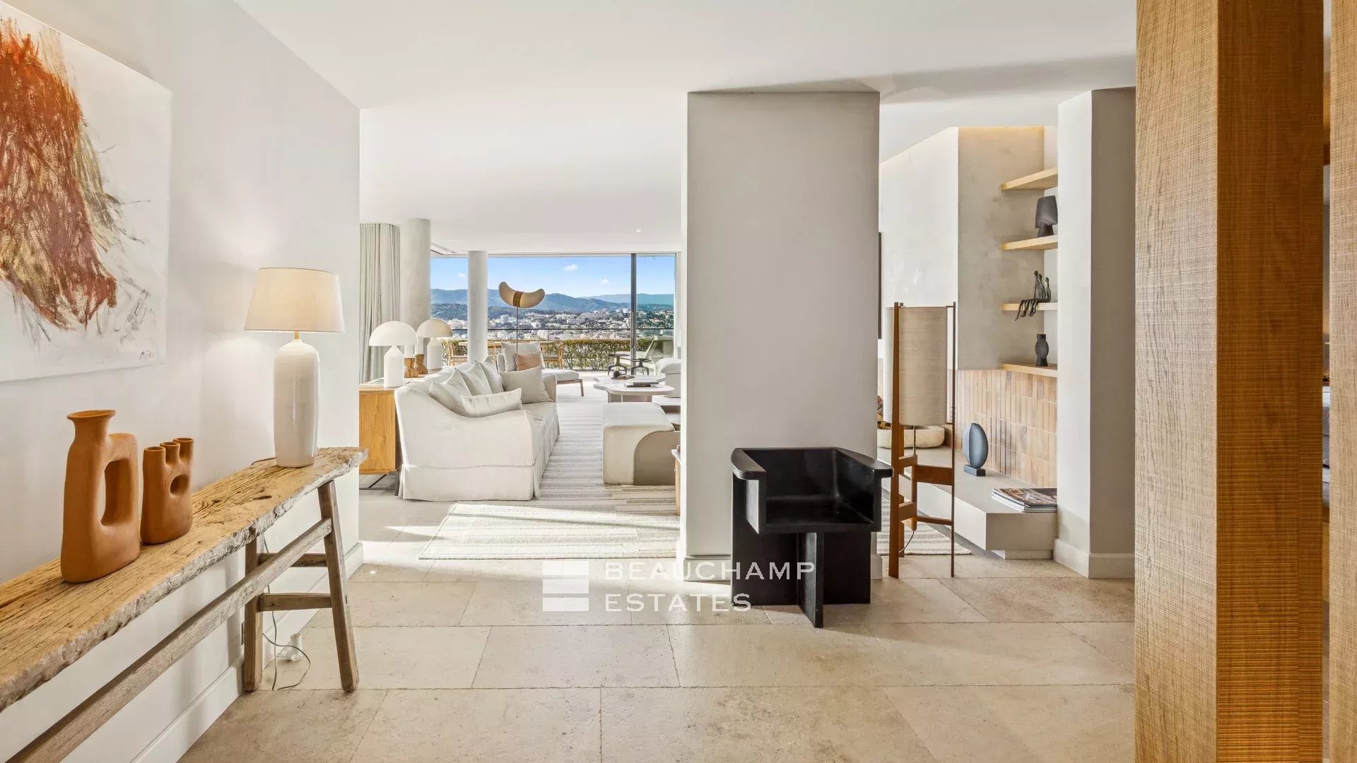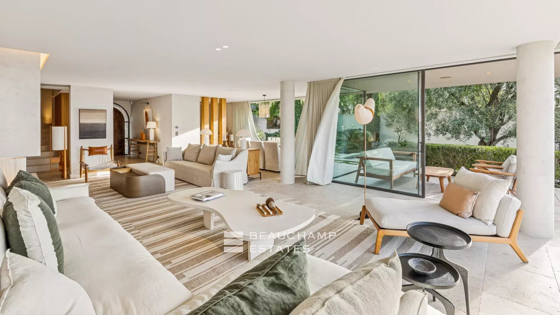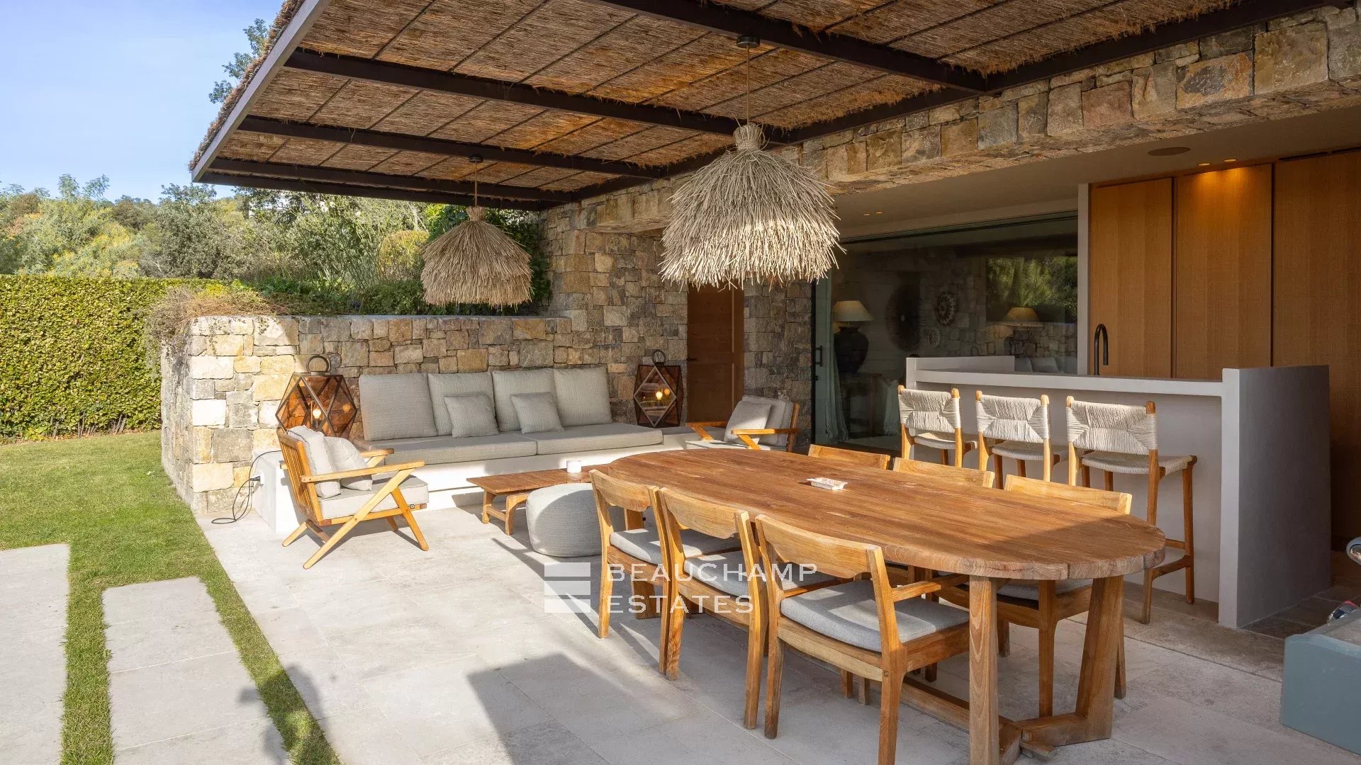 Located within a charming private estate, this architect-designed villa of approximately 420 sqm, set on a 2,600 sqm landscaped plot, offers generous living spaces as well as a lovely sea view.