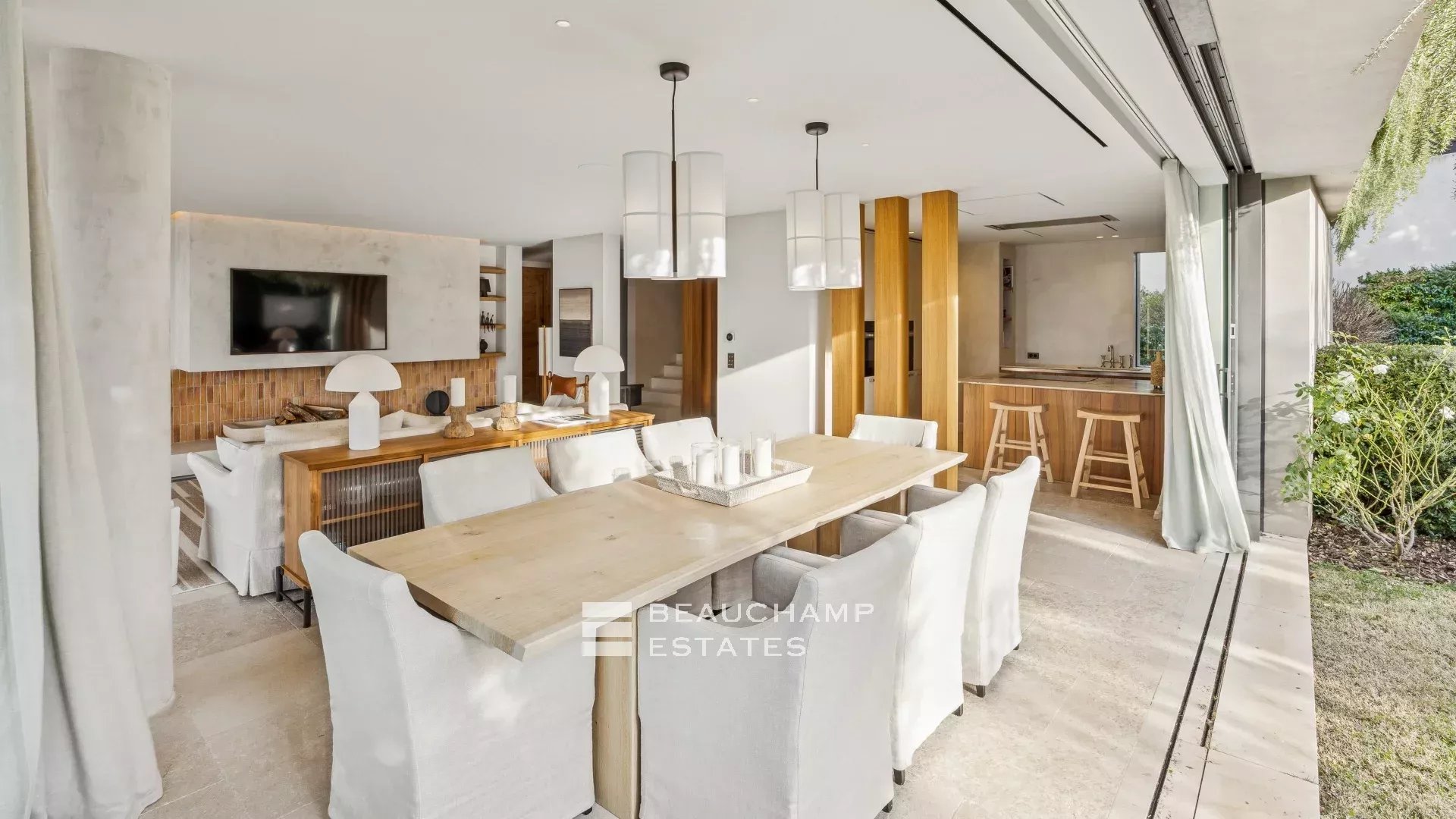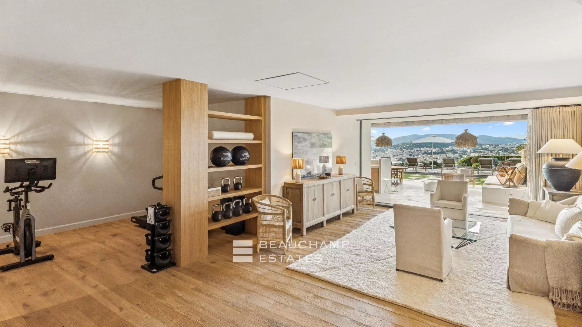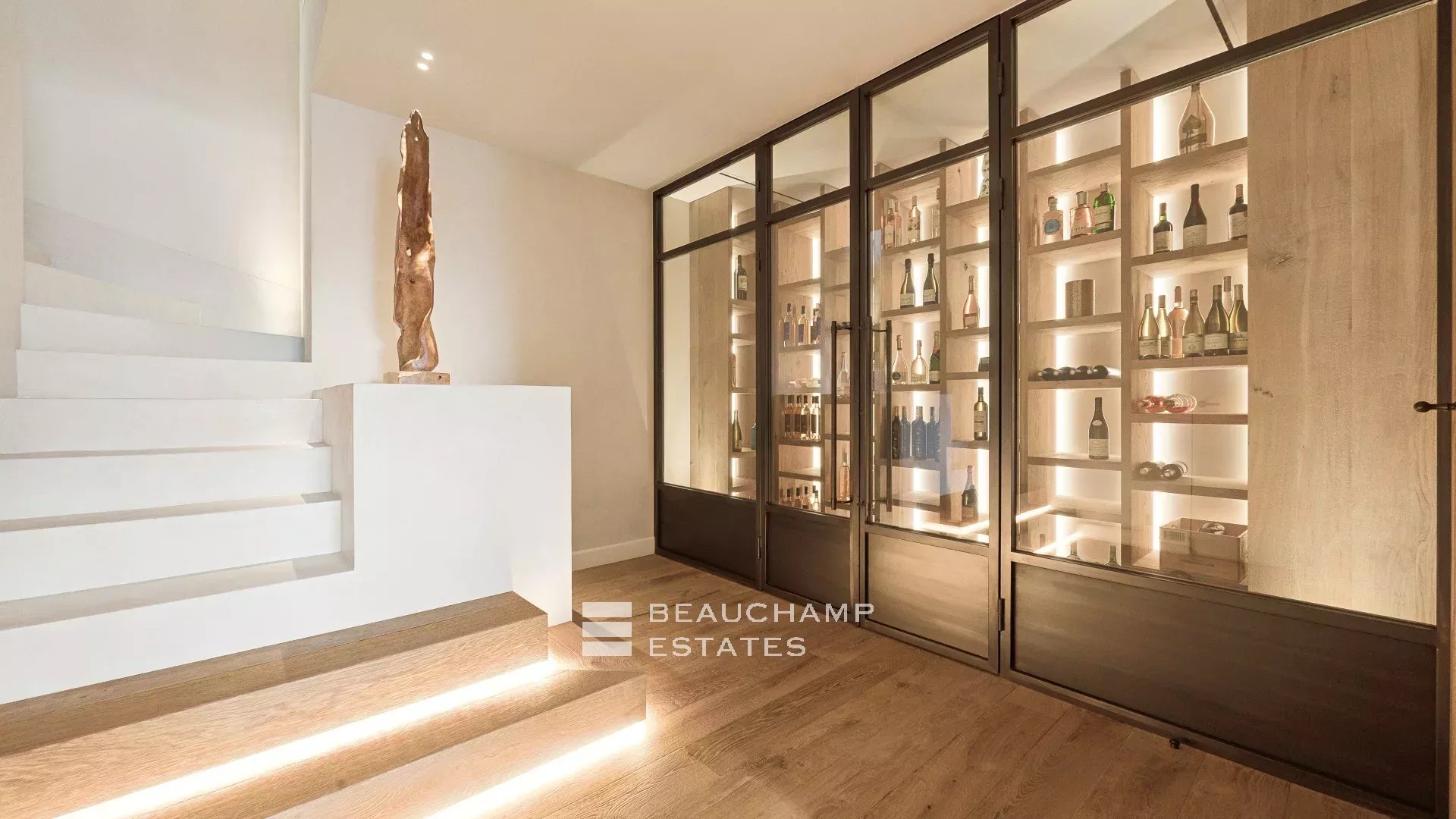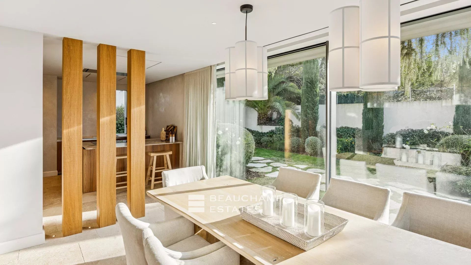 Located within a charming private estate, this architect-designed villa of approximately 420 sqm, set on a 2,600 sqm landscaped plot, offers generous living spaces as well as a lovely sea view.