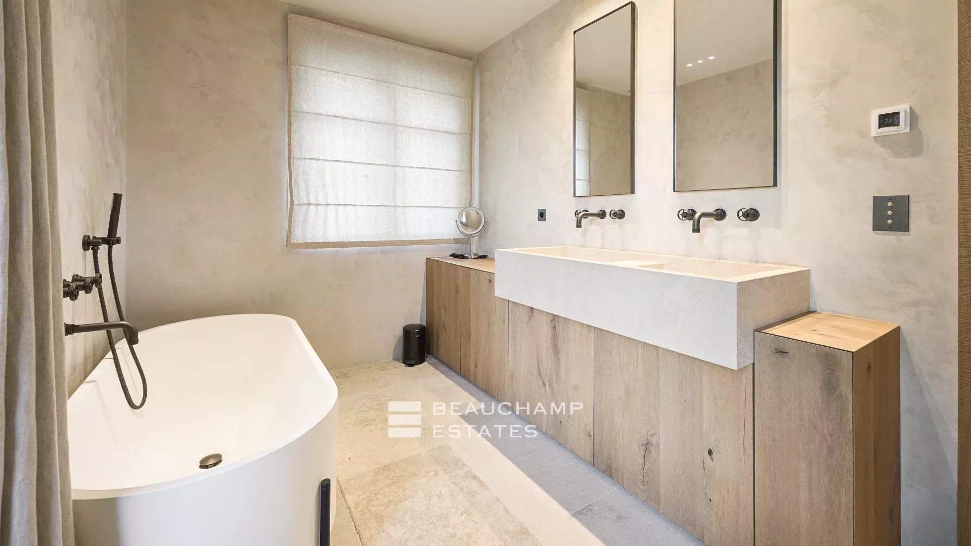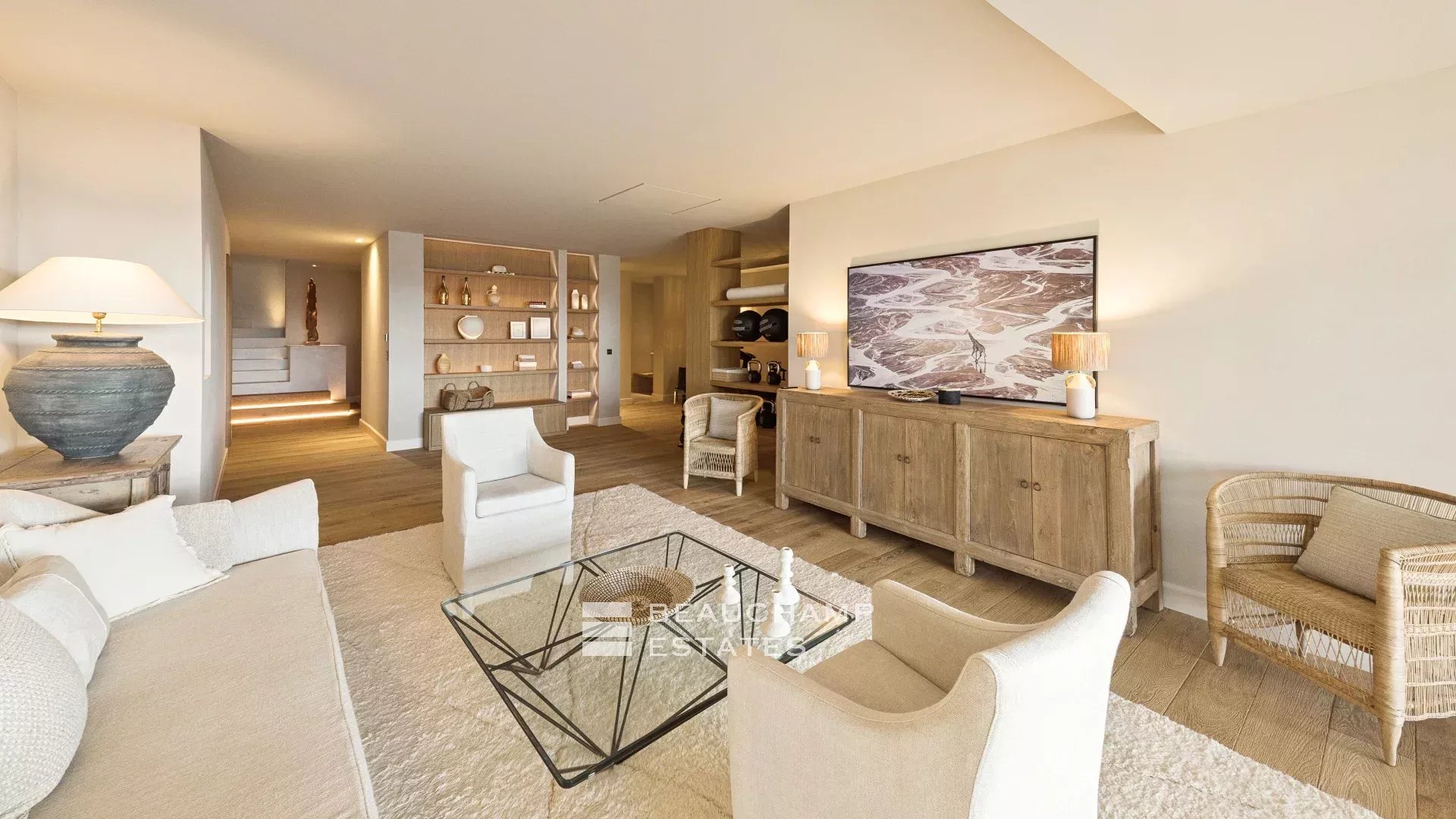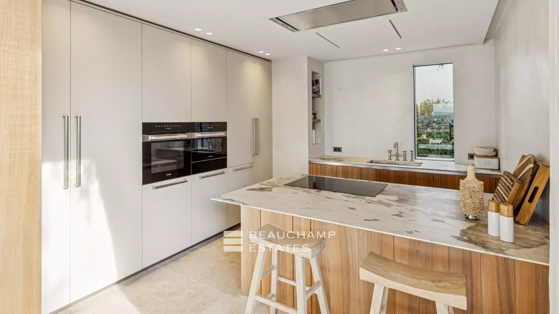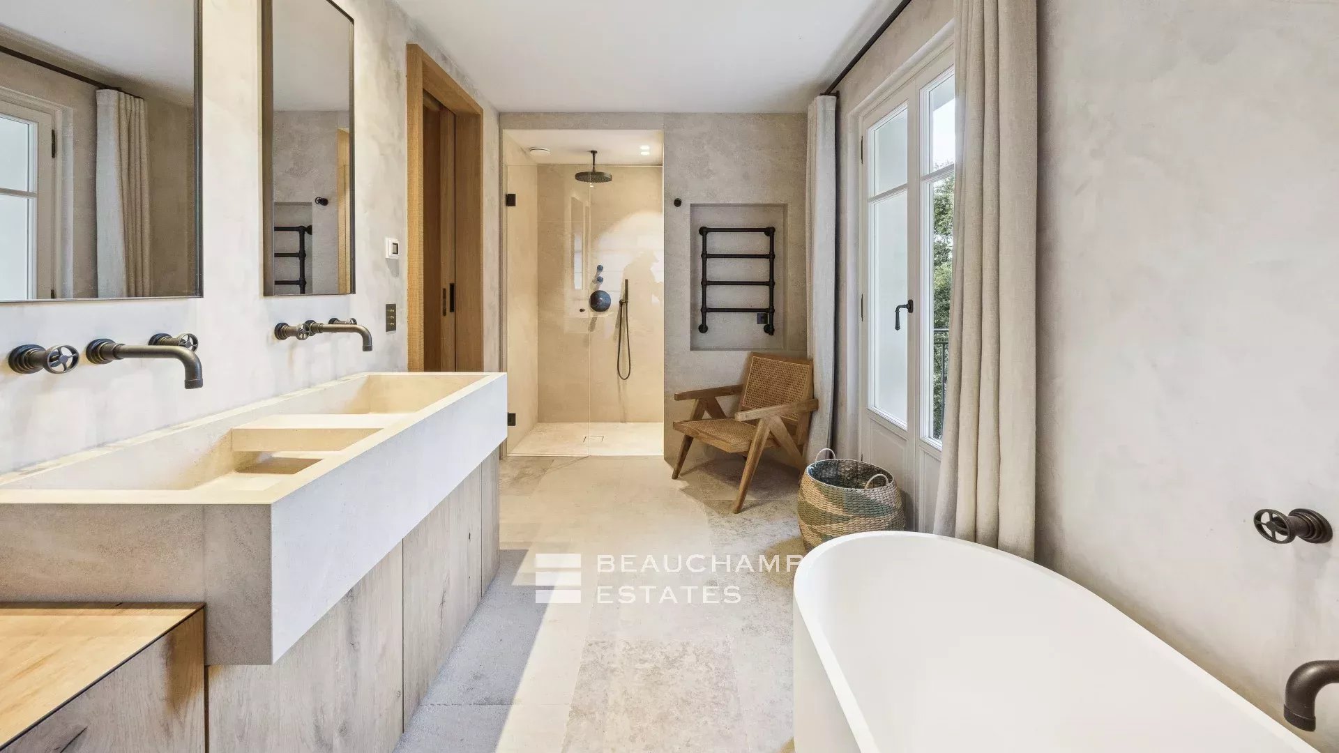 Located within a charming private estate, this architect-designed villa of approximately 420 sqm, set on a 2,600 sqm landscaped plot, offers generous living spaces as well as a lovely sea view.