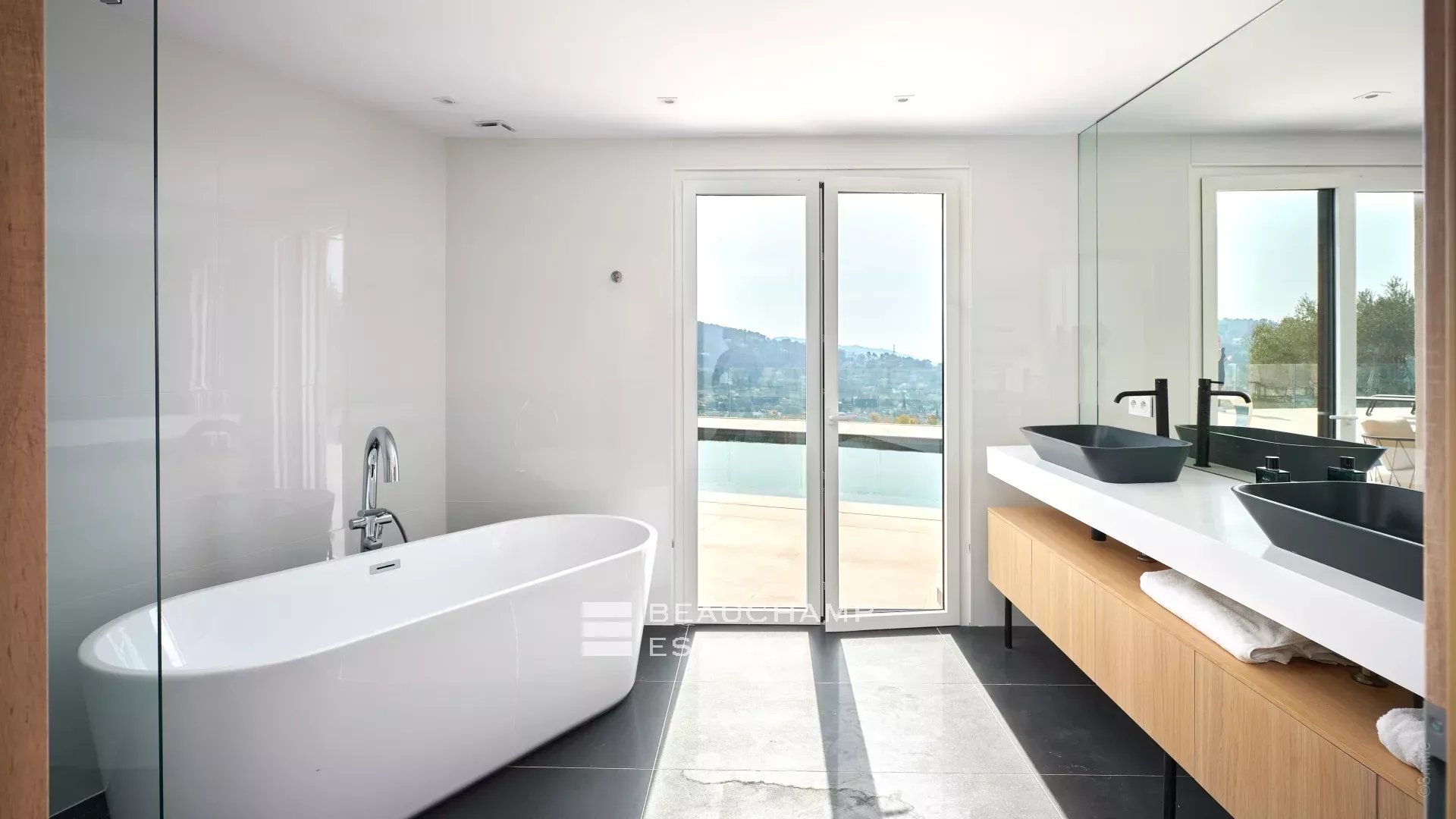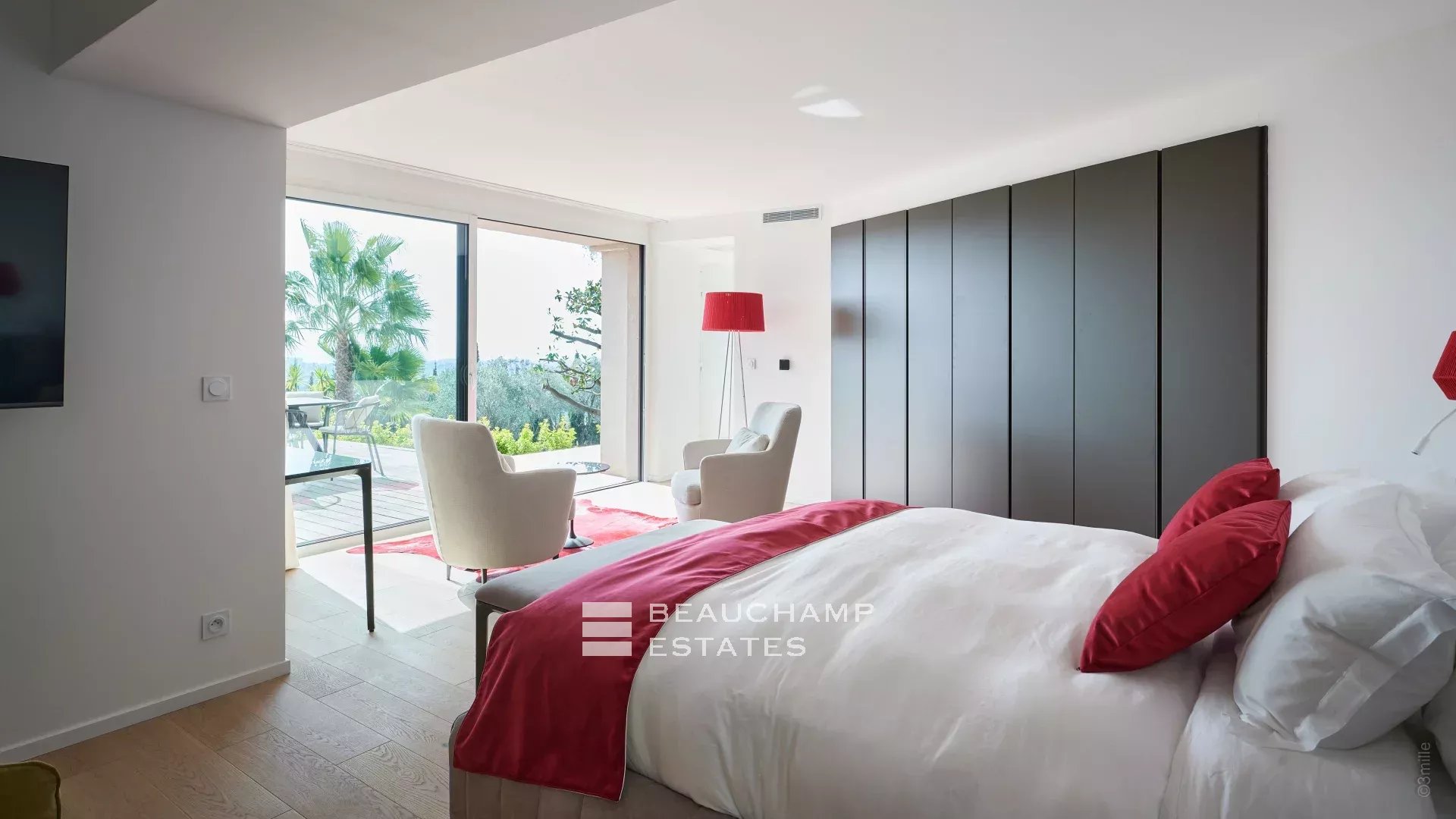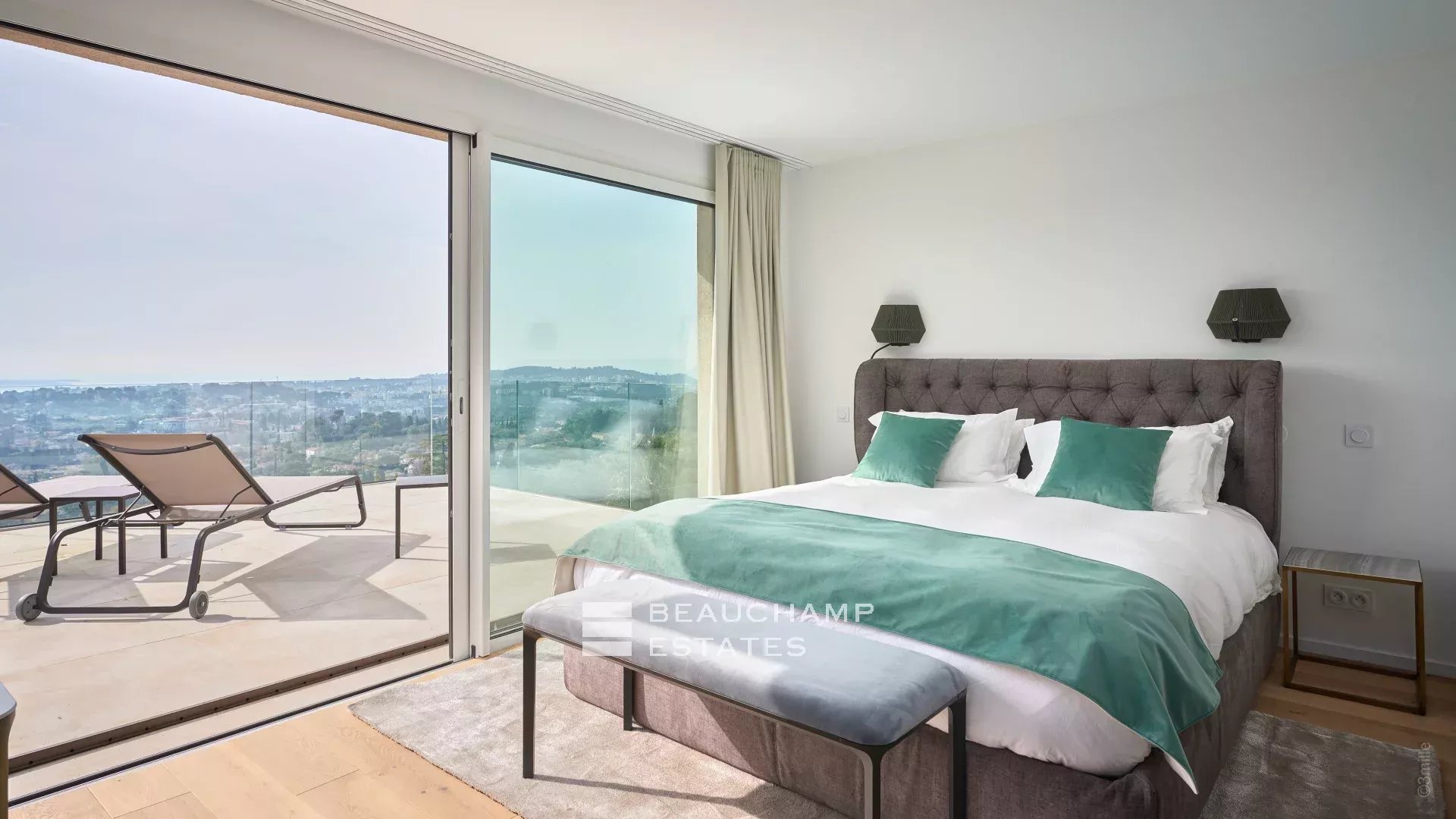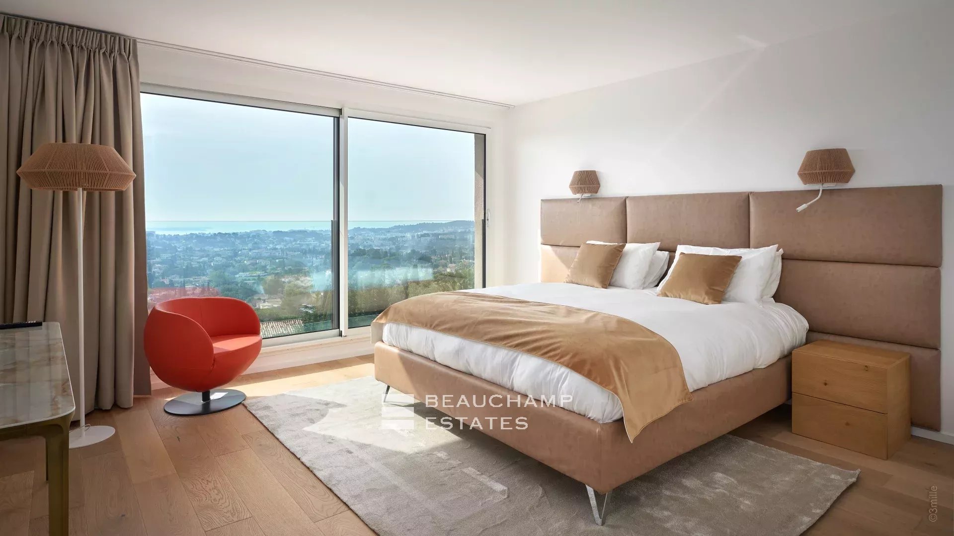 Just a few steps away from the historic village of Mougins, this contemporary villa spans 600 m2 across three meticulously organized levels, offering panoramic sea views.