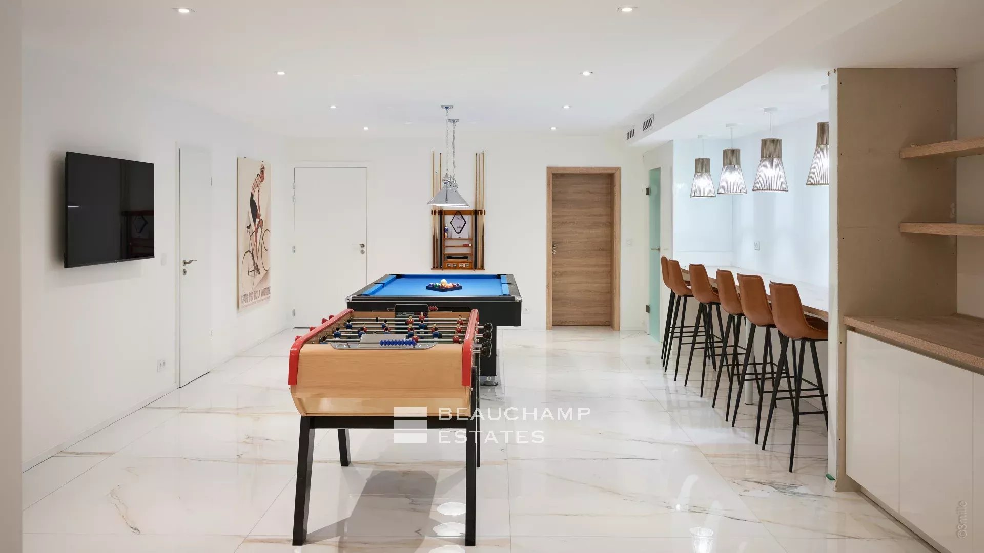 - Game room (billiards, foosball, bar)