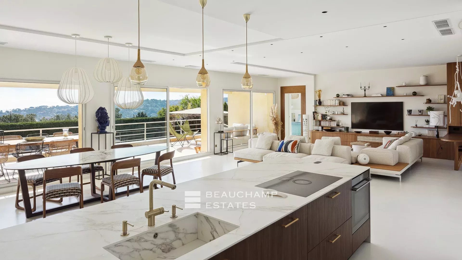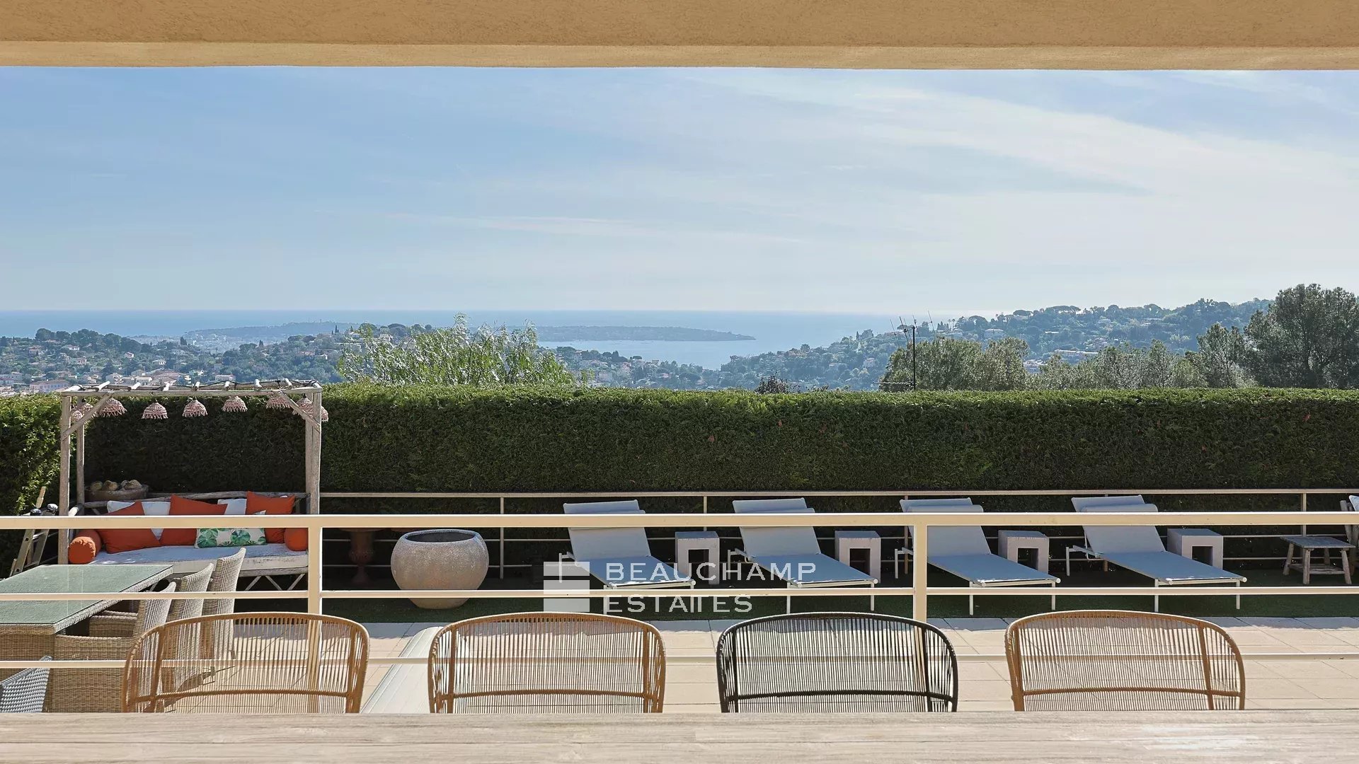 This 235 sqm contemporary villa with panoramic sea views has been completely renovated with high-quality materials. It is built on a 1,666 sqm plot with a heated swimming pool, in a quiet location with no overlooking neighbours.