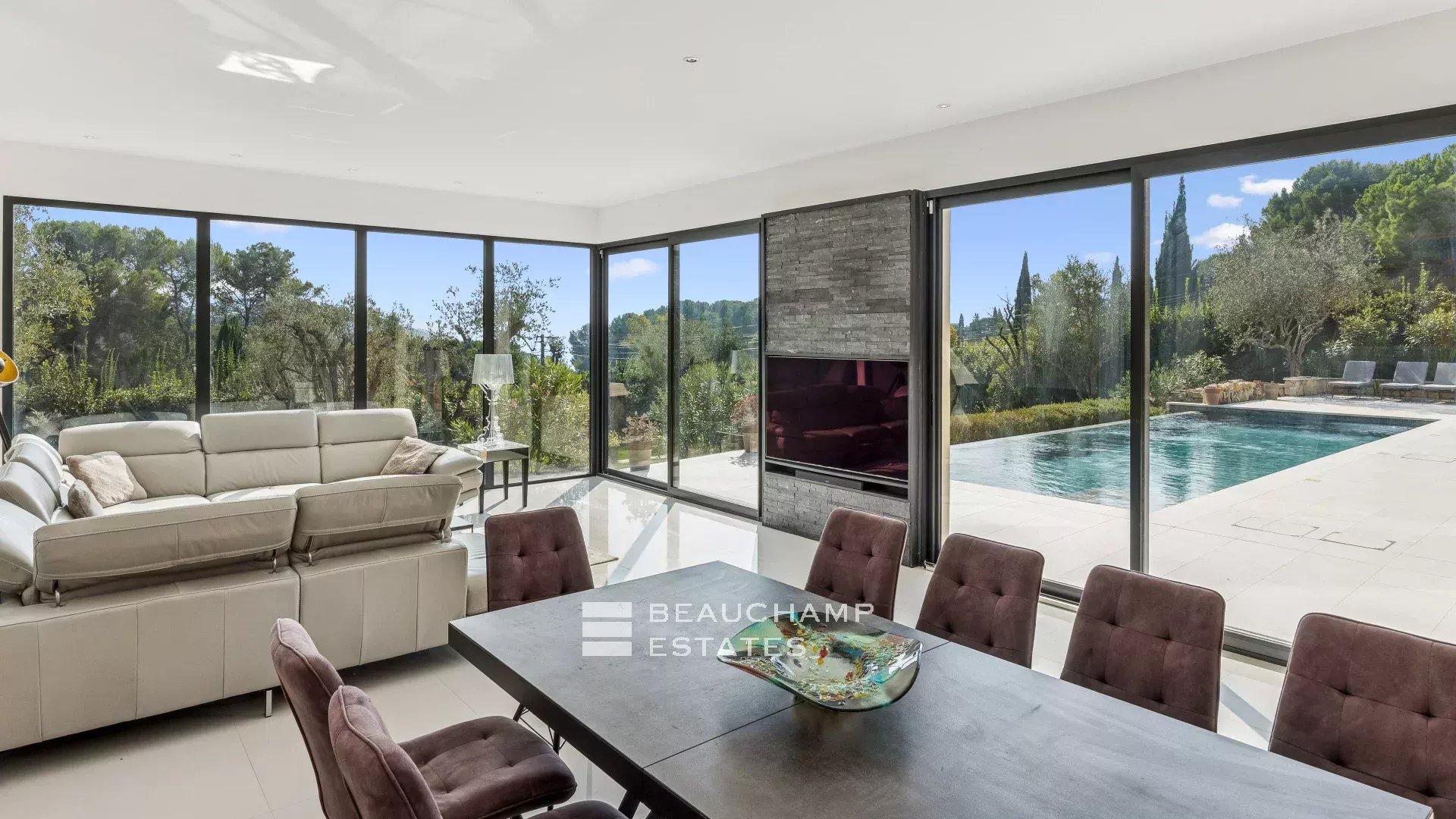 Located in absolute tranquility in one of the most sought-after areas of Mougins, this contemporary 314 sqm villa, built in 2017, offers every modern comfort and meets the latest standards and regulations.