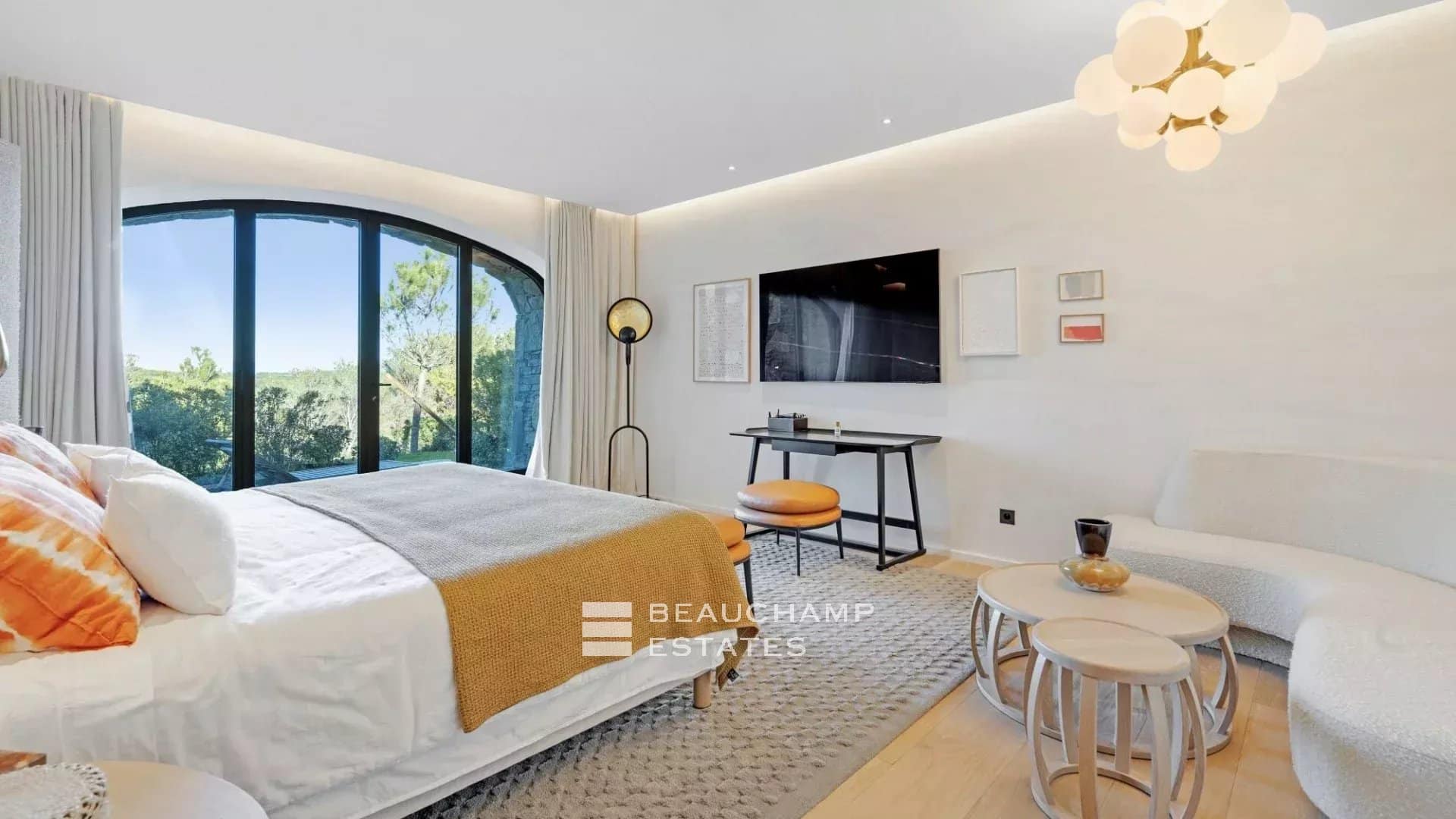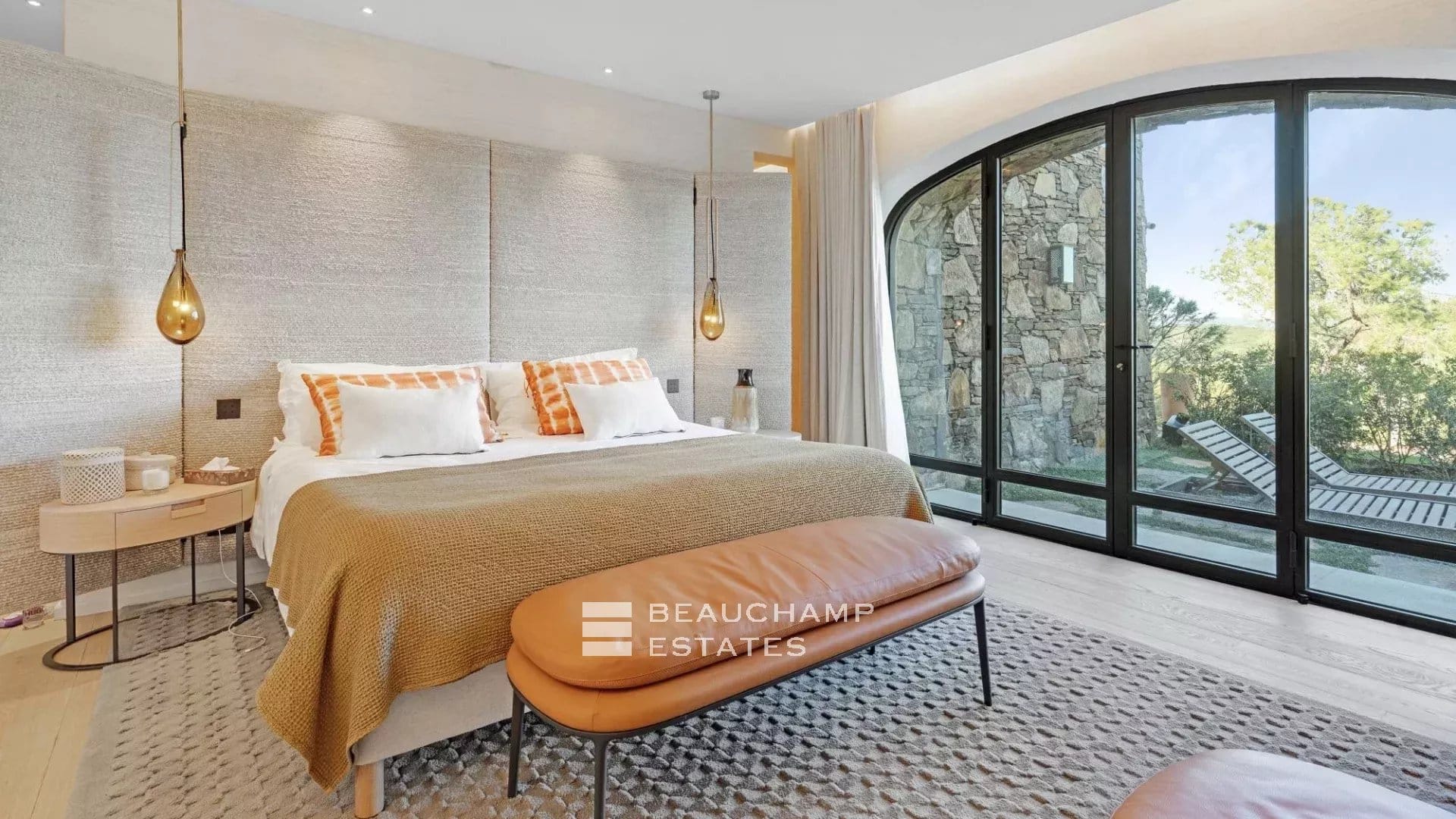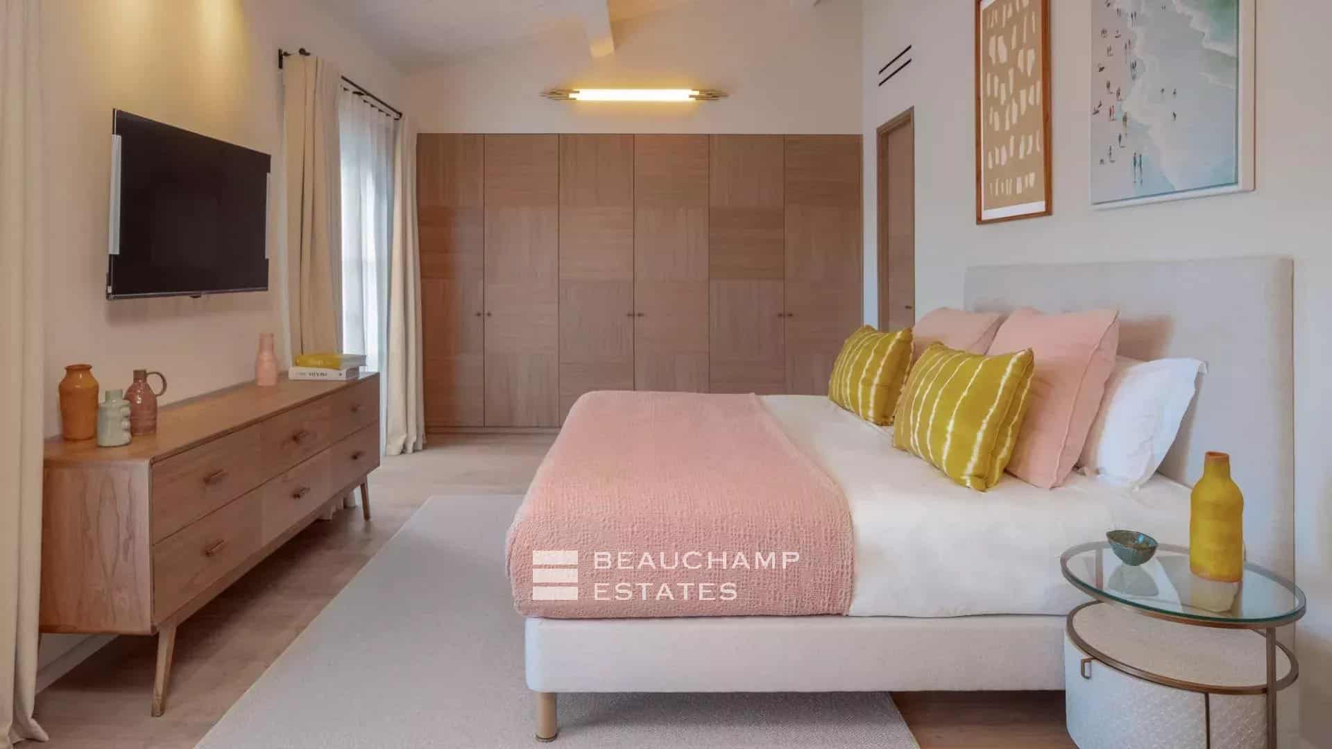 All bedrooms feature natural finishes, soft tones, wool and leather accents, curated artwork and Smart TVs, creating serene and luxurious private spaces.
