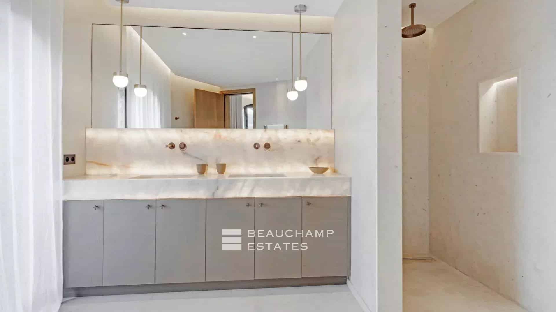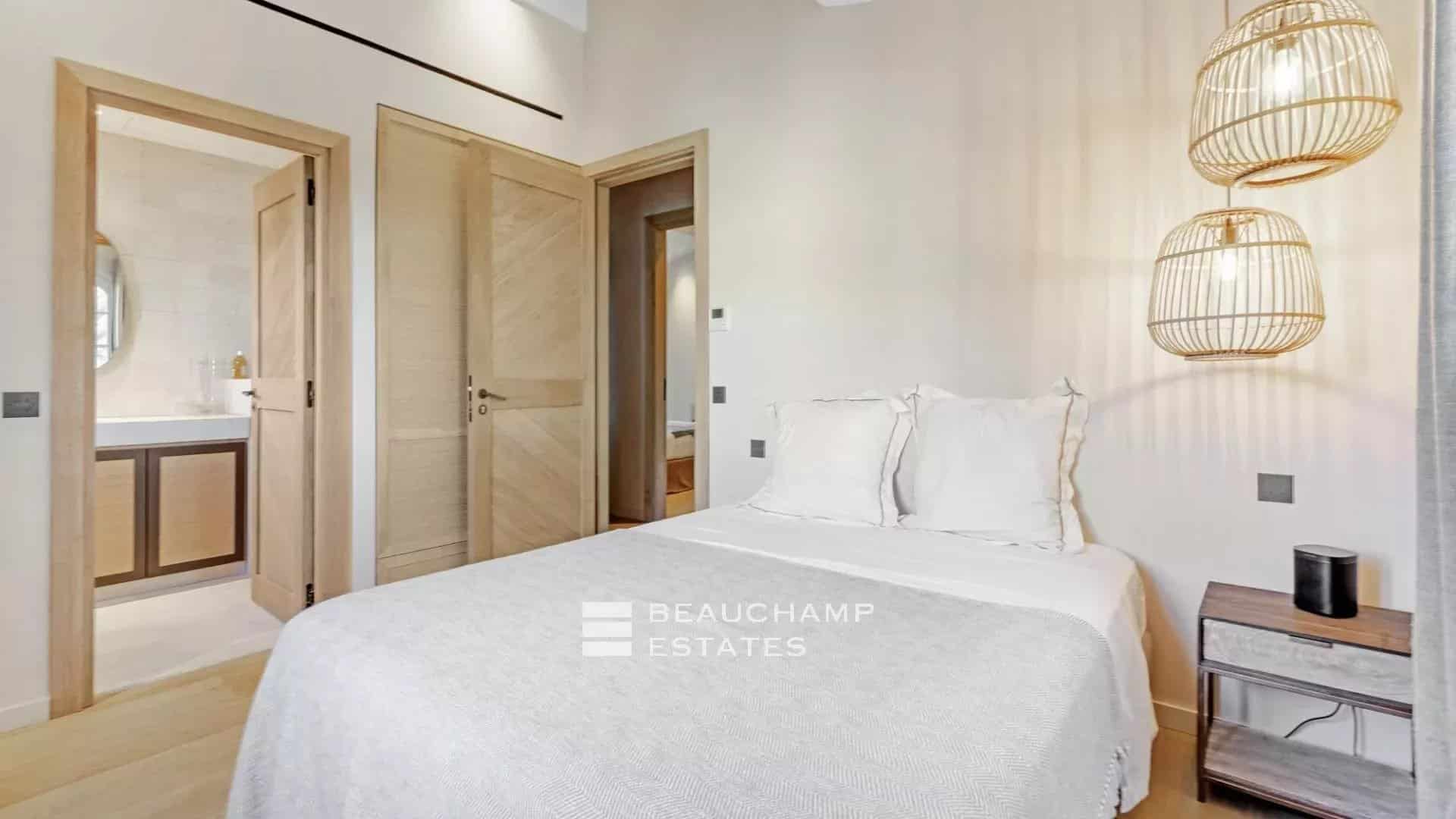 Master suite on the ground floor with en-suite bathroom, dressing room and private terrace.