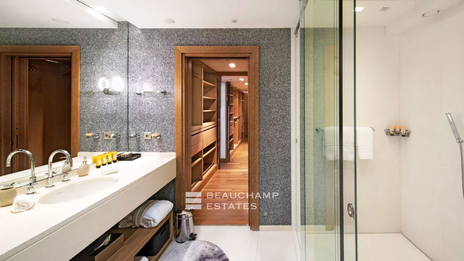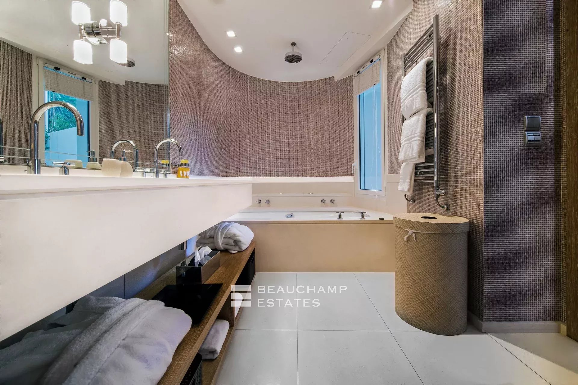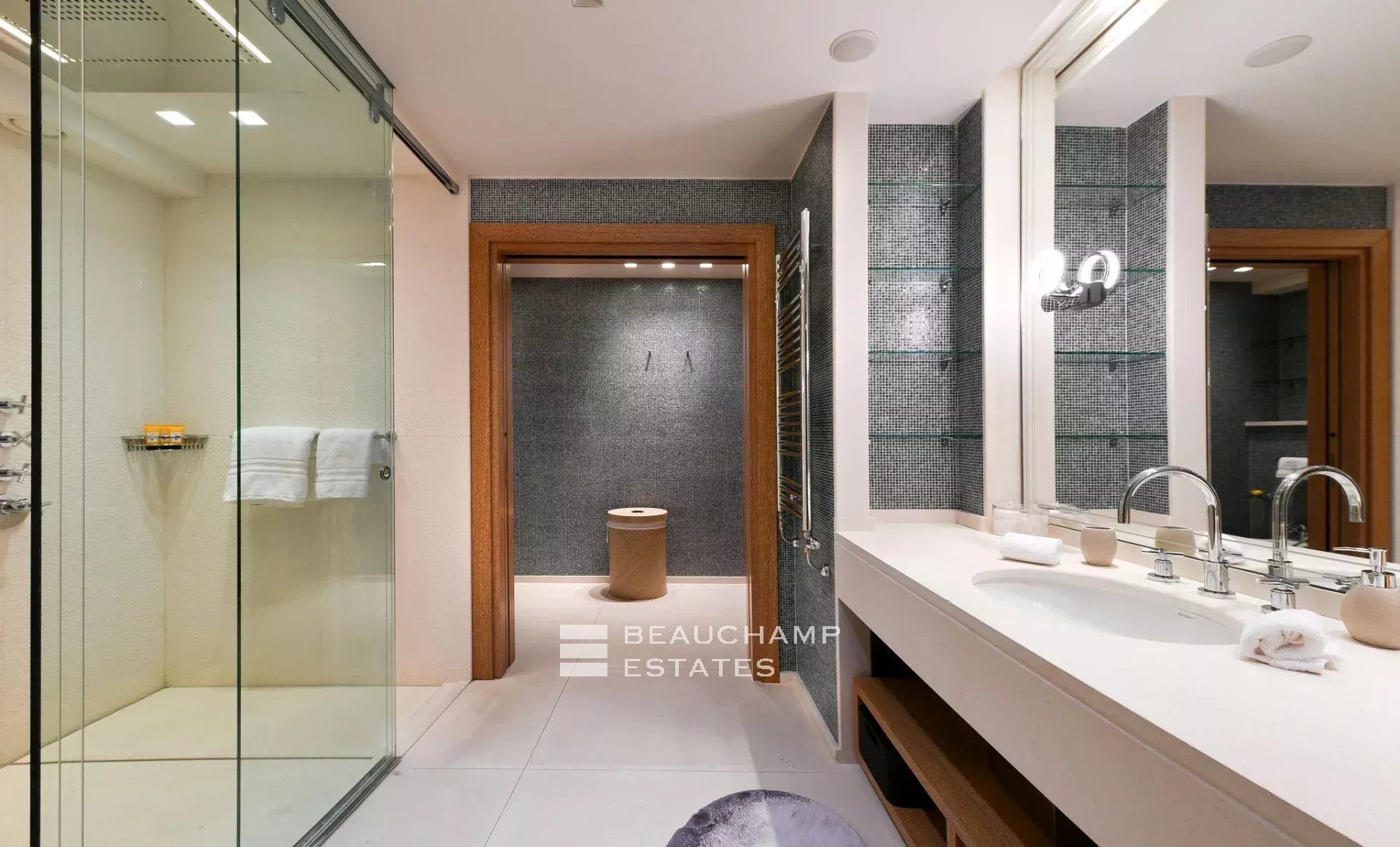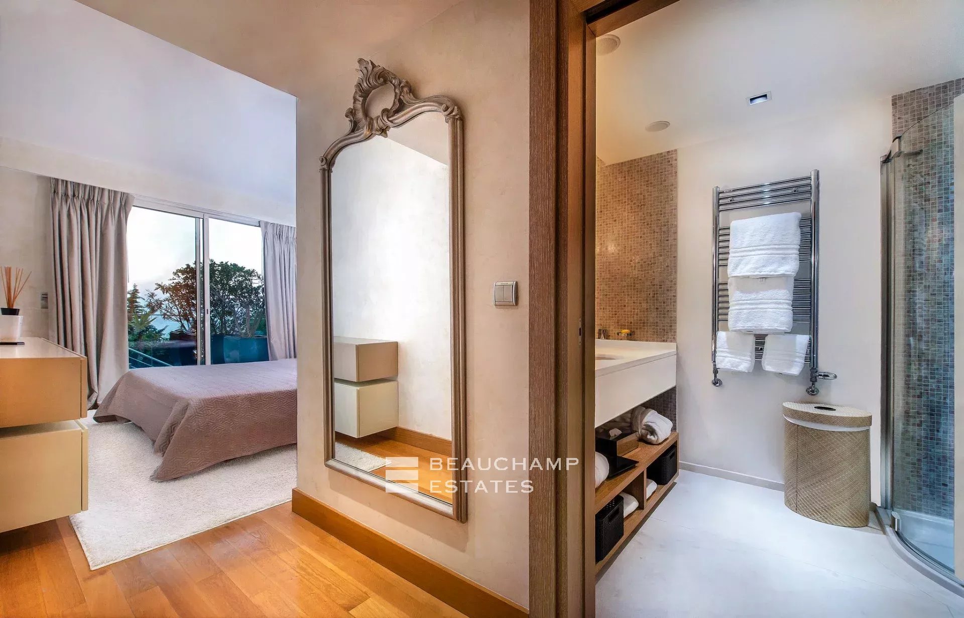 • Master bedroom with a dressing room, two bathrooms, and a terrace with panoramic sea views.