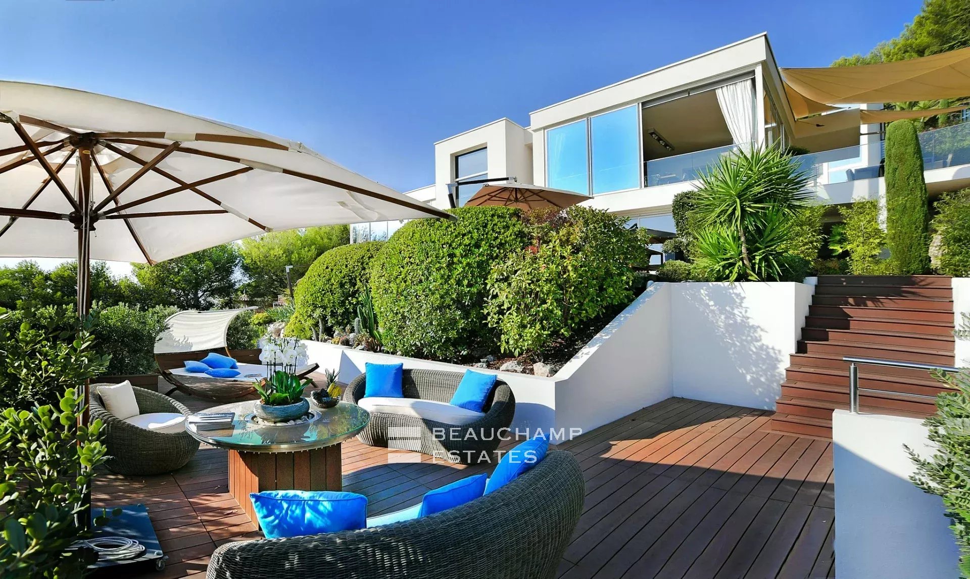 • 5 other individually designed bedrooms/bathrooms, each with a sunny terrace and sea views.