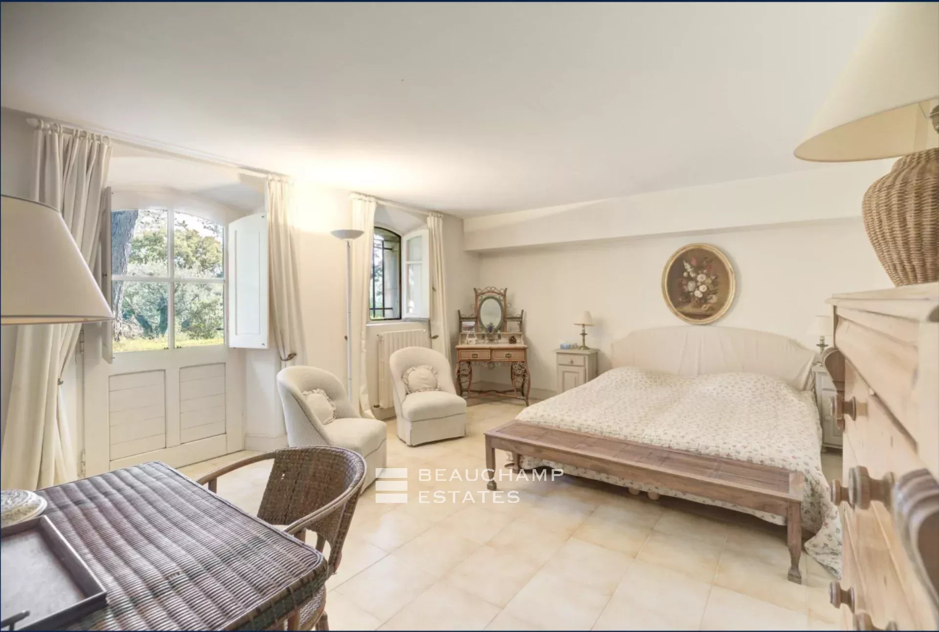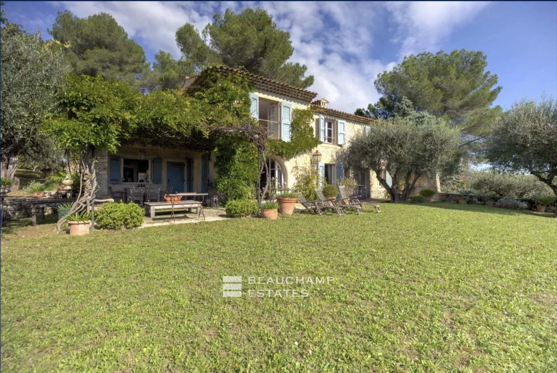 Discover this stunning bastide nestled in the heart of the Mougins countryside, offering an unparalleled living experience. Set on a flat 1-hectare plot, this property captivates with its authenticity and tranquility. Surrounded by lush Mediterranean vegetation and numerous century-old olive trees, it embodies the timeless elegance of Provençal bastides.