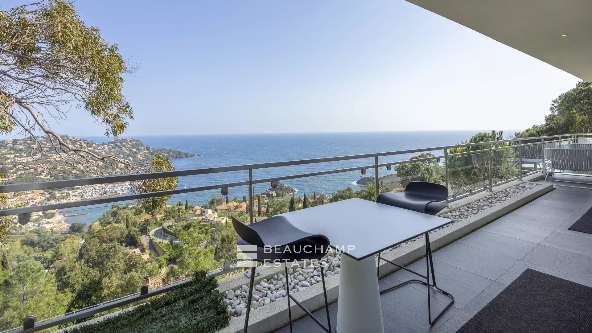 Just minutes from the Mediterranean Sea and the center of Théoule-sur-Mer, this stunning contemporary villa enjoys a privileged location with exceptional sea views in the Trayas area.