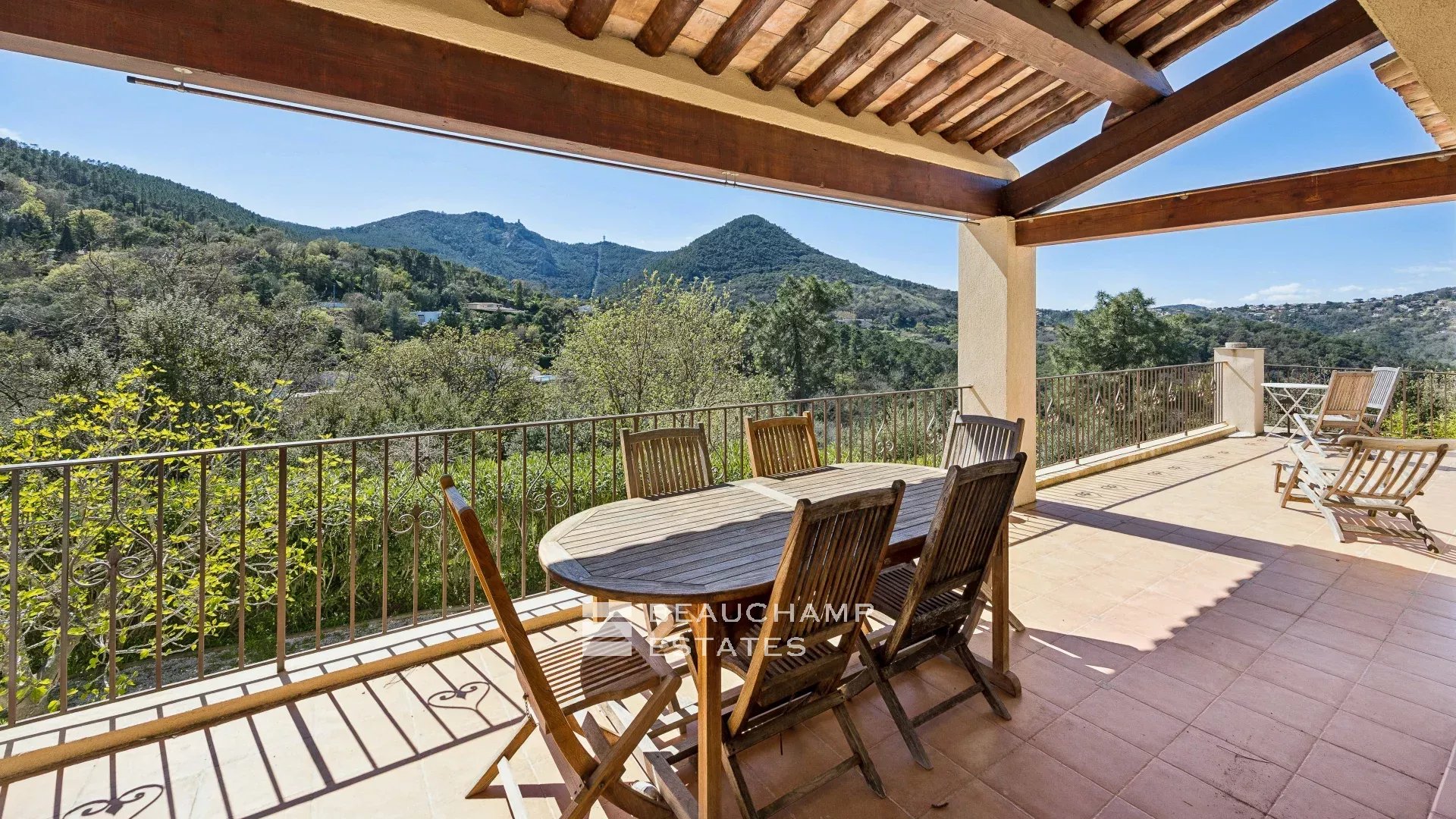 Nestled in the heart of a protected natural park, this magnificent south-facing home sits on an expansive 9,490 m² plot and enjoys breathtaking views of the Esterel hills. Spread over three levels, it combines charm, comfort, and endless layout possibilities.