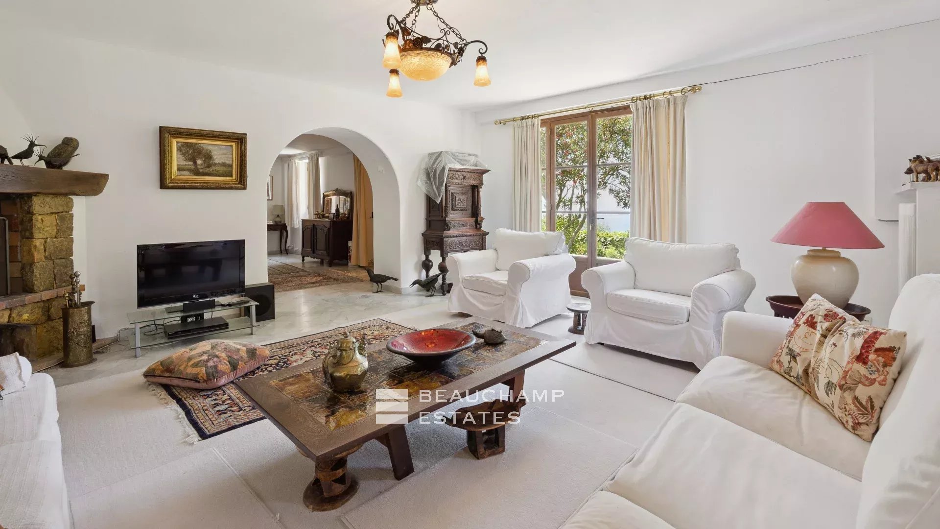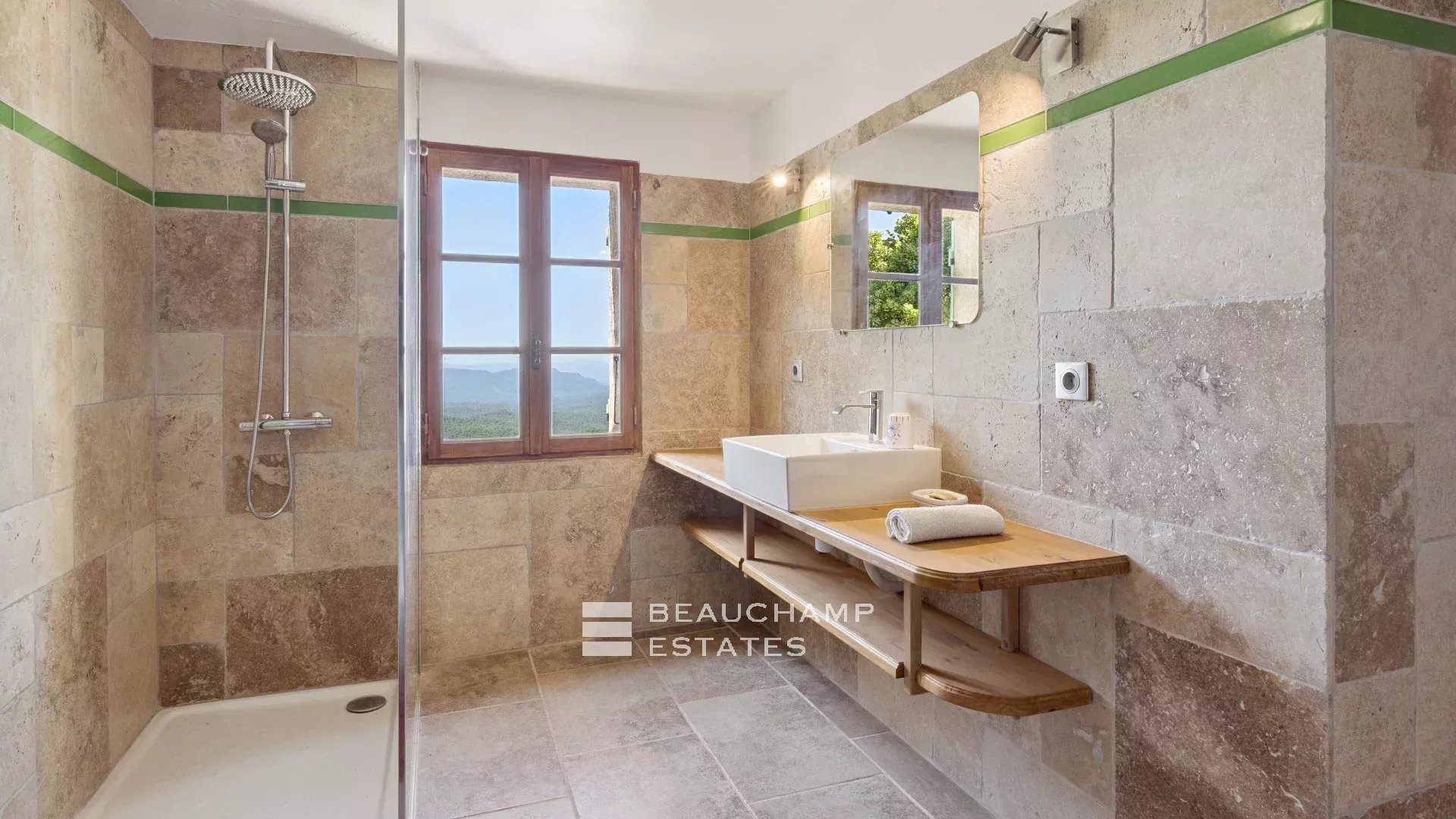 • a stone guest house renovated in a chic Provençal style, featuring a living room, open kitchen, four bedrooms and two shower rooms.
