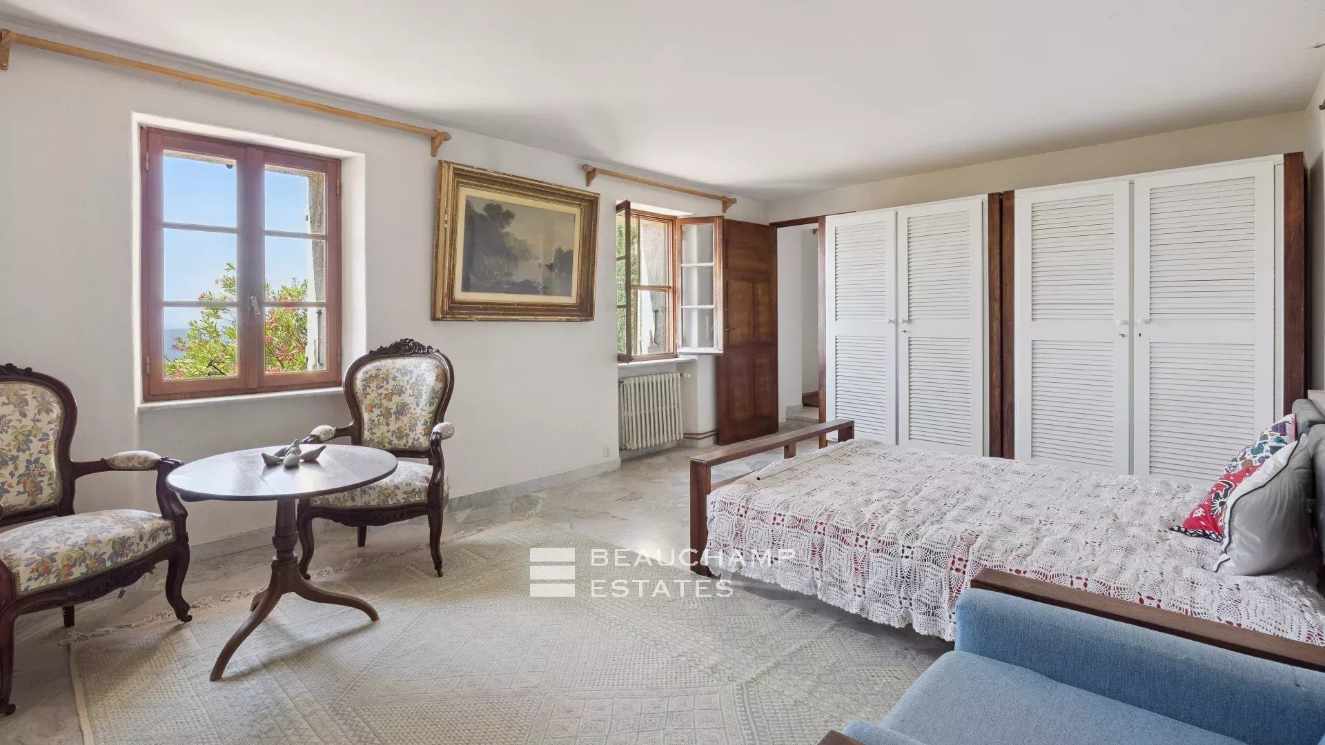The main house, approximately 290 sqm, includes generous spaces ready to be redesigned, with a kitchen, double living room, five bedrooms and three bathrooms. Two additional dwellings complete this exceptional setting: