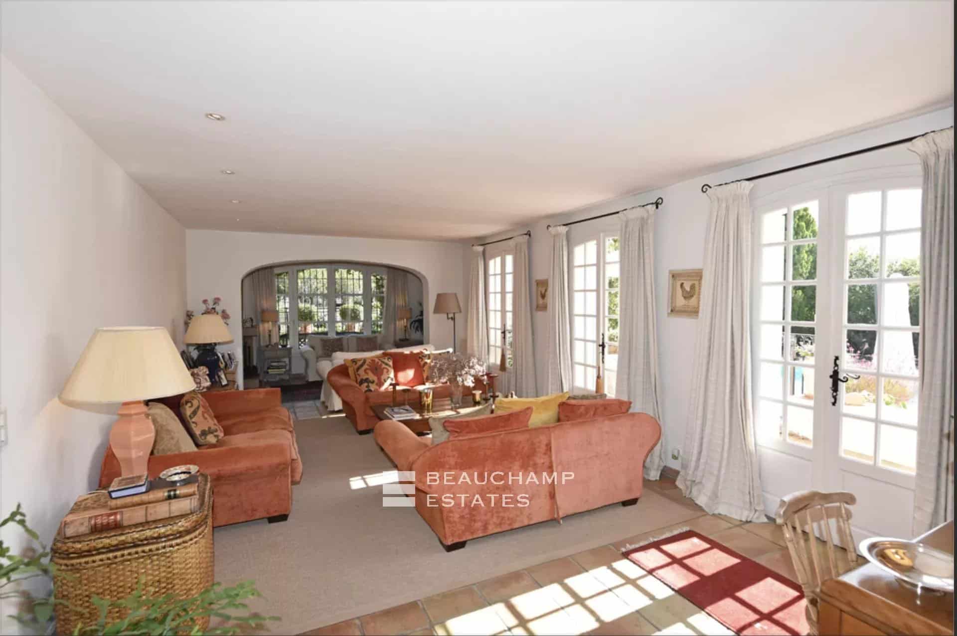 (including the guest cottage) of elegant interiors. The villa faces due South with terraces on the