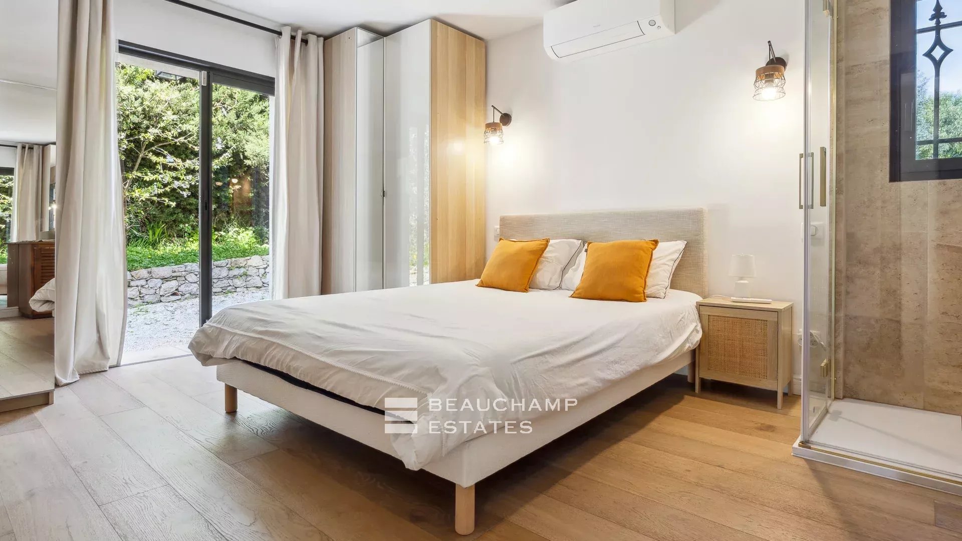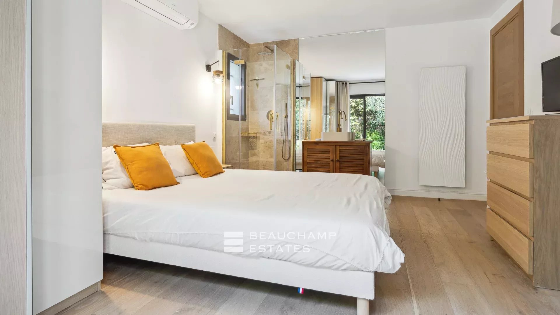 - Master bedroom, access to private terrace, en suite with bathroom and shower