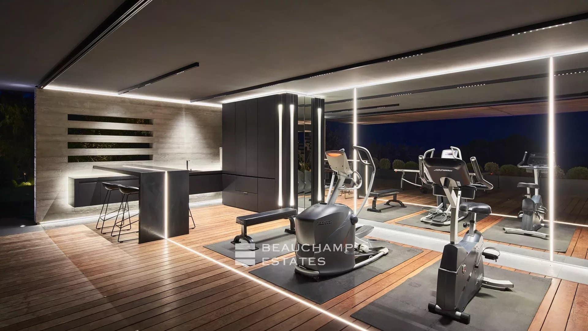 • Gym (bike, elliptical, bench, dumbbells, gymnastic mat)