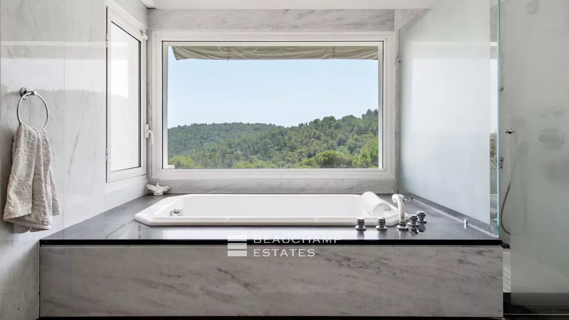 In a secure domain just minutes from the Village of Valbonne, this 500 sqm villa set on 3,600 sqm of land offers absolute peace and an unobstructed view of the surrounding hills. A 55 sqm independent guest house completes the property.
