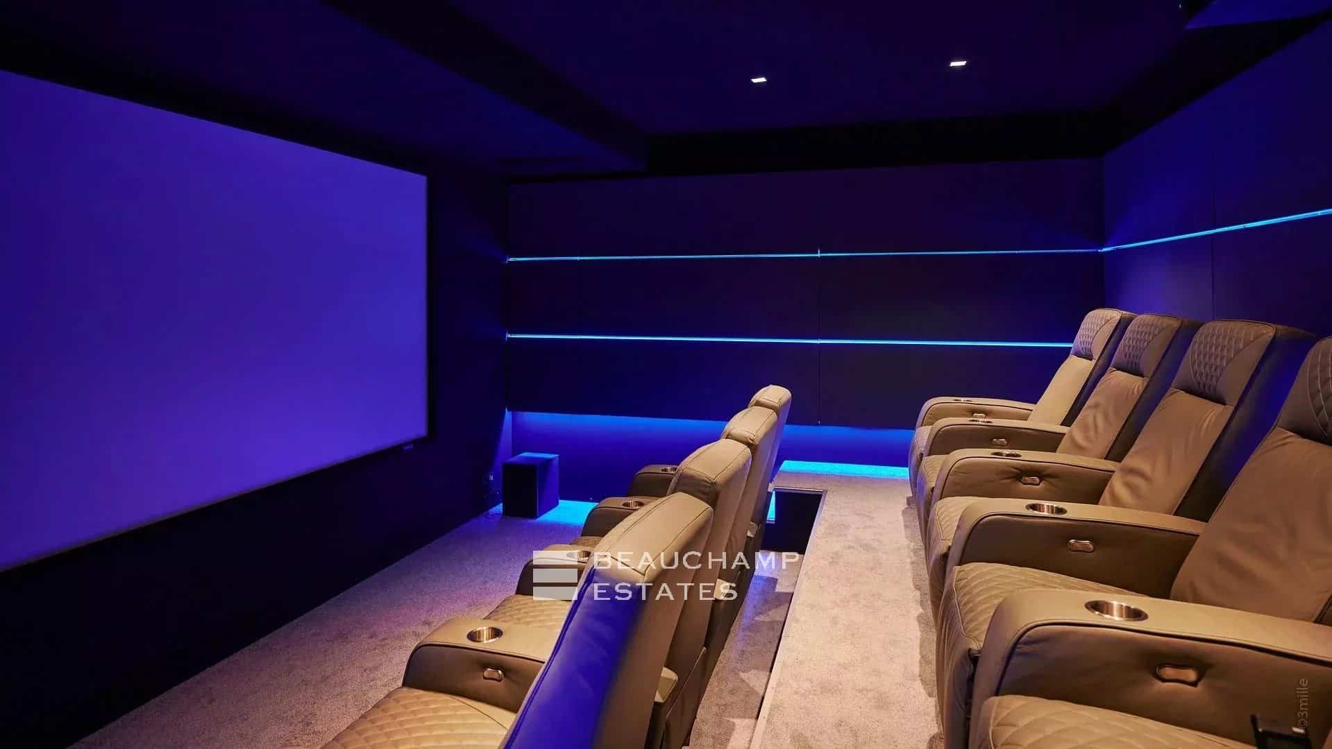 Designed to offer the utmost comfort, the villa also boasts a high-end, fully equipped cinema room, an indoor wellness area with jacuzzi, sauna, and steam room, as well as a gym.