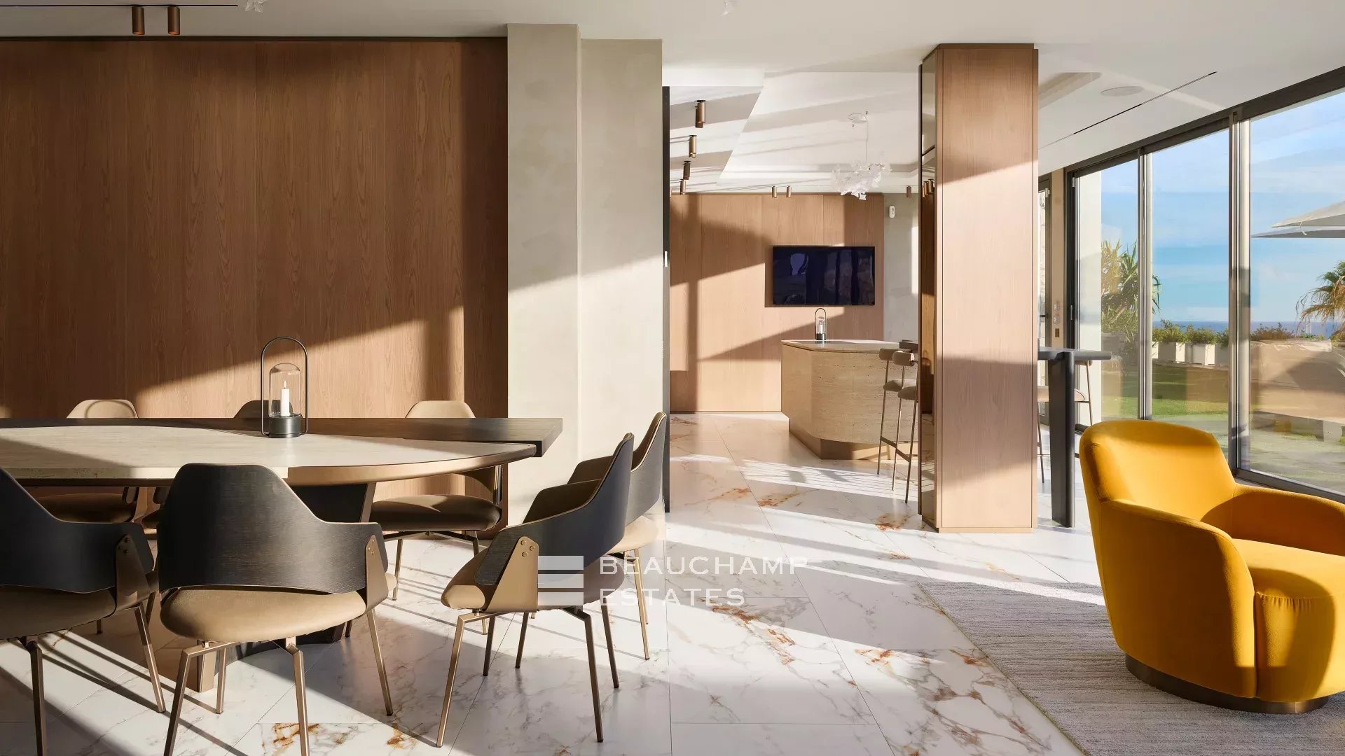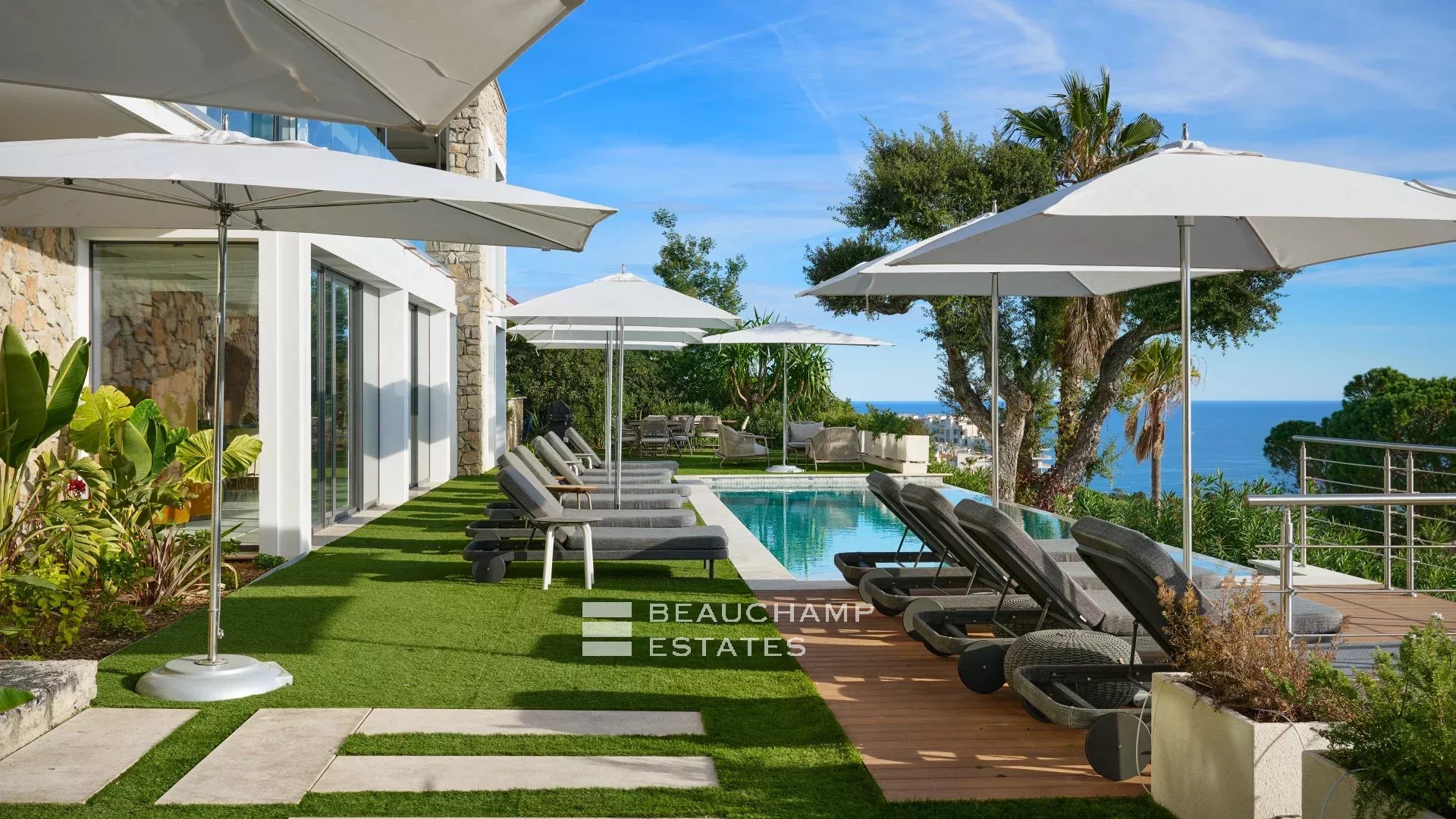 - Access to a magnificent terrace with a dining area, sunbathing, and a swimming pool