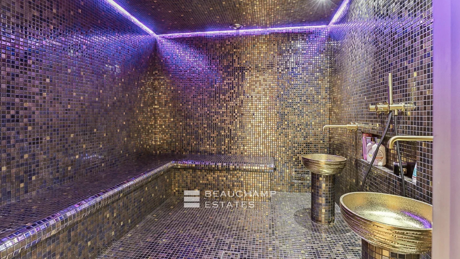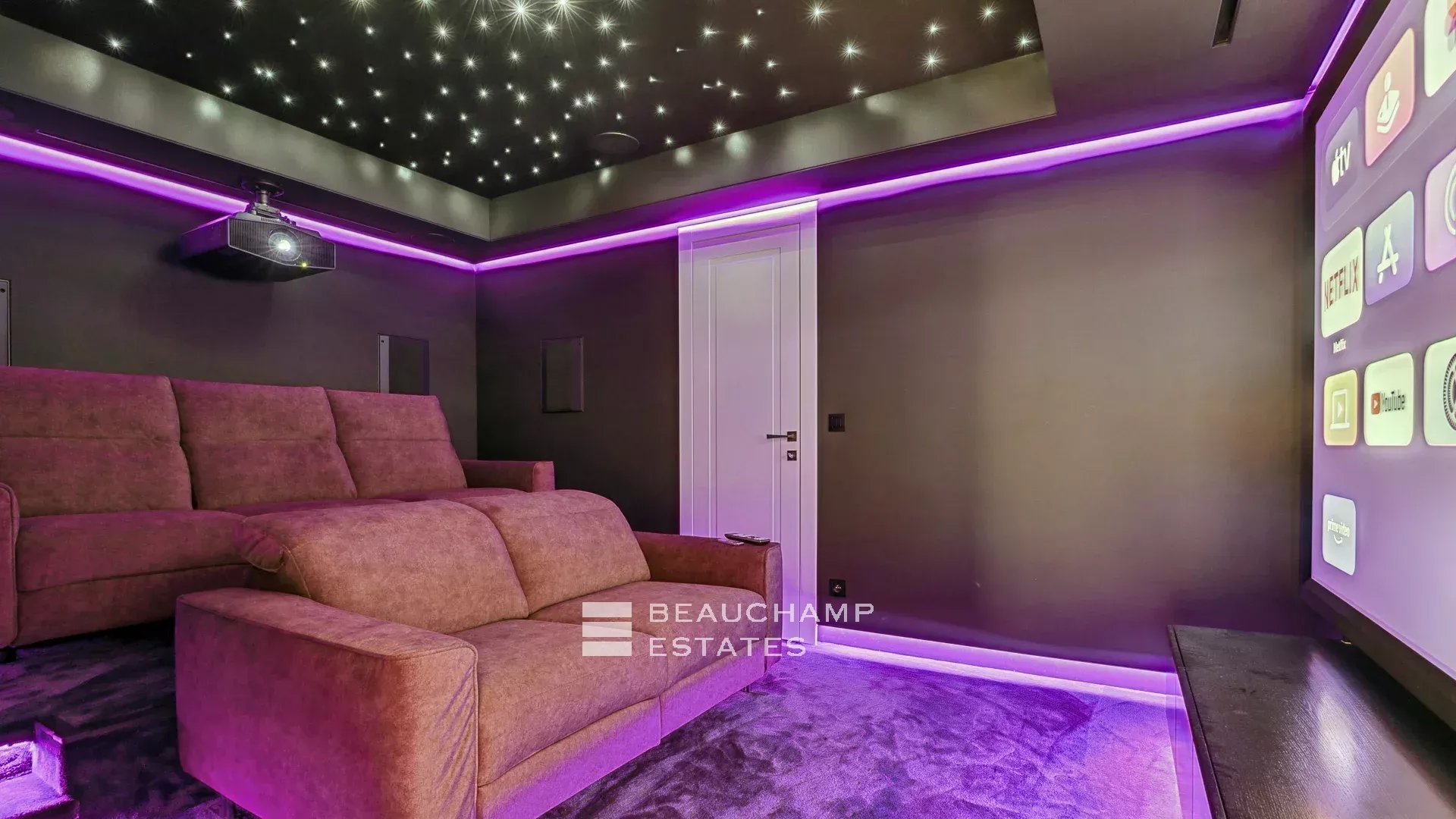For moments of relaxation and entertainment, the villa includes a private cinema room, a modern gym, and a hammam for absolute relaxation.