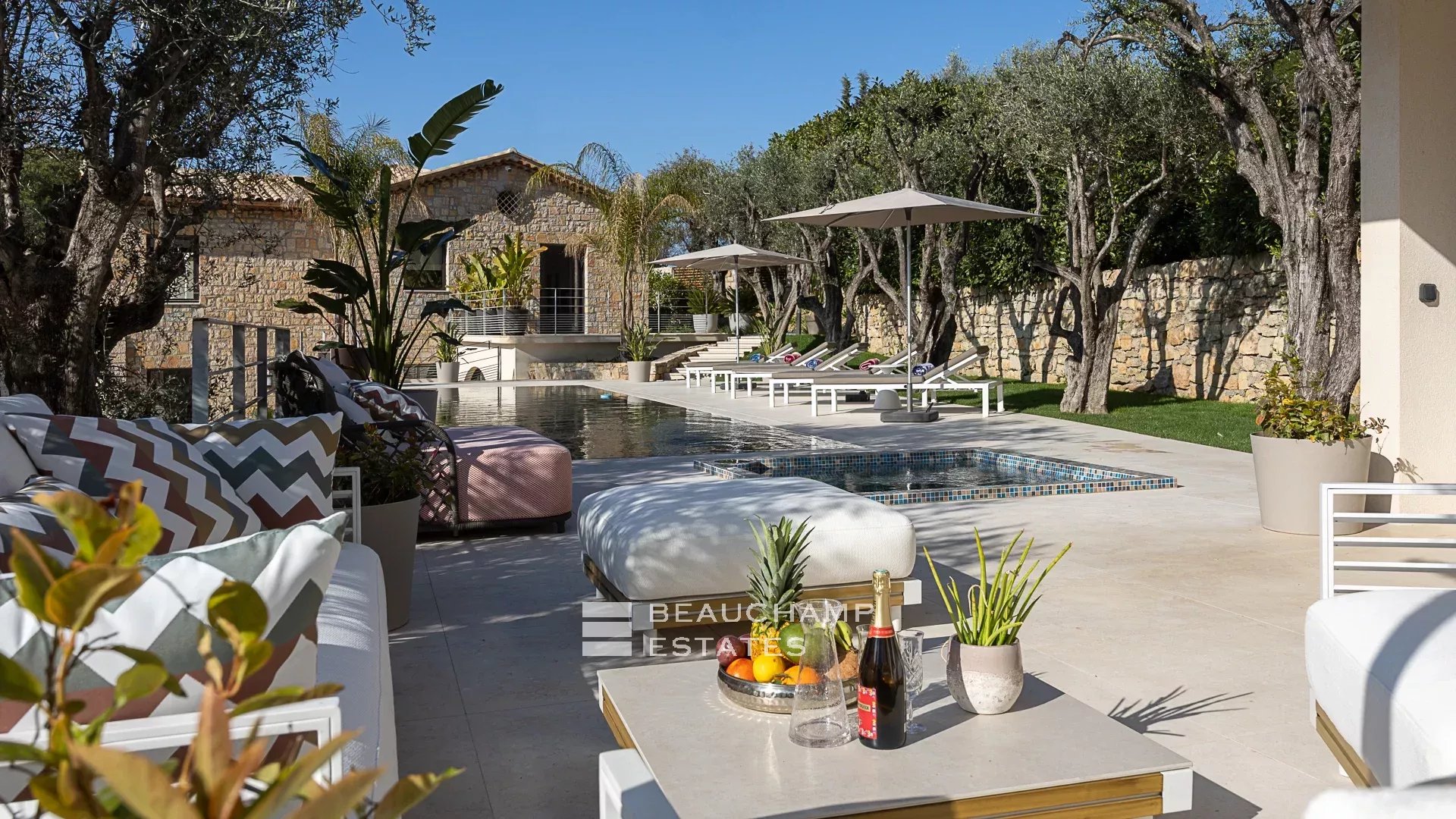 To perfect the space, a fully equipped summer kitchen, with a gas barbecue, allows for outdoor dining. A changing room and an outdoor shower are also provided for optimal comfort after swimming.