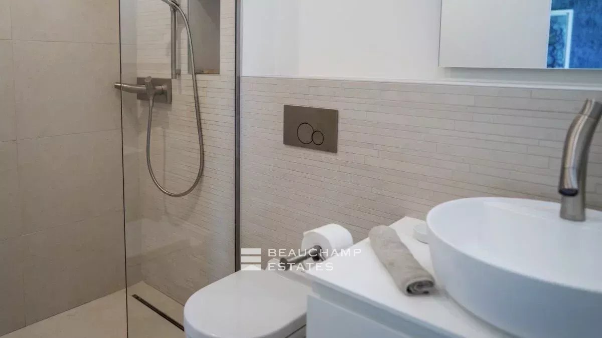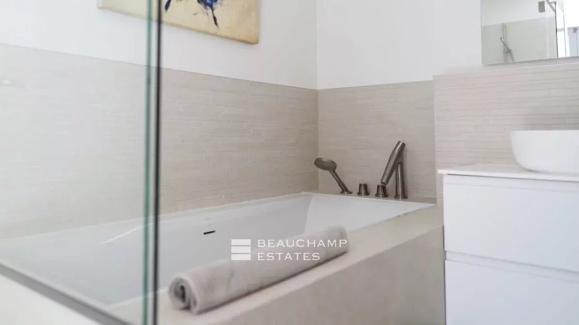 The property is located in a secure residence a few steps from Boulevard Patch and the Plage de Pampelonne in Ramatuelle.
