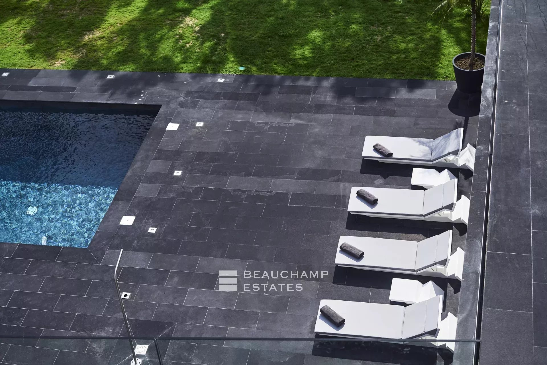 Reversible air conditioning throughout the house, outdoor lounges and sun loungers, heated swimming pool (12 m x 5.5 m) with outdoor shower. Outdoor parking for 3 vehicles, 2 additional covered parking places. 18 beds in total.