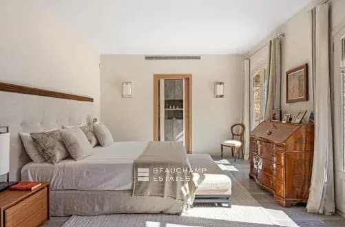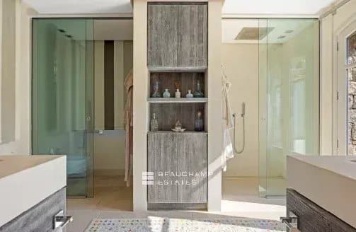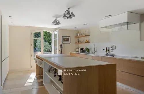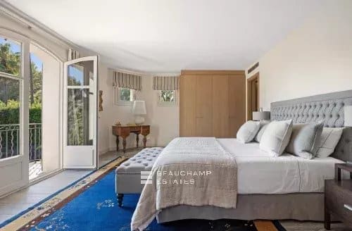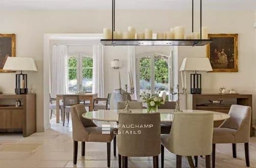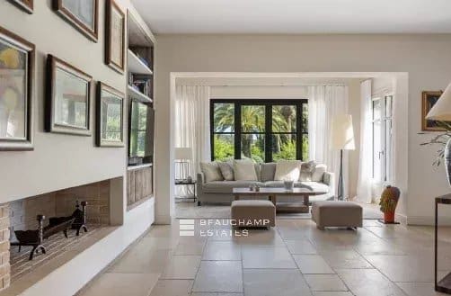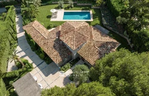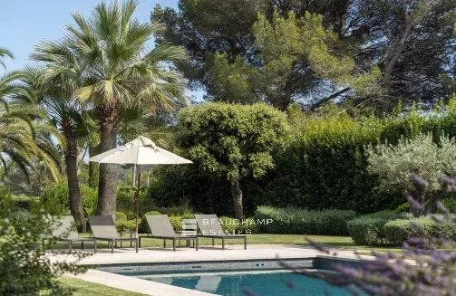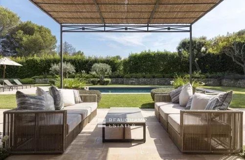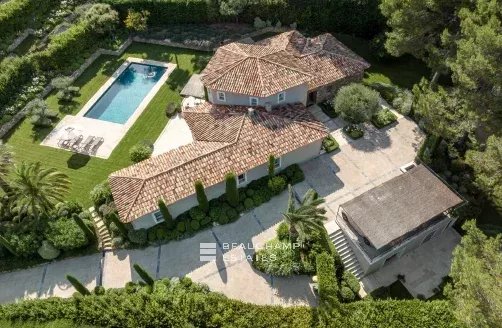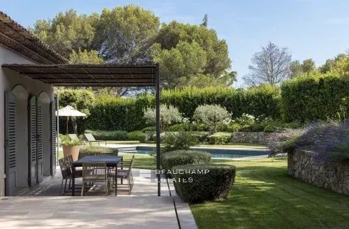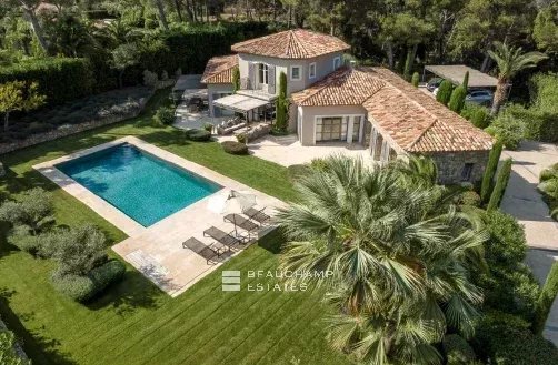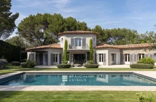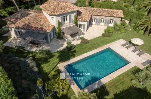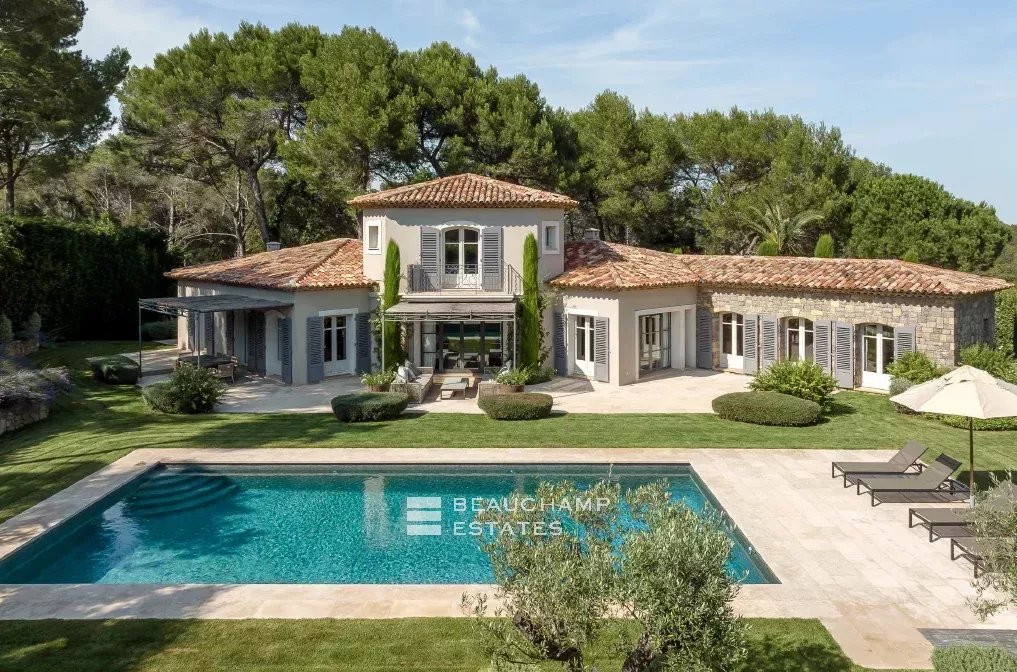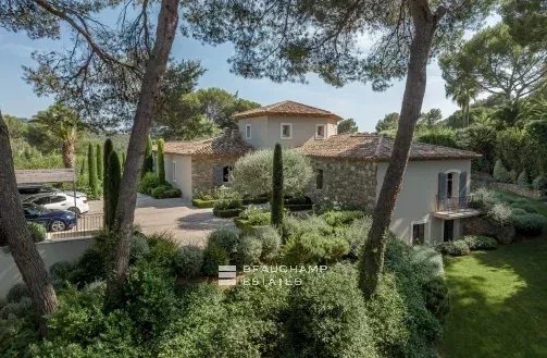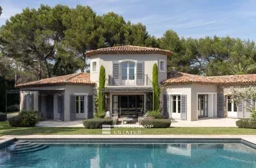 In the heart of a prestigious domain with 24/7 security and surrounded by a large forest park, this superb modern provencal style villa has been entirely renovated by a renowned architect, it seduces with its beautiful and discreet luxury features.