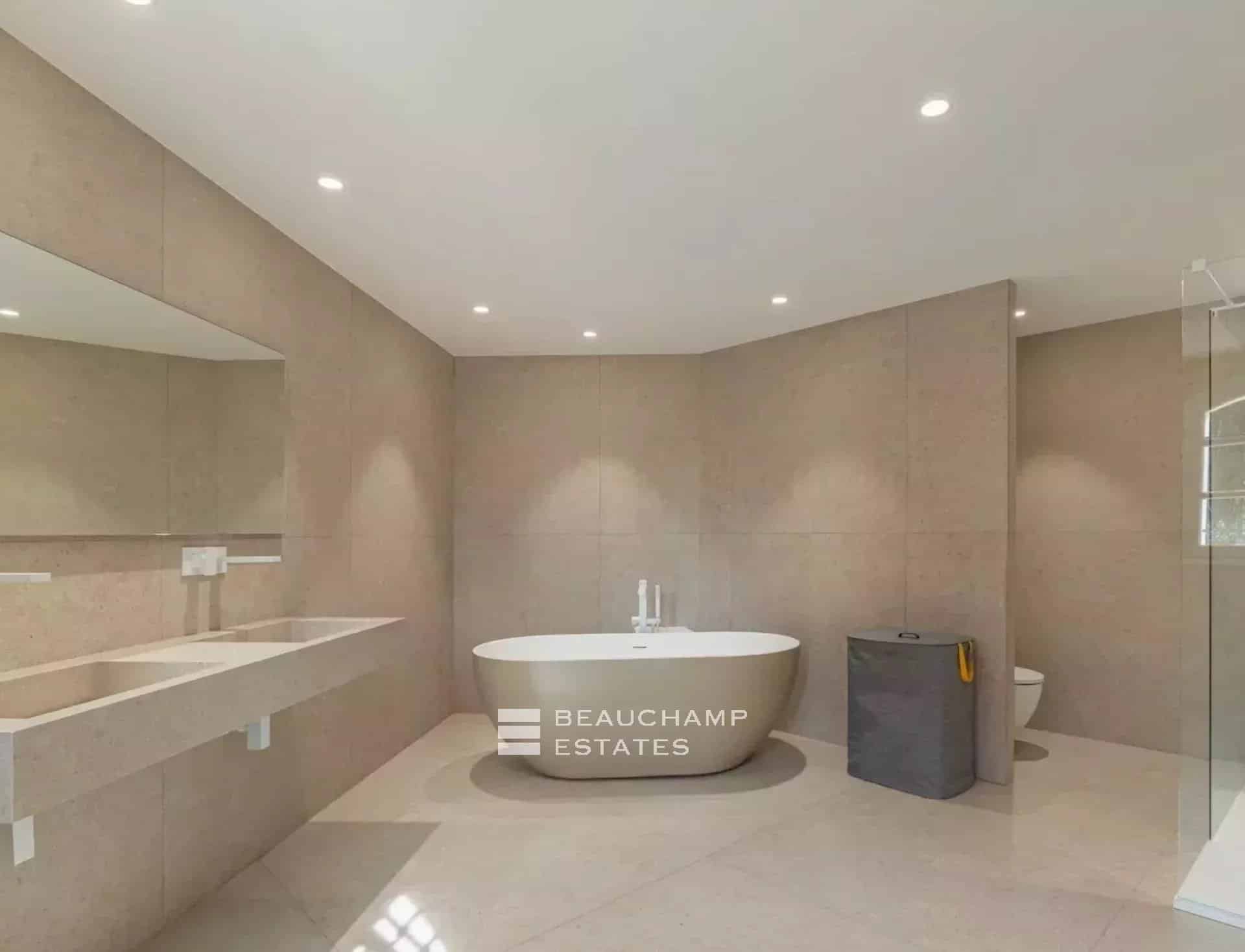 Set on beautifully landscaped grounds of approximately 2,700 sqm, the villa boasts refined outdoor spaces including a swimming pool and a pool house, creating the perfect setting for relaxation and entertaining in total tranquillity.