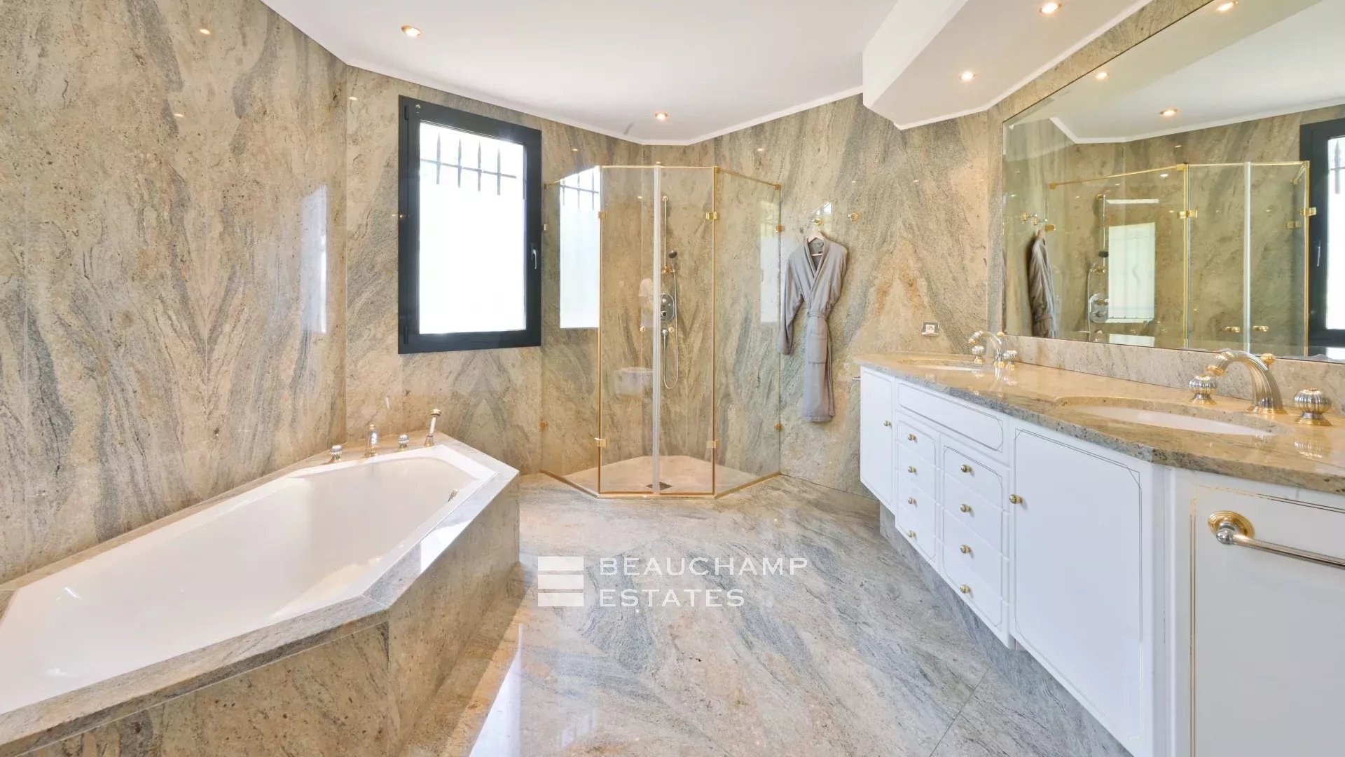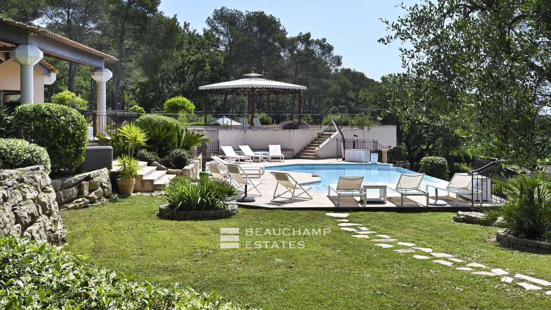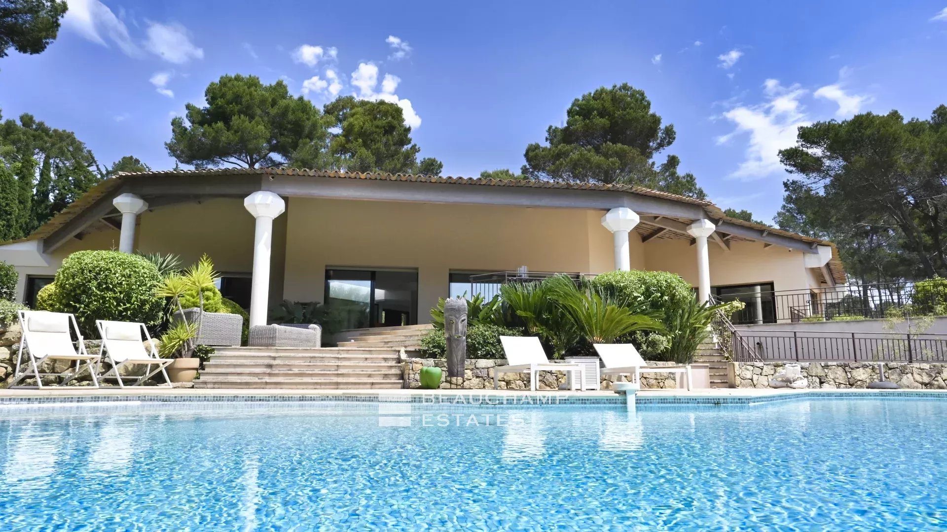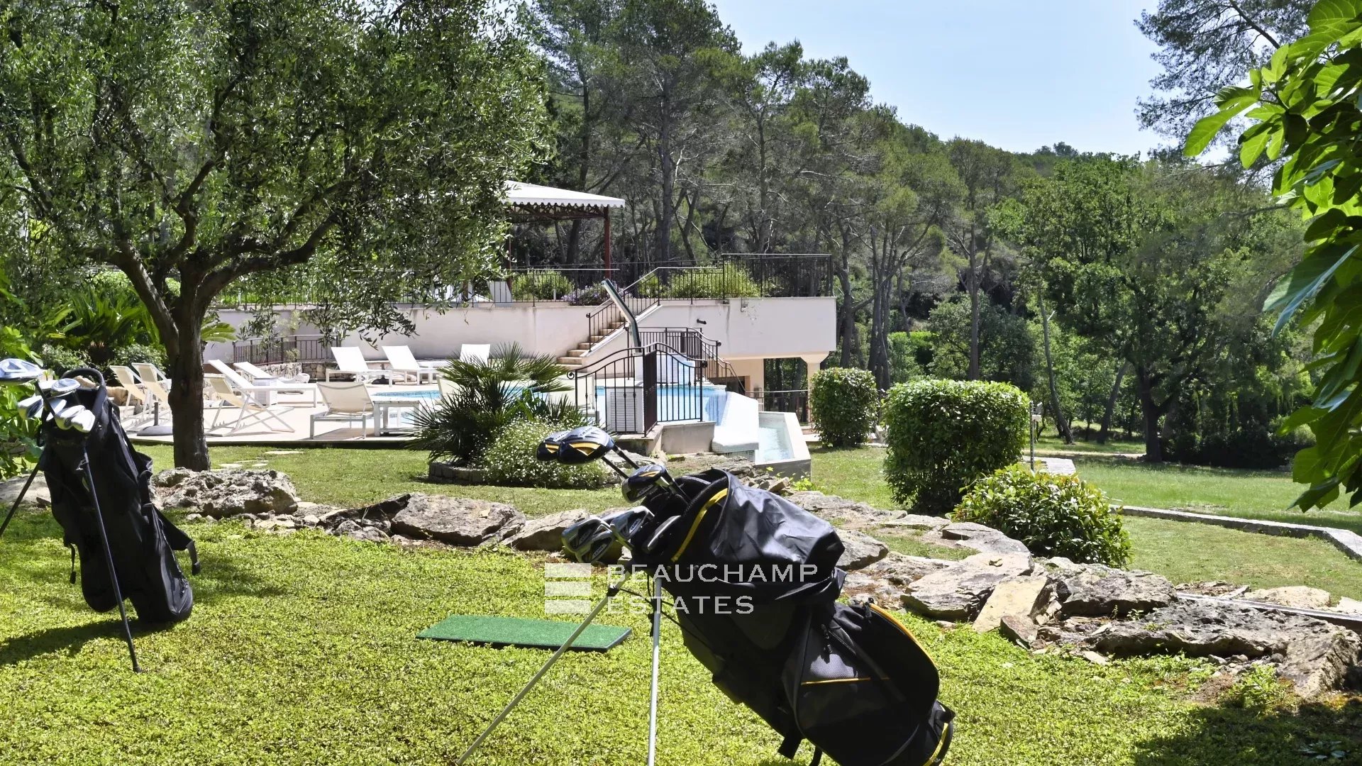 This remarkable villa on a prestigious Mougins domain offers generous living space and plenty of natural light.
