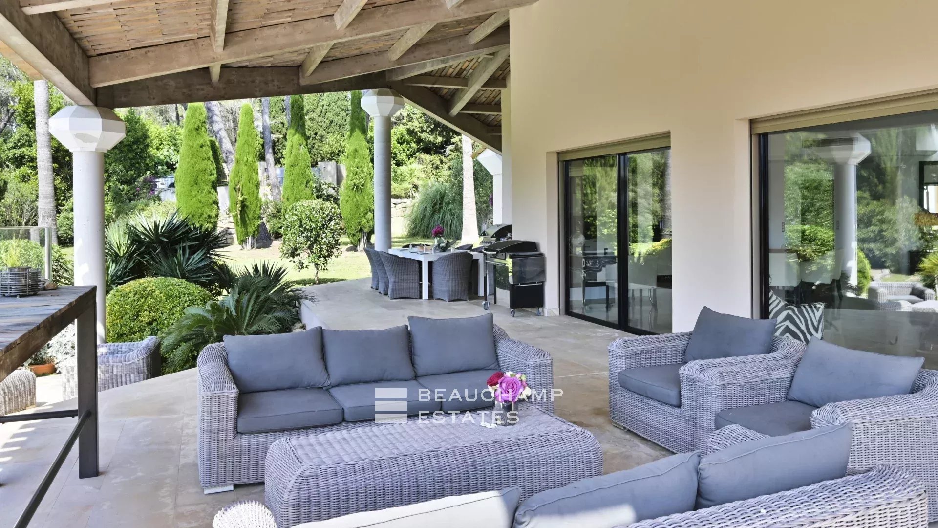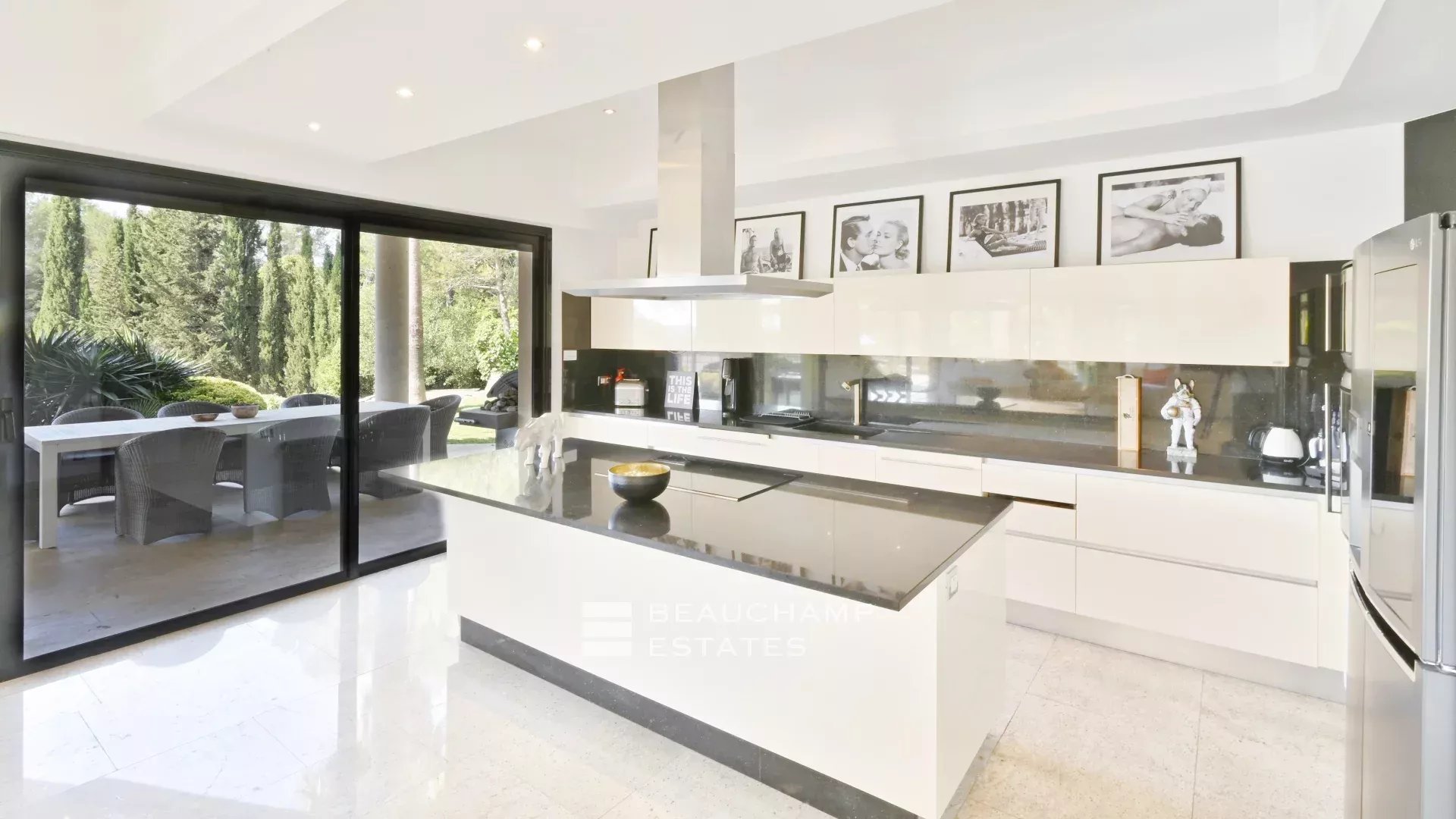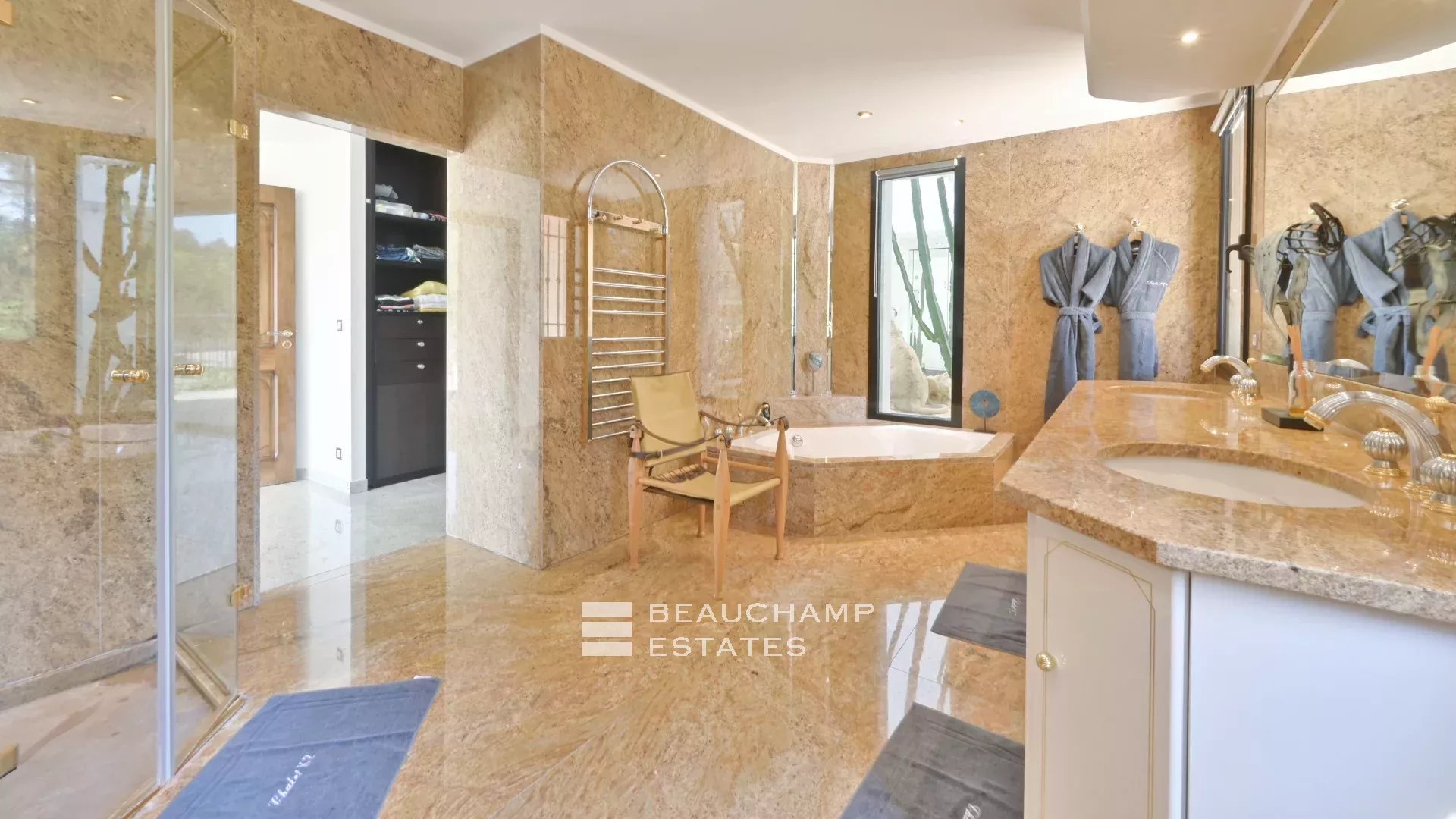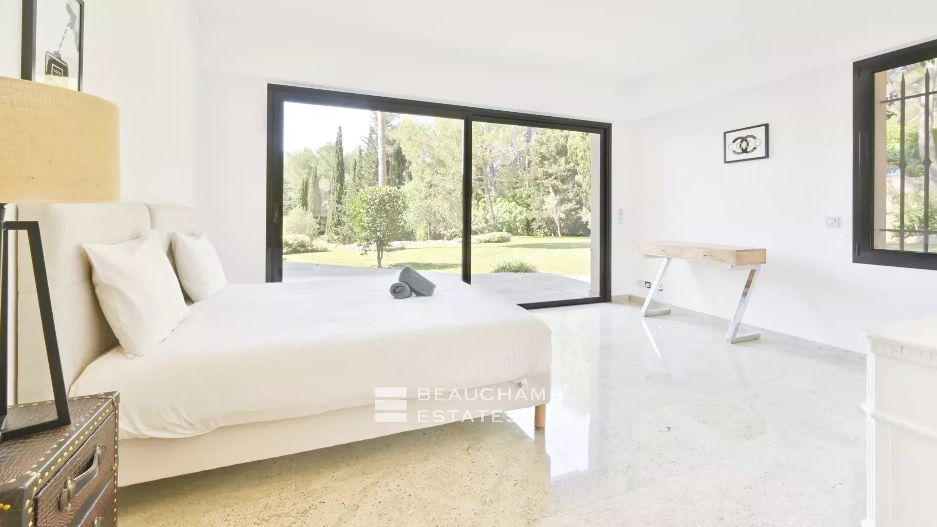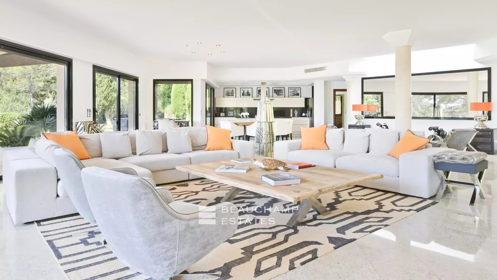 This remarkable villa on a prestigious Mougins domain offers generous living space and plenty of natural light.