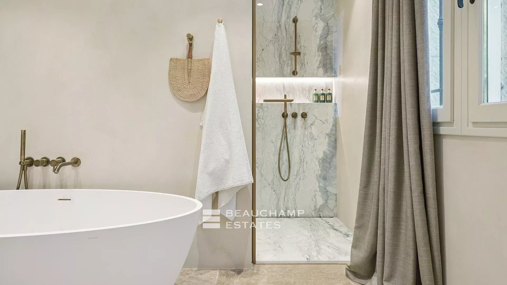 - a master bedroom with direct access to the terrace, with a bathroom including a bath and shower, and a dressing room.