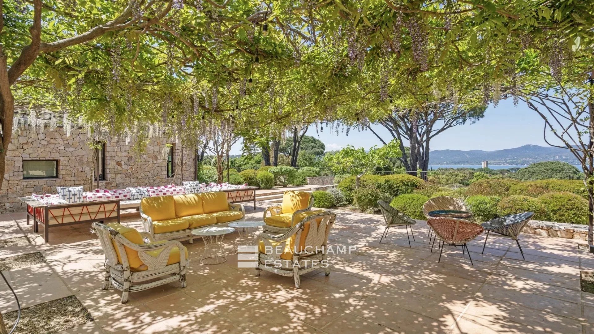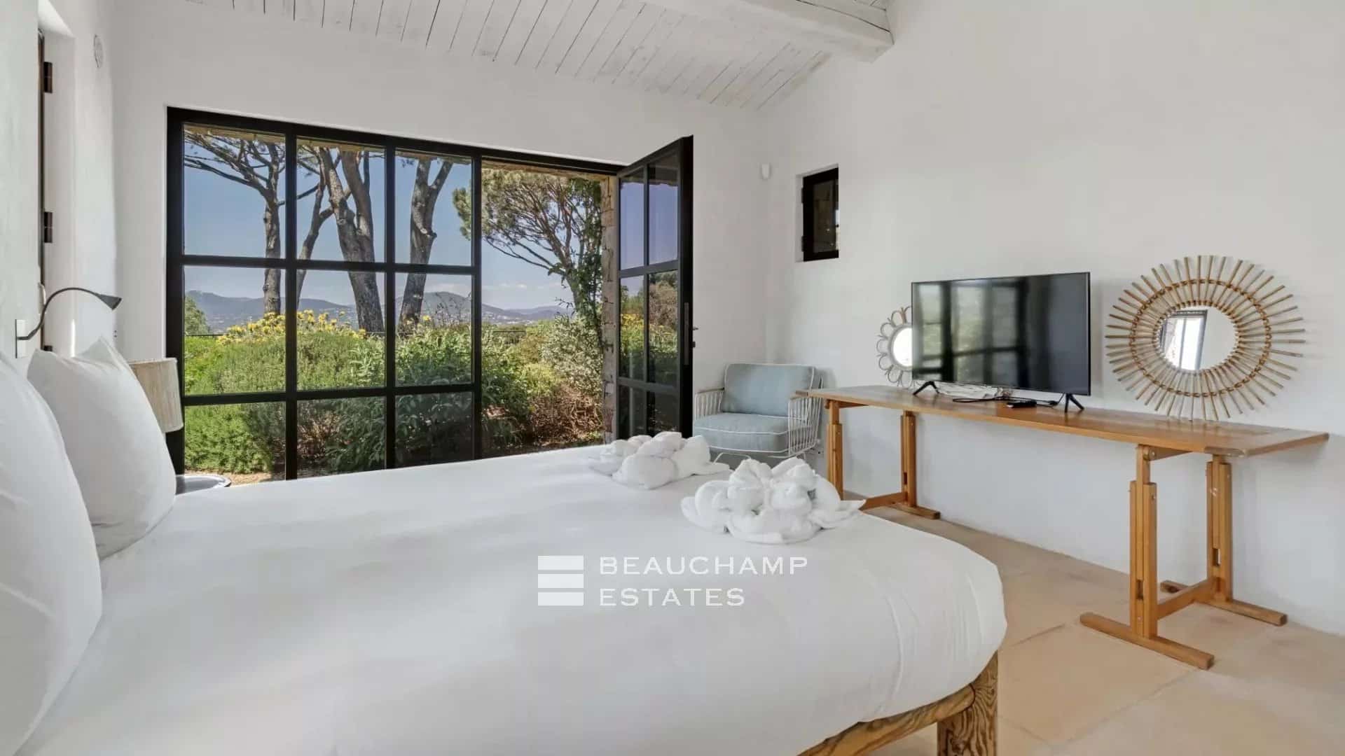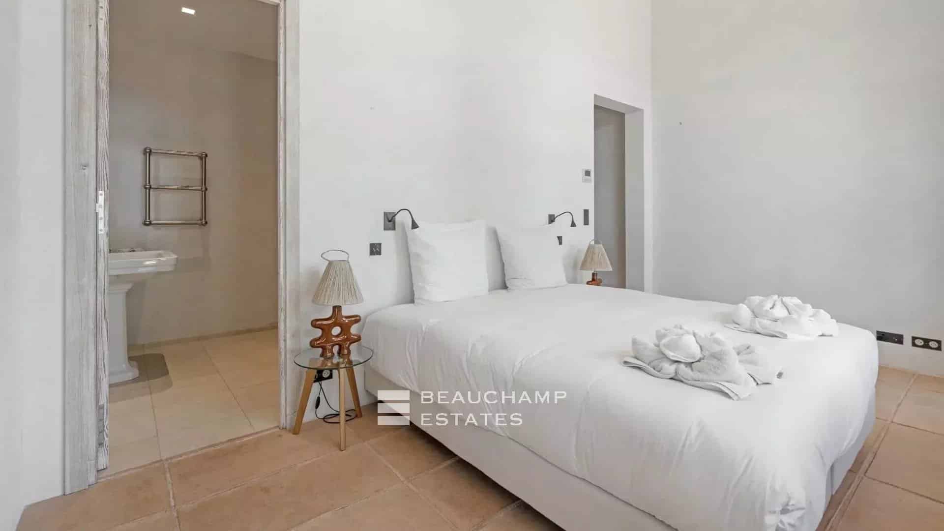 High-end Provençal villa of 700m2, located in a quiet environment 800 meters from the lively city center of Saint-Tropez and just 6 minutes from the beaches of Pampelonne. Breathtaking sea view from the property.