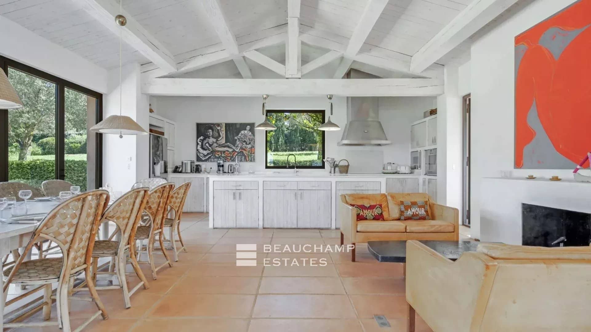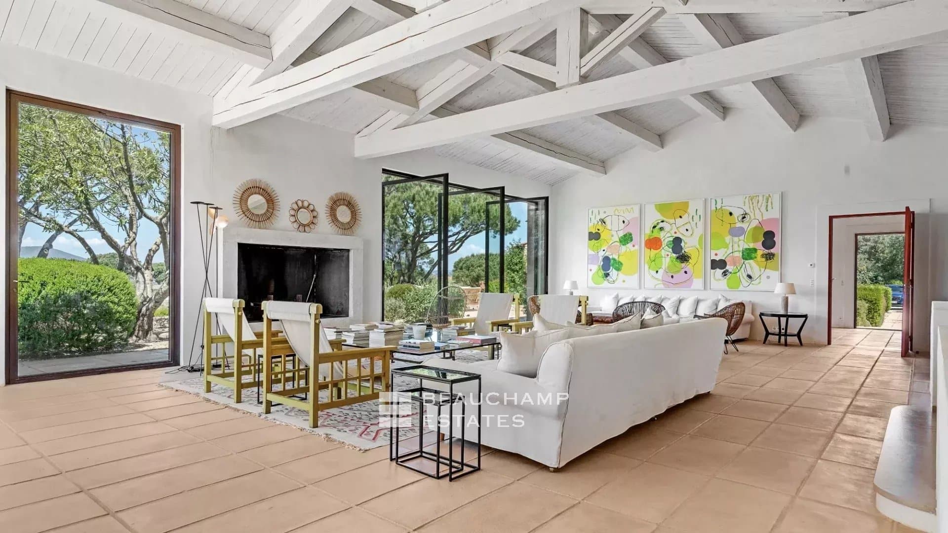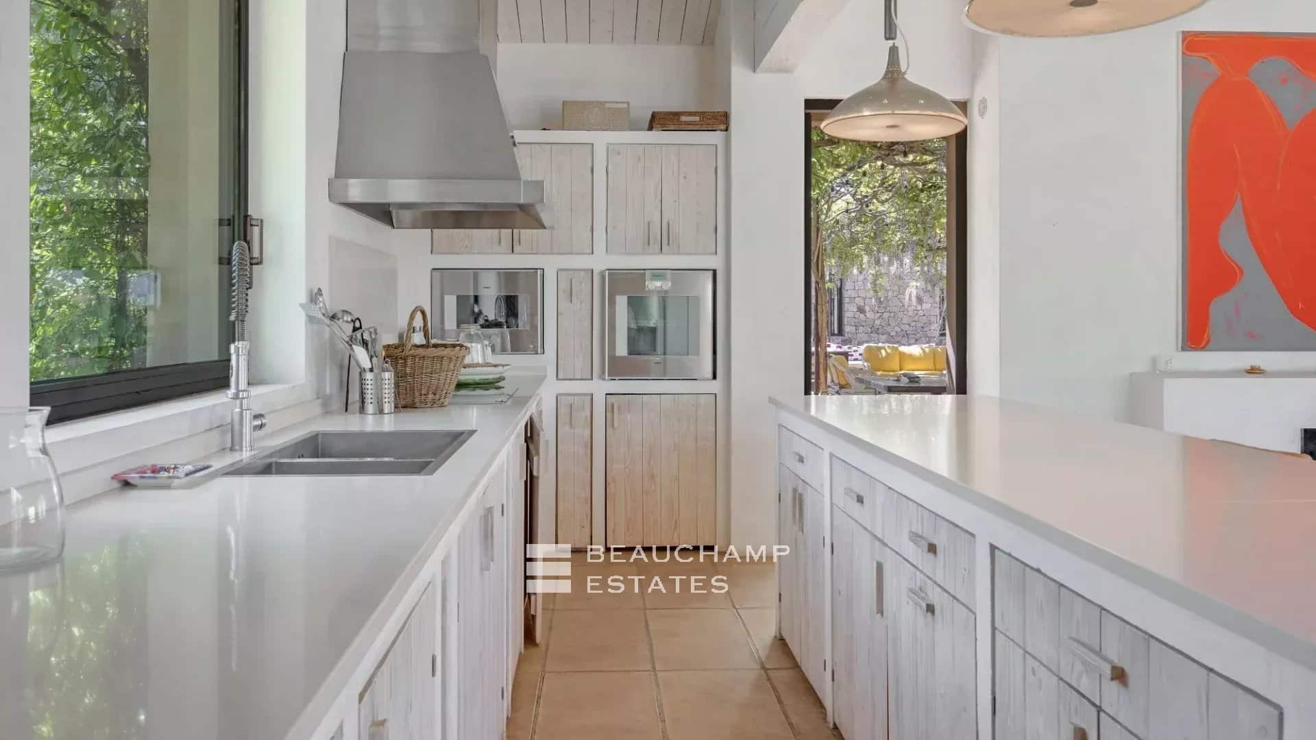 Large outdoor spaces with several lounges, BBQ, breathtaking sea view.