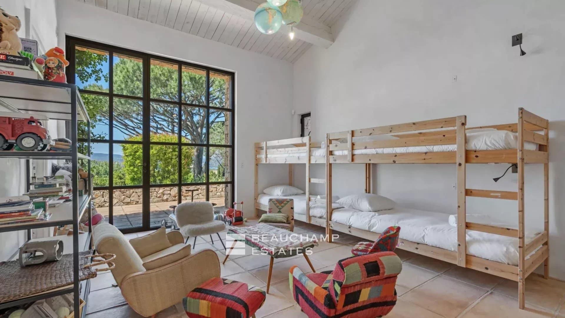 - Bedroom n°1: Dormitory for children (8 beds) with bathroom and private shower, WC, sea view and private terrace.