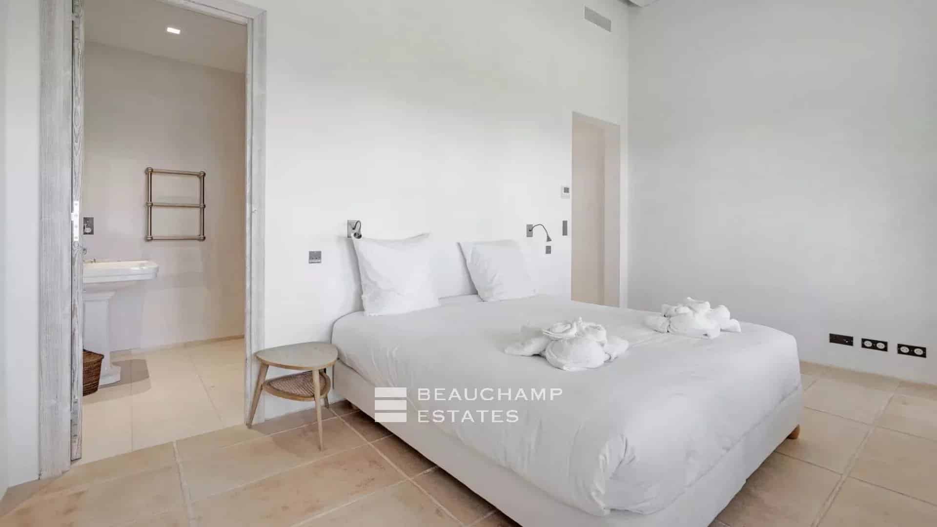 - Bedroom n°6: Double bed with TV, shower room and bath, WC, sea view, dressing room and private terrace.