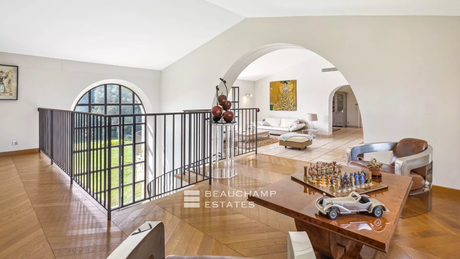The garden level hosts a master suite with dressing room and bathroom, as well as a second en-suite bedroom with open views. Three additional bedrooms, each with its own shower room, complete the night area.